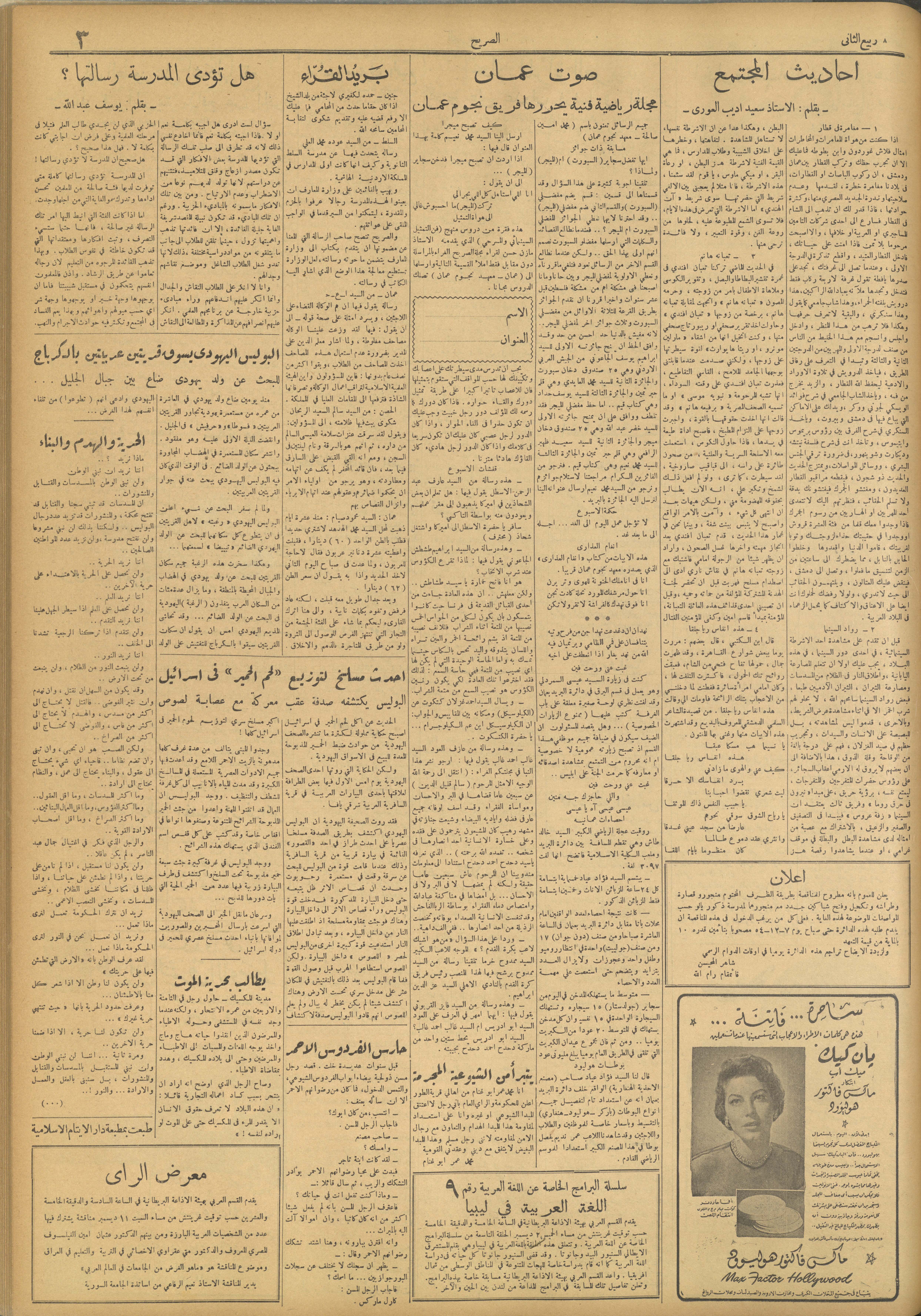 مجلة الصريح، العدد 255، 4 كانون الأول 1954