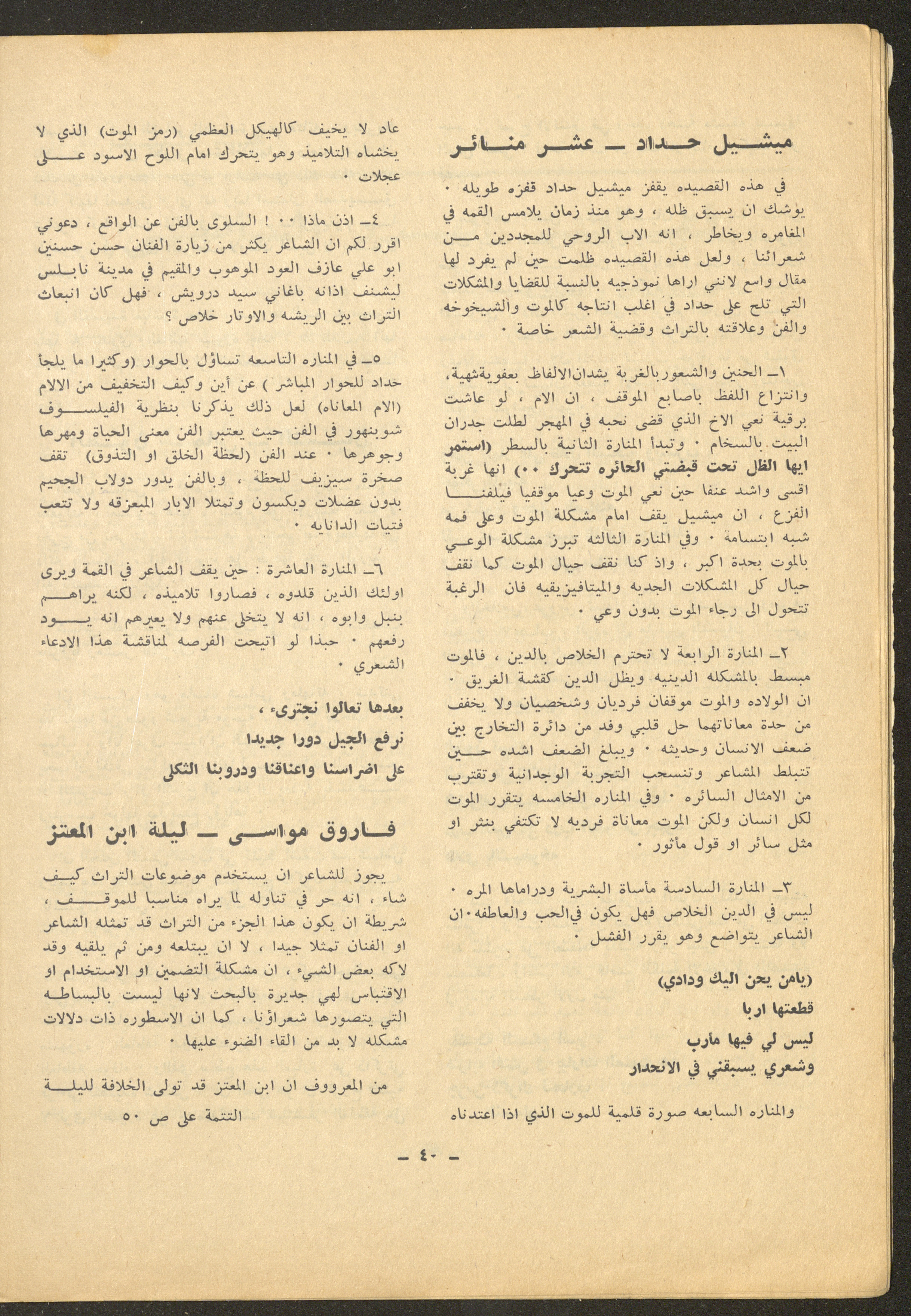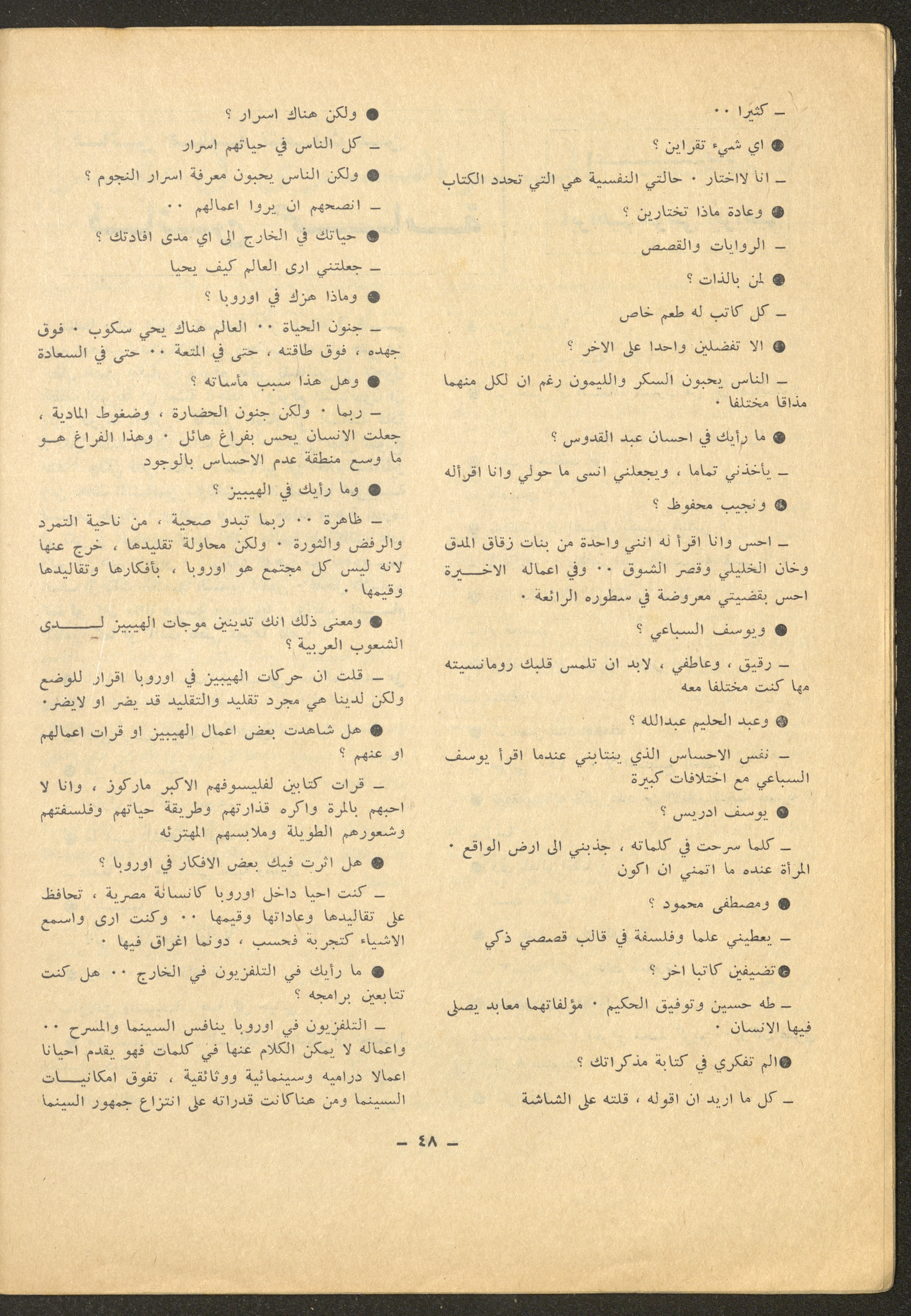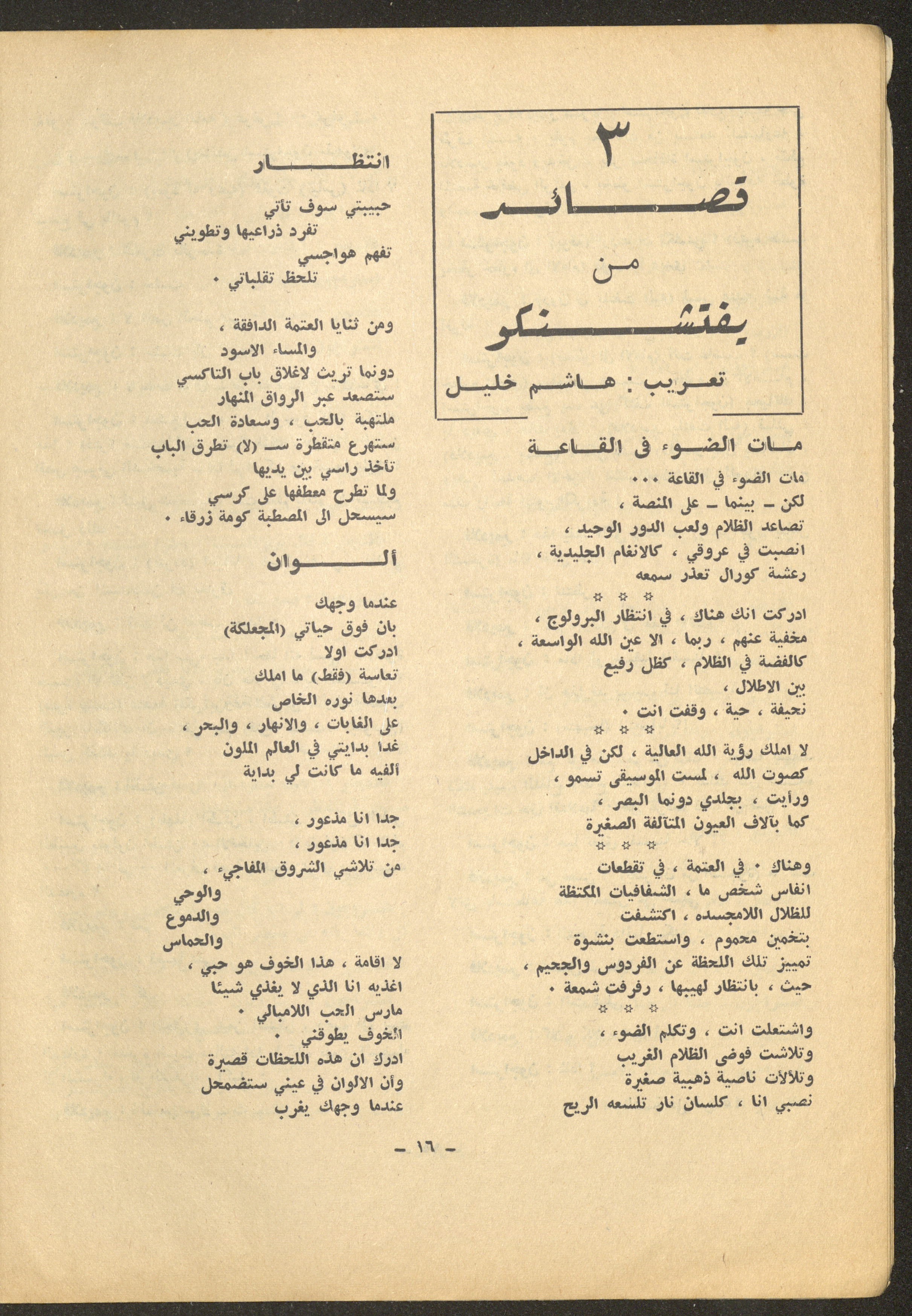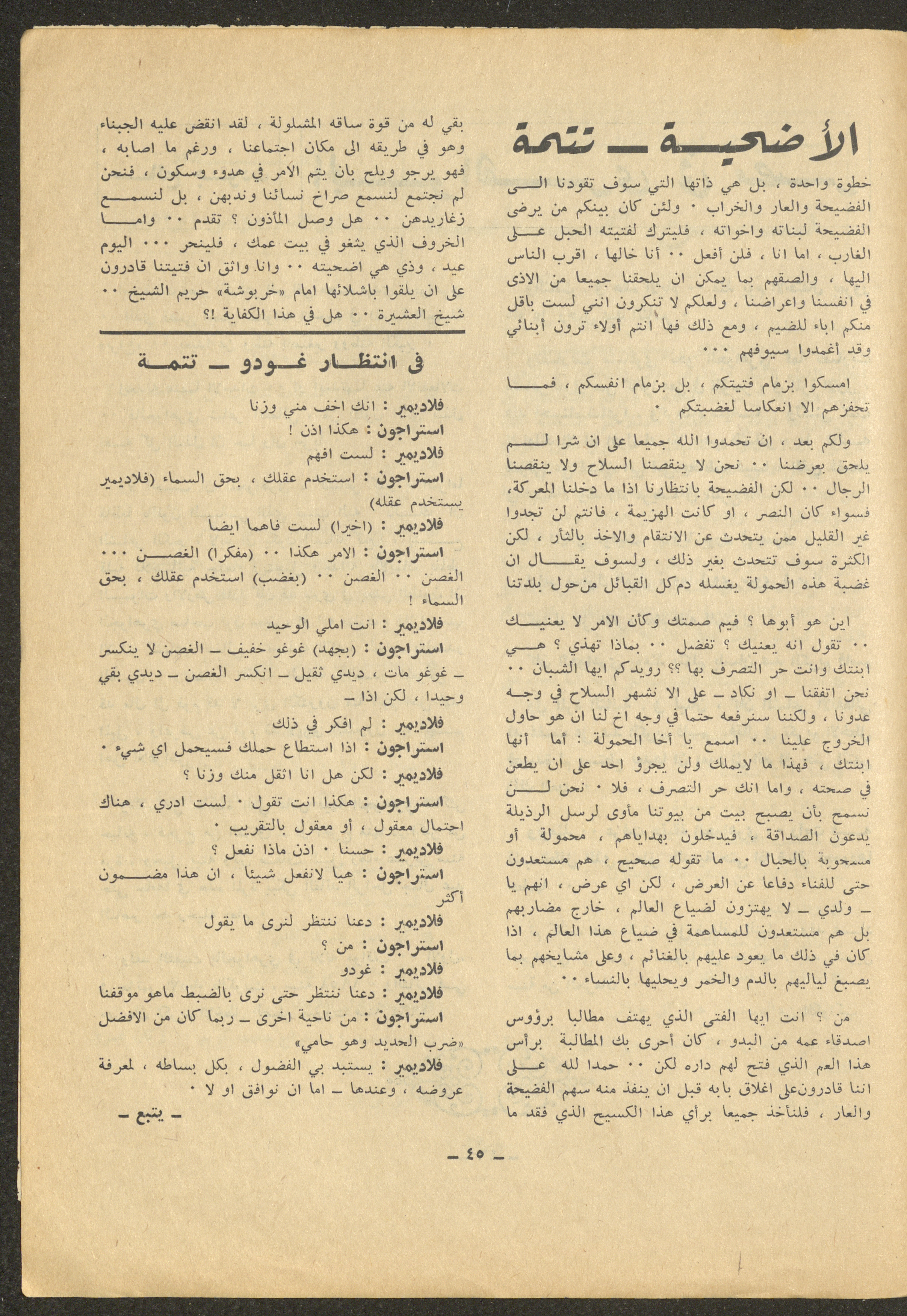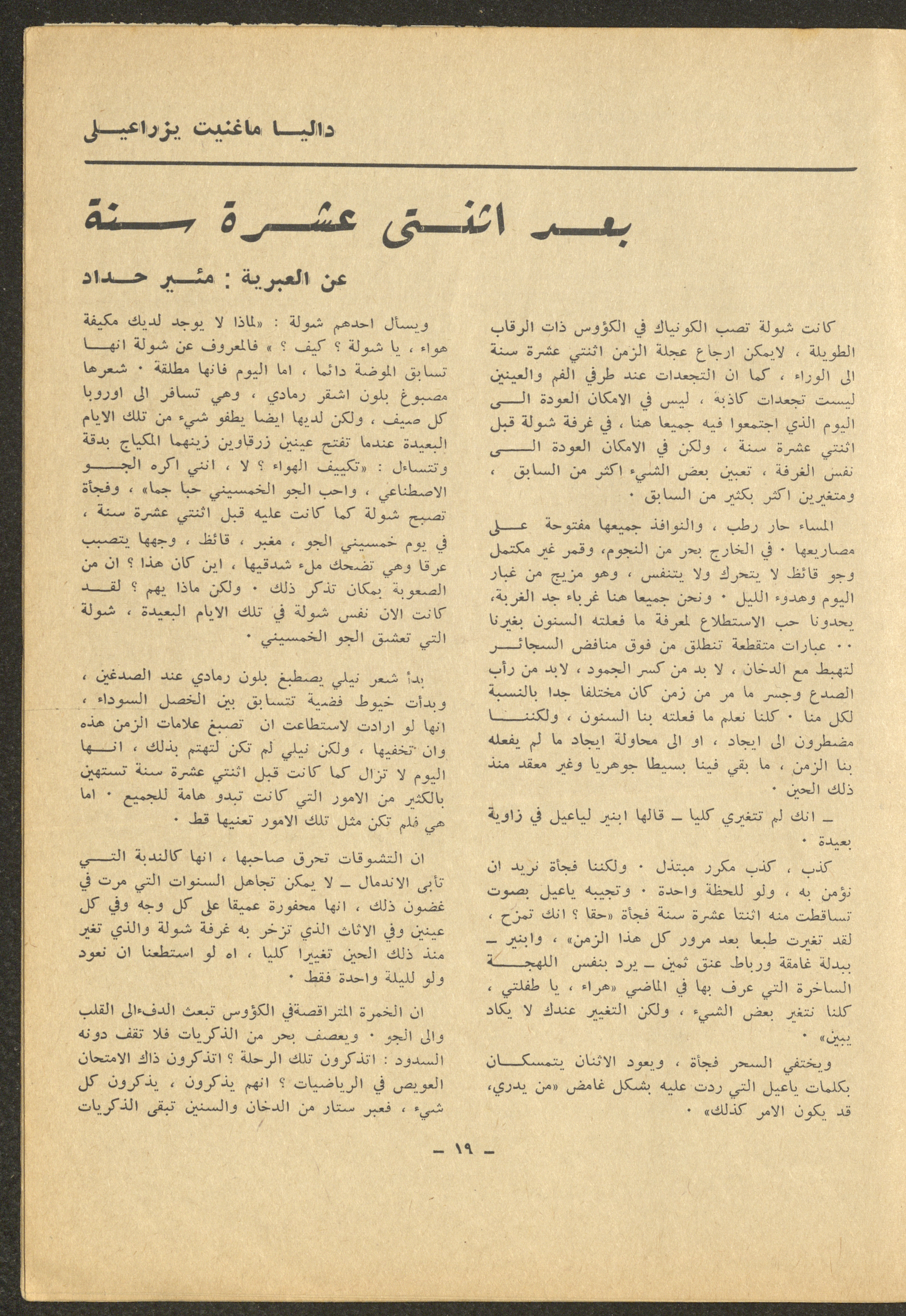 وثيقة مطبوعة باللغة العربية، مكونة من 50 صفحة، تتضمن العدد التاسع من مجلة الشرق الصادر في شهر شباط عام 1972، وهي مجلة شهرية تعنى بشؤون الأدب والفكر والفن، كانت تصدر عن صحيفة الأنباء تحت إشراف مدير التحرير محمود عباسي، وطبعت في مطبعة دوكمة في القدس، إذ بلغ ثمن العدد ليرتان وتضمنت صورًا ومقالات وأبحاث وأشعار وقصص، منها: - "في انتظار جودو"، مسرحية بقلم صمويل بيكت وتعريب نواف عبد حسن. - "الموت وأزهار التفاح"، مسرحية بقلم زكي درويش. - "حبيبي أضاع ضفيرتي في الخريطة"، قصيدة بقلم سهام داود. - "عصير النار في ثدييك"، قصيدة بقلم رمزي درويش. - "بعد اثنتي عشرة سنة"، قصة بقلم داليا ماغنيت يزراعيلي. - "الأضحية"، قصة بقلم مصطفى مرار. - "الأسطورة الفارسية"، بحث من إعداد علي حمد. - "القضية"، مقال قلم الياس مخول.
