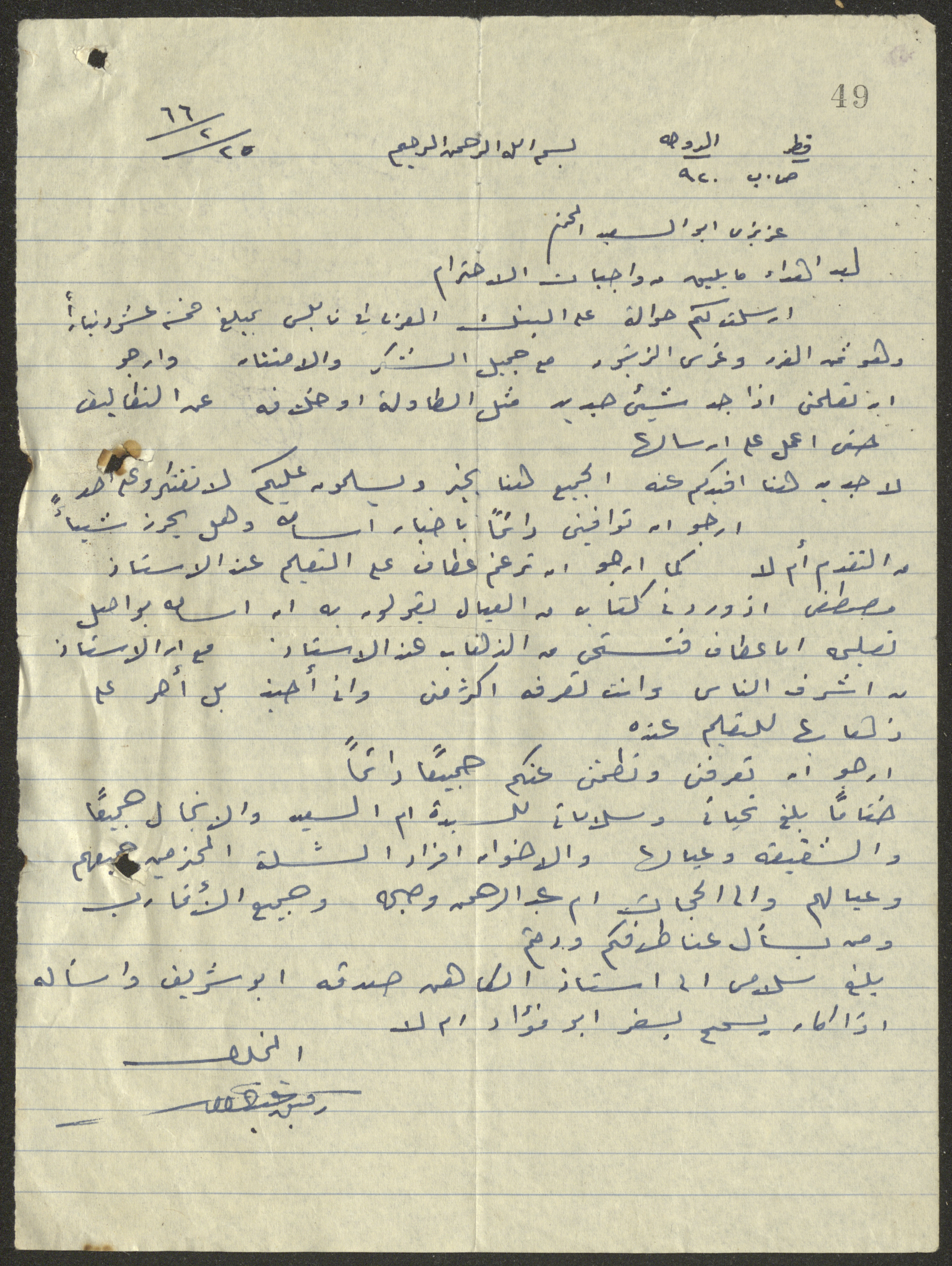 A Letter Addressed to Wajih Abdel-Baqi, 25 February 1966