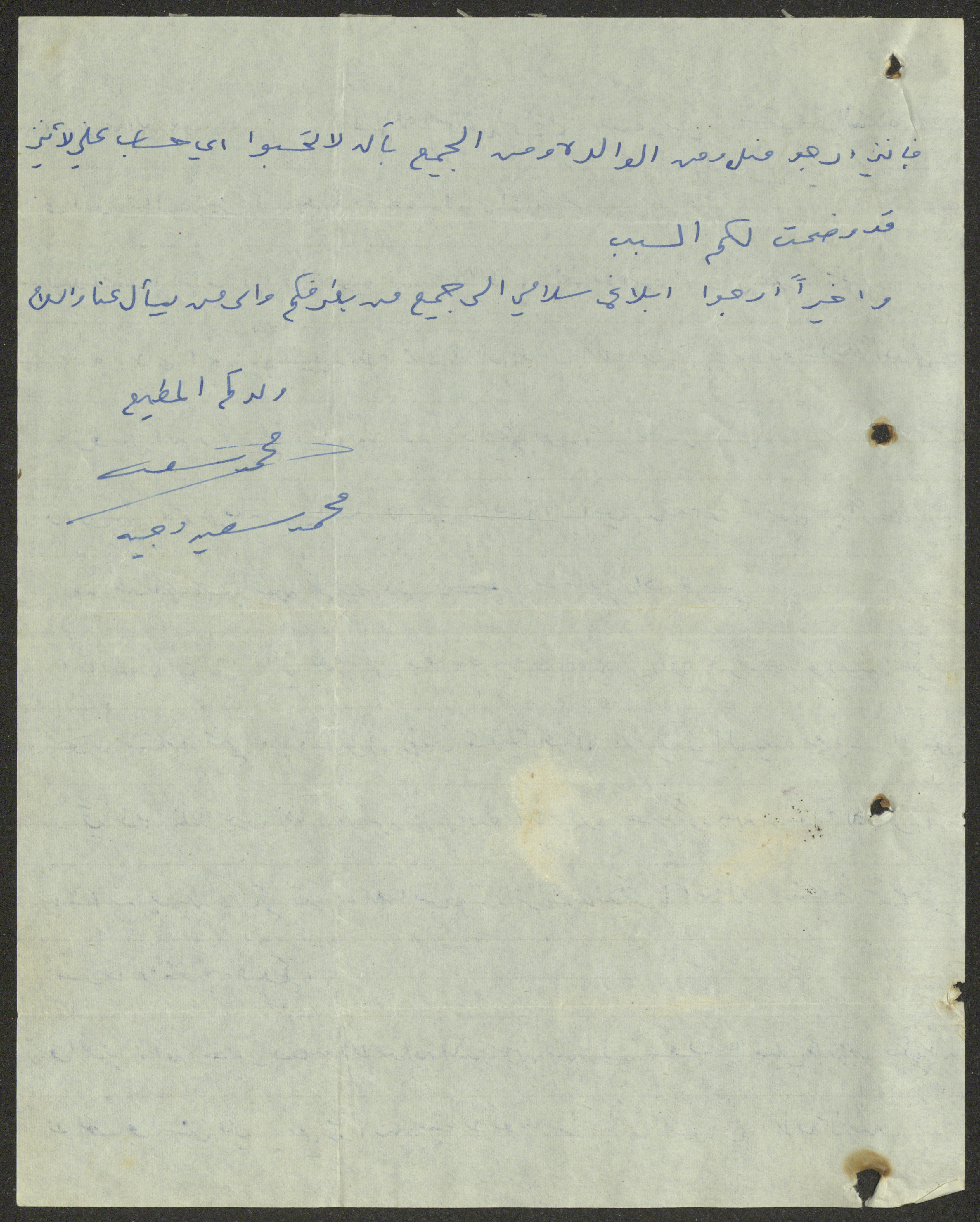 A Letter Addressed to Wajih Abdel-Baqi from His Son Mohammad Saeed, 8 May 1964