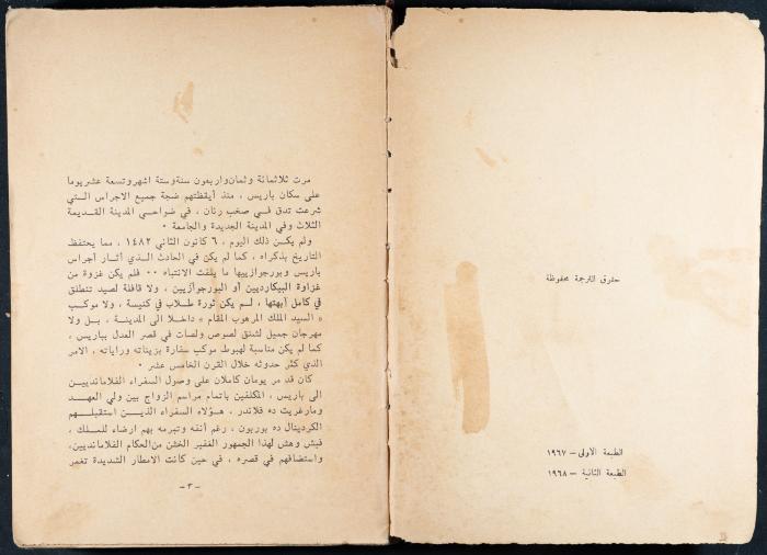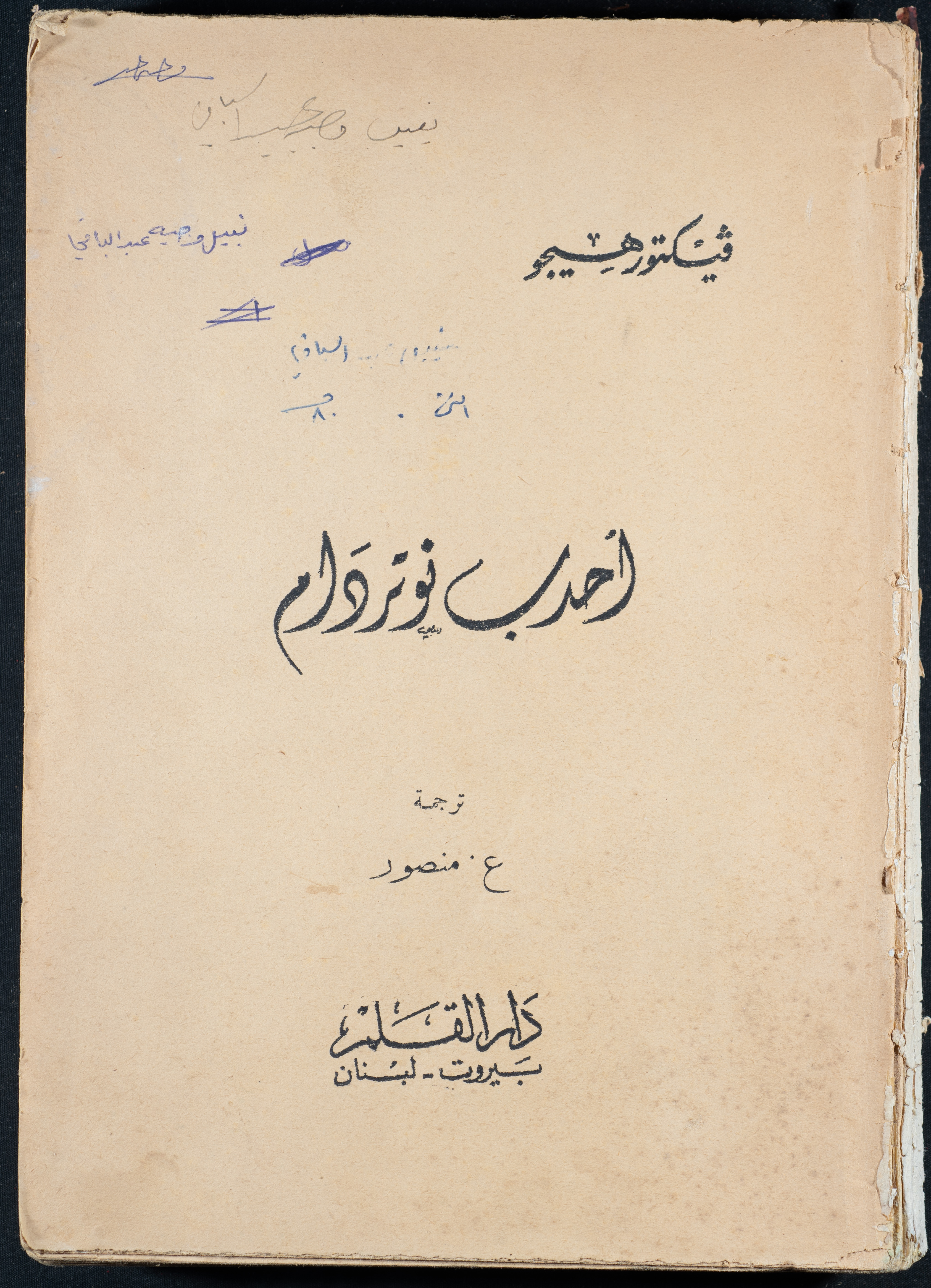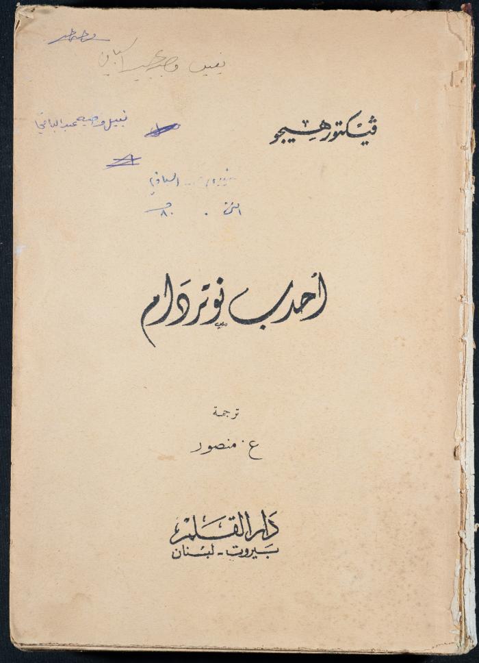 وثيقة مطبوعة باللغة العربية، تتضمن جزء من رواية أحدب نوتردام للمؤلف فيكتور هيجو، طبعت في مطابع منيمنة الحديثة في بيروت-لبنان سنة 1967، تدور أحداث الرواية حول شخص لقيط وأحدب وقبيح كما صوره الكاتب، يدعى كوازيمودو تمت تربيته على يد قس، ويظهر على الغلاف توقيع وجيه عبد الباقي واسم ابنه نبيل.