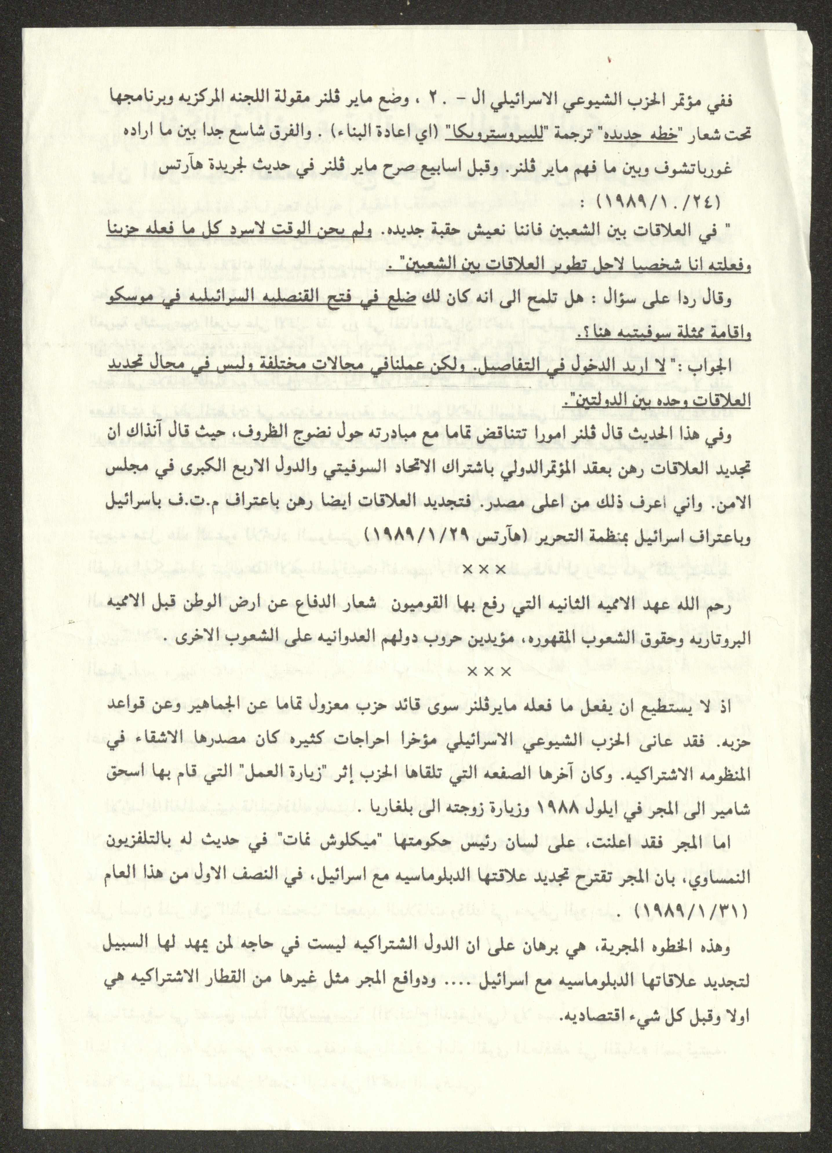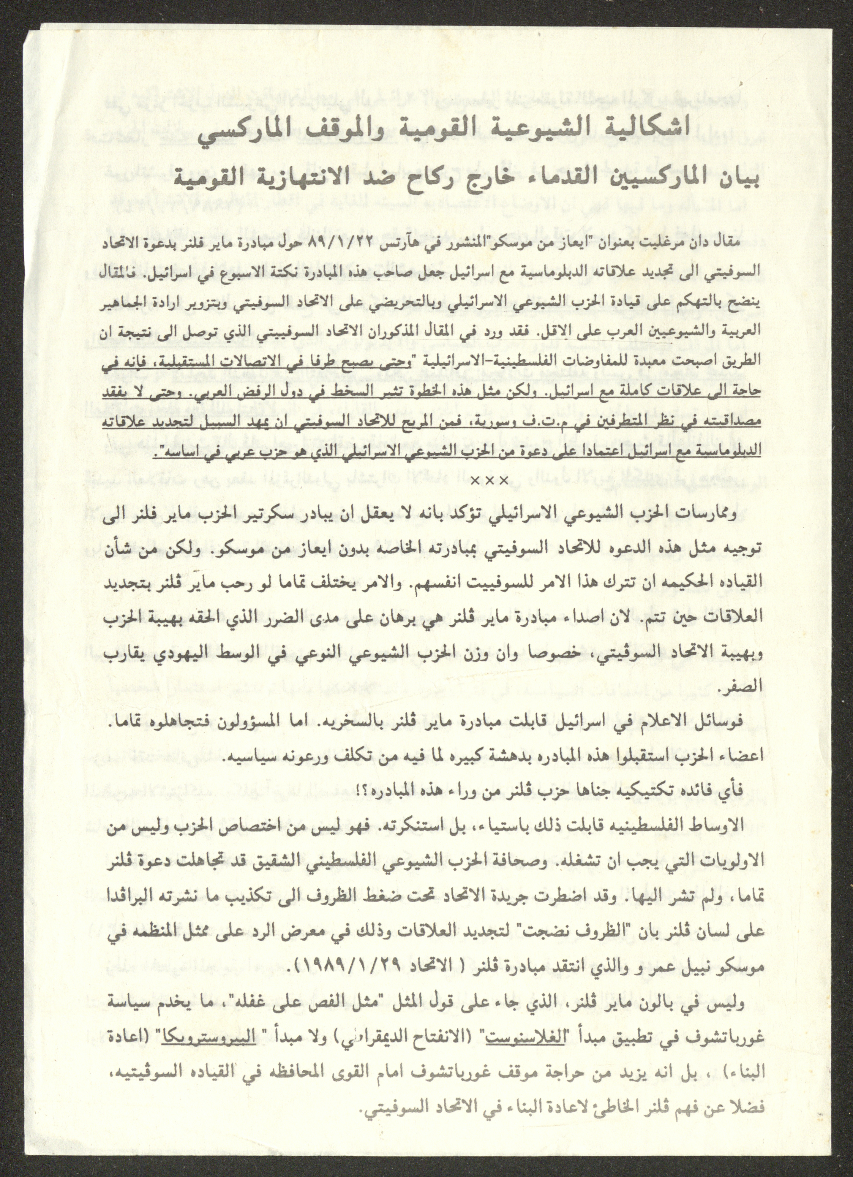 "إشكالية الشيوعية القومية والموقف الماركسي"، مقال لصليبا خميس، 1 شباط 1989