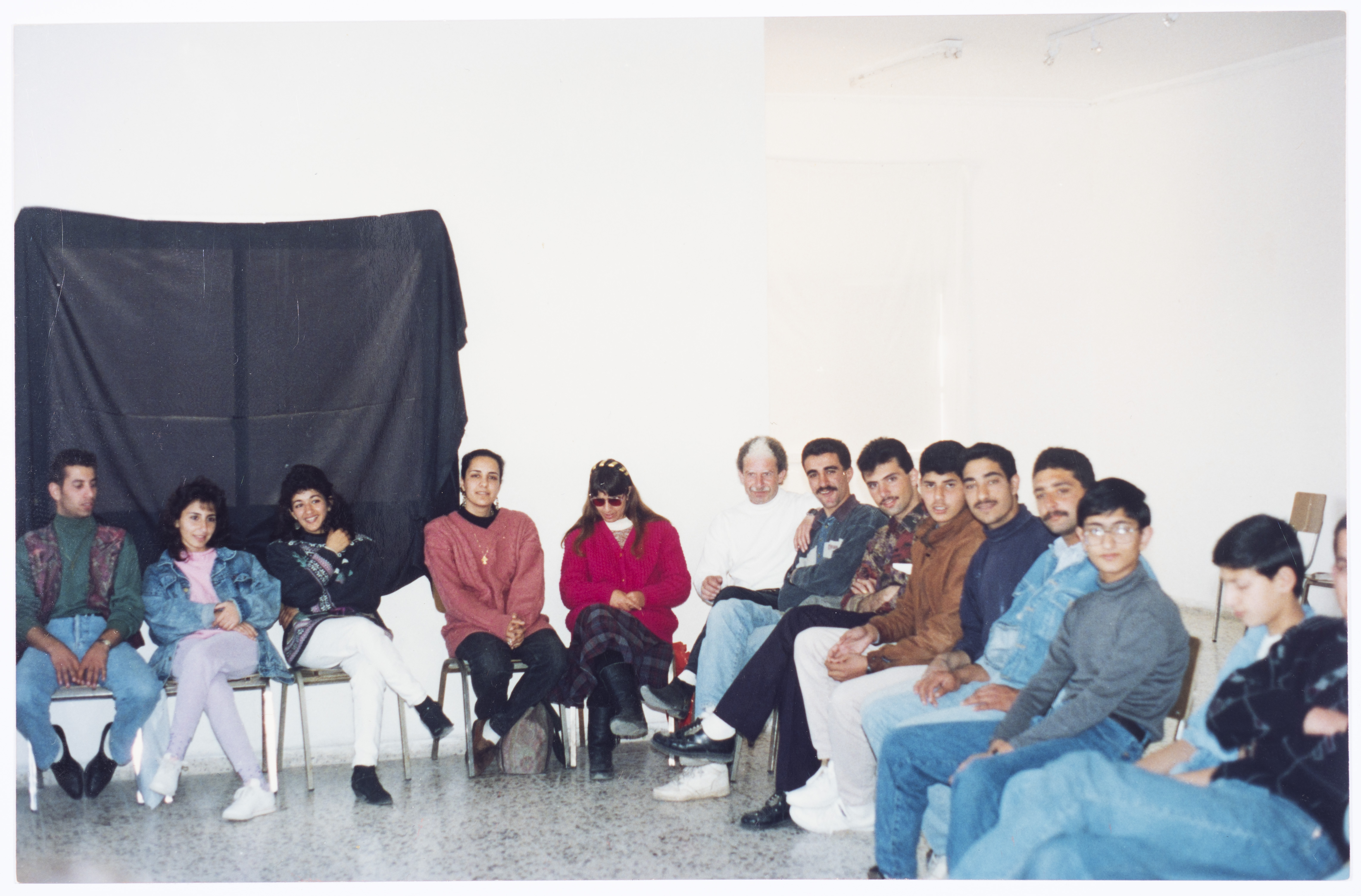 Members of el-Funoun Troupe at the Popular Art Center, al-Bireh, 1994