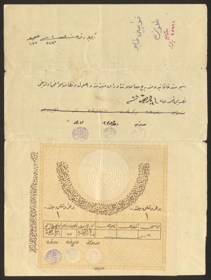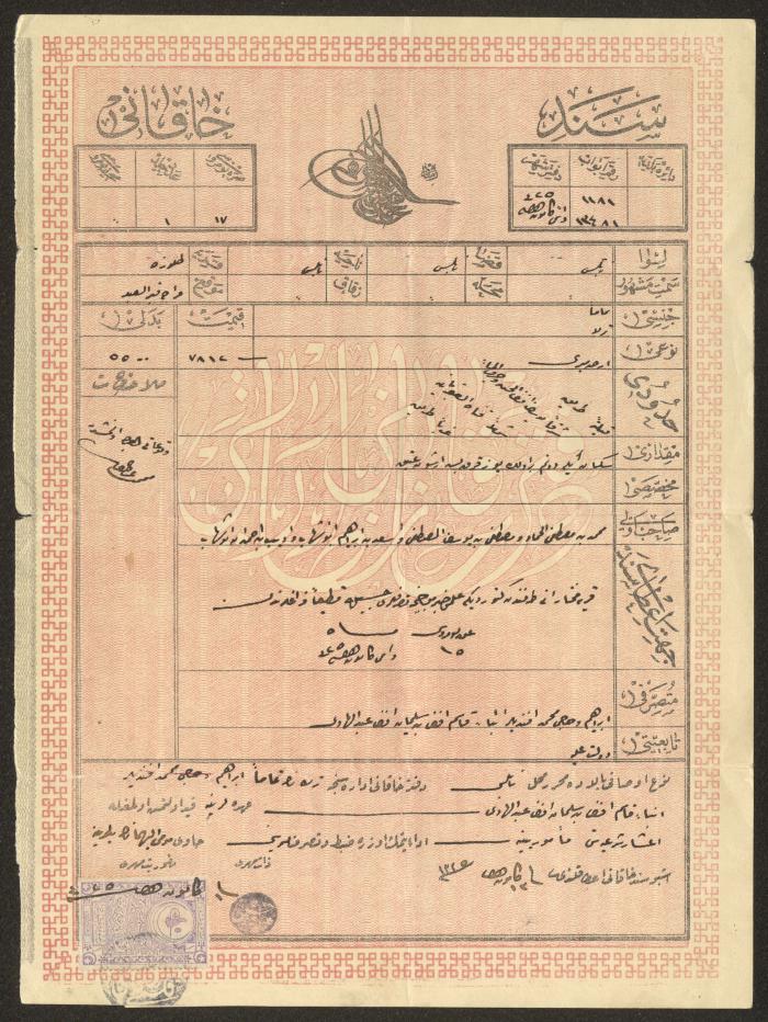 "سند خاقاني" صادر عن دائرة تسجيل الأملاك، نابلس، 1907