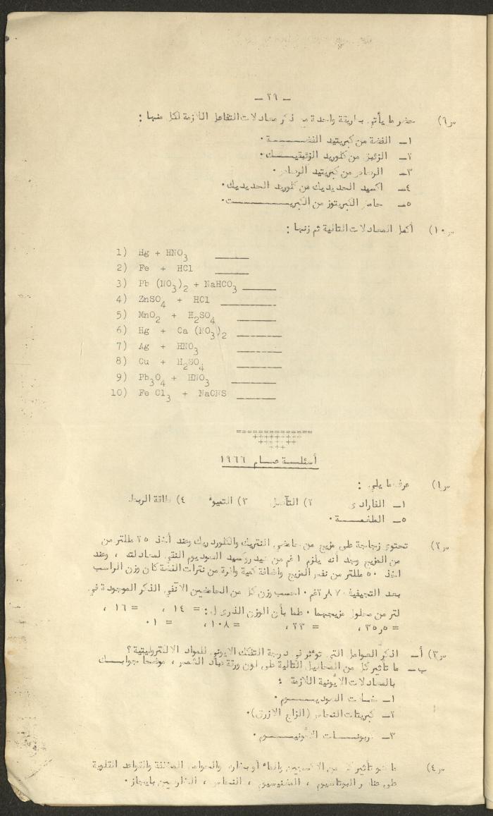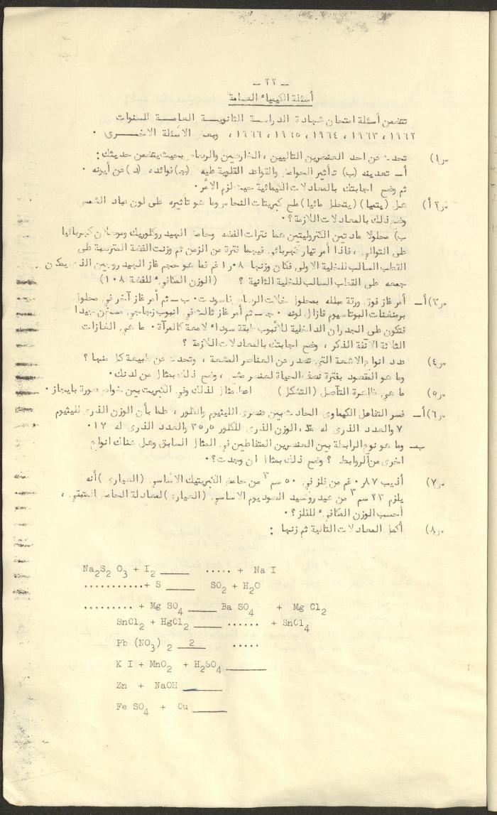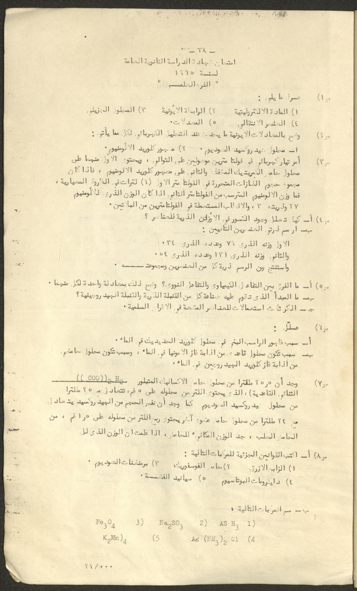 Issued by the National Rawda College in Nablus and written by Jamal al-Kayed in 1967, this document shows a book titled "The Ionic and Atomic Theory in General Chemistry" taught to the scientific branch's secondary third grade.