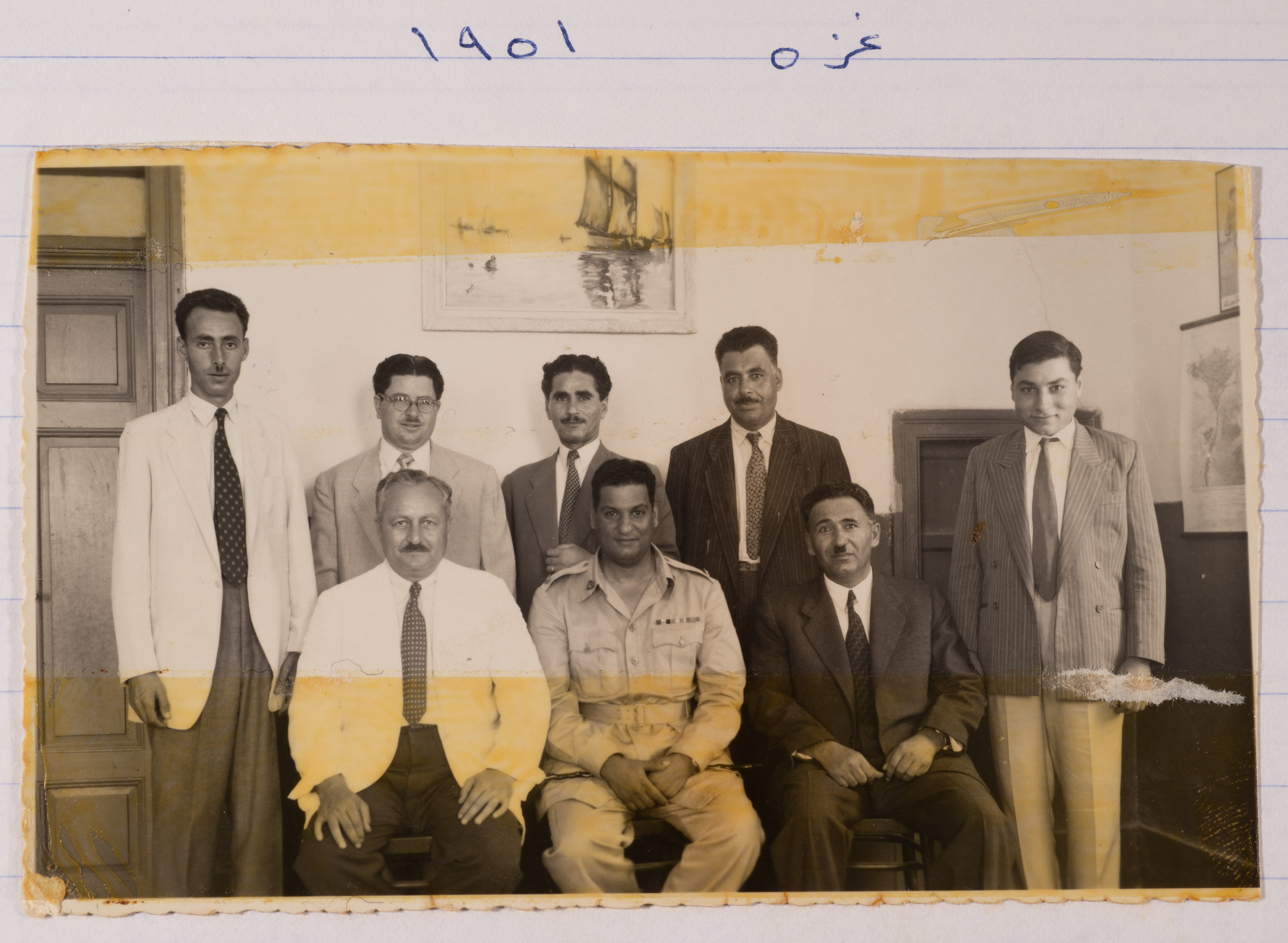 Salameh Khalil with his Colleagues at the Department of Education, Gaza, 1951