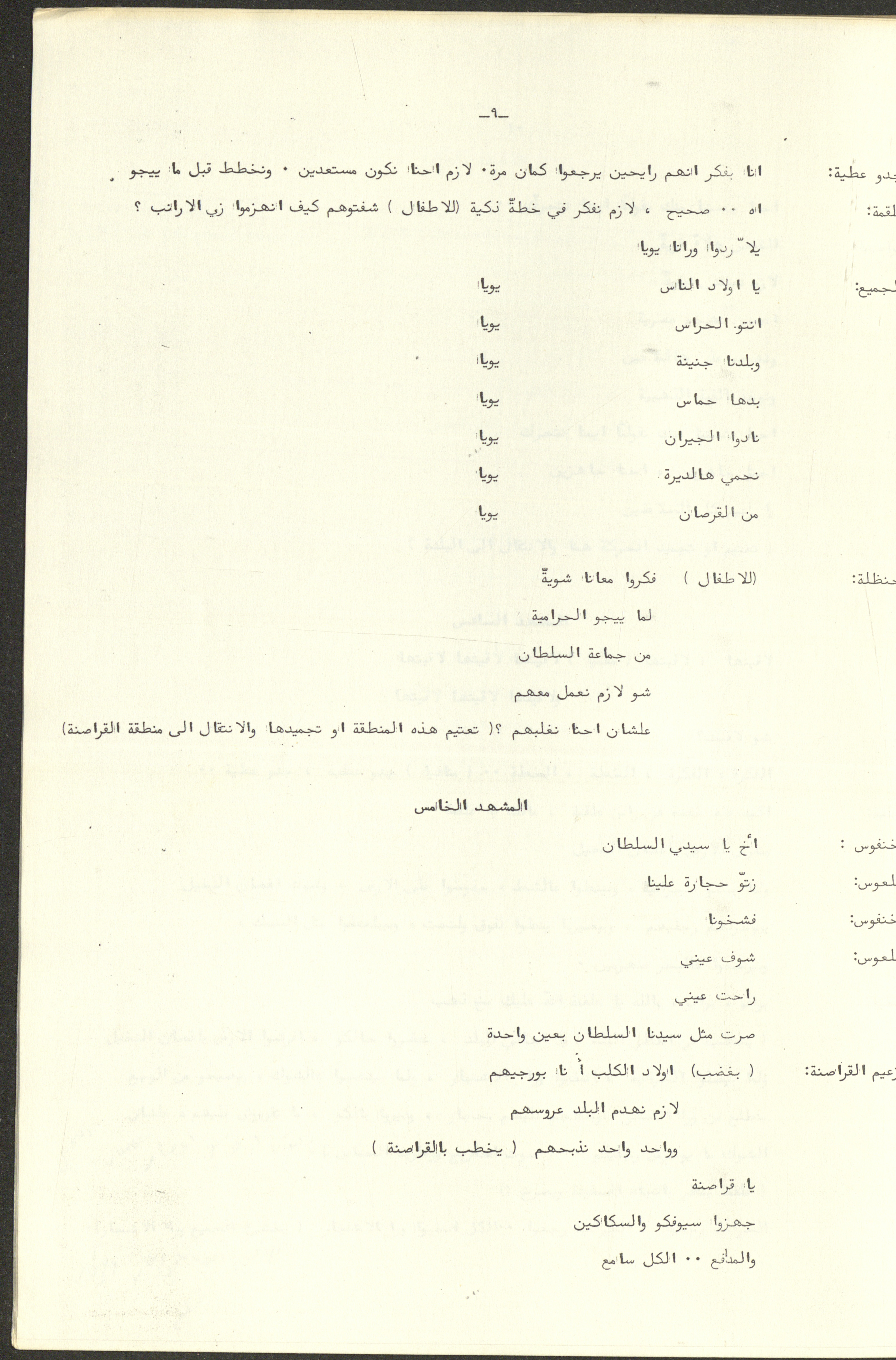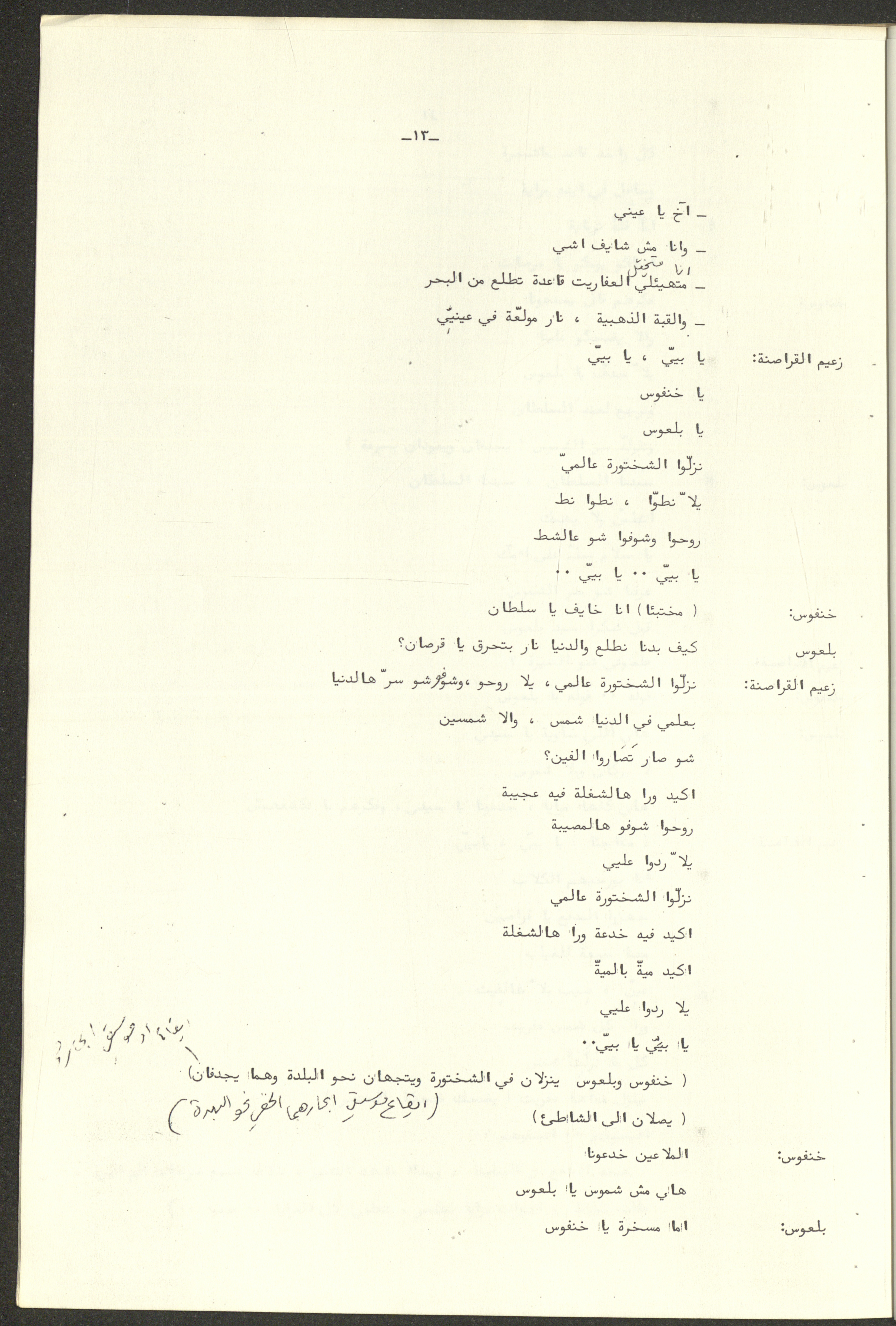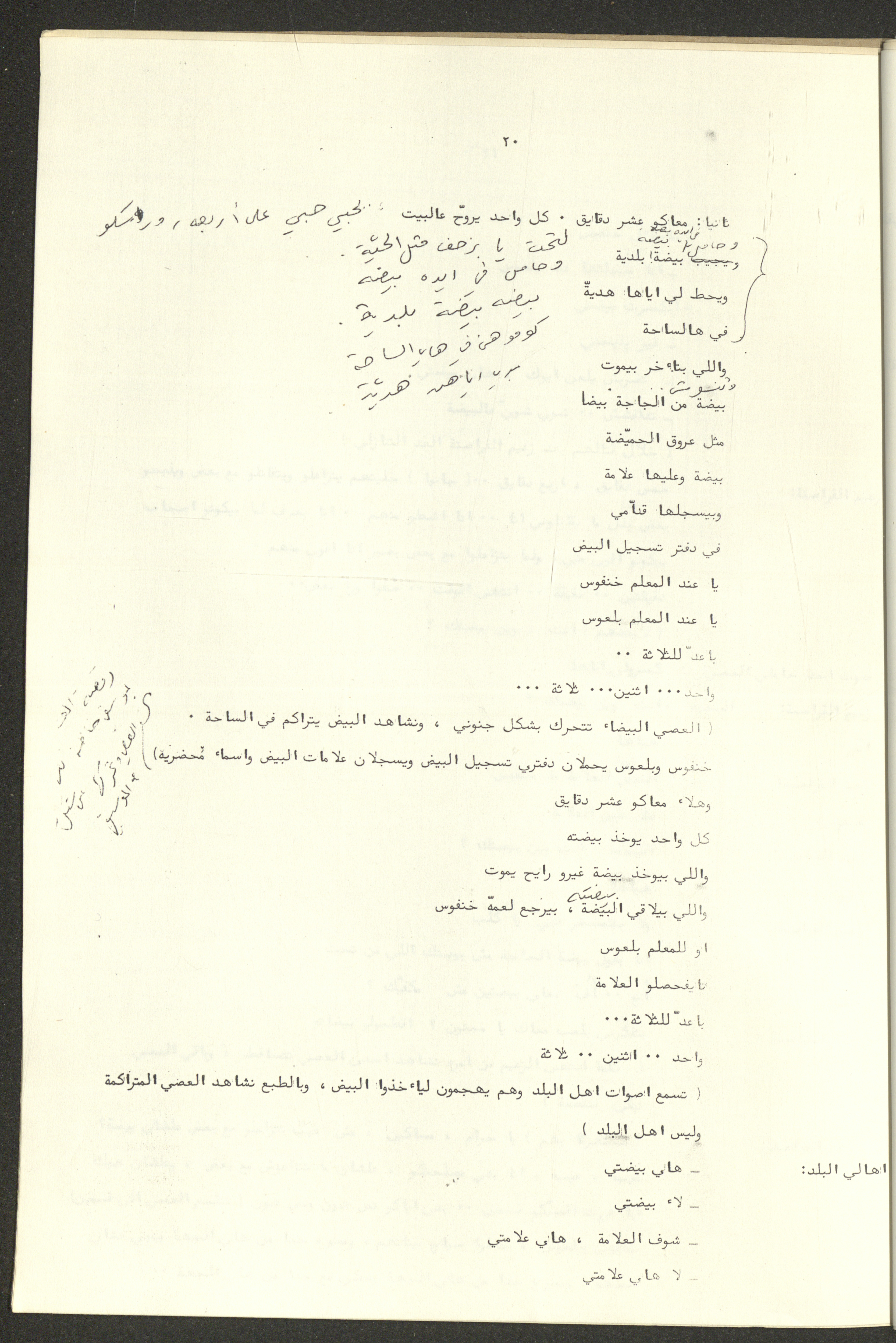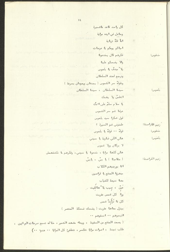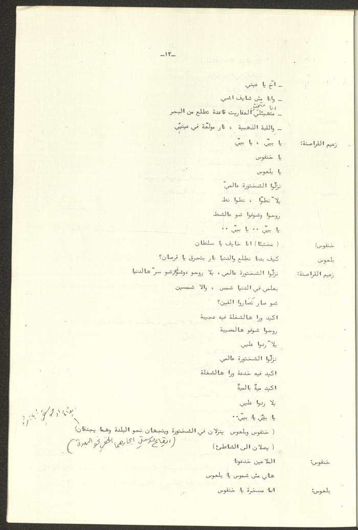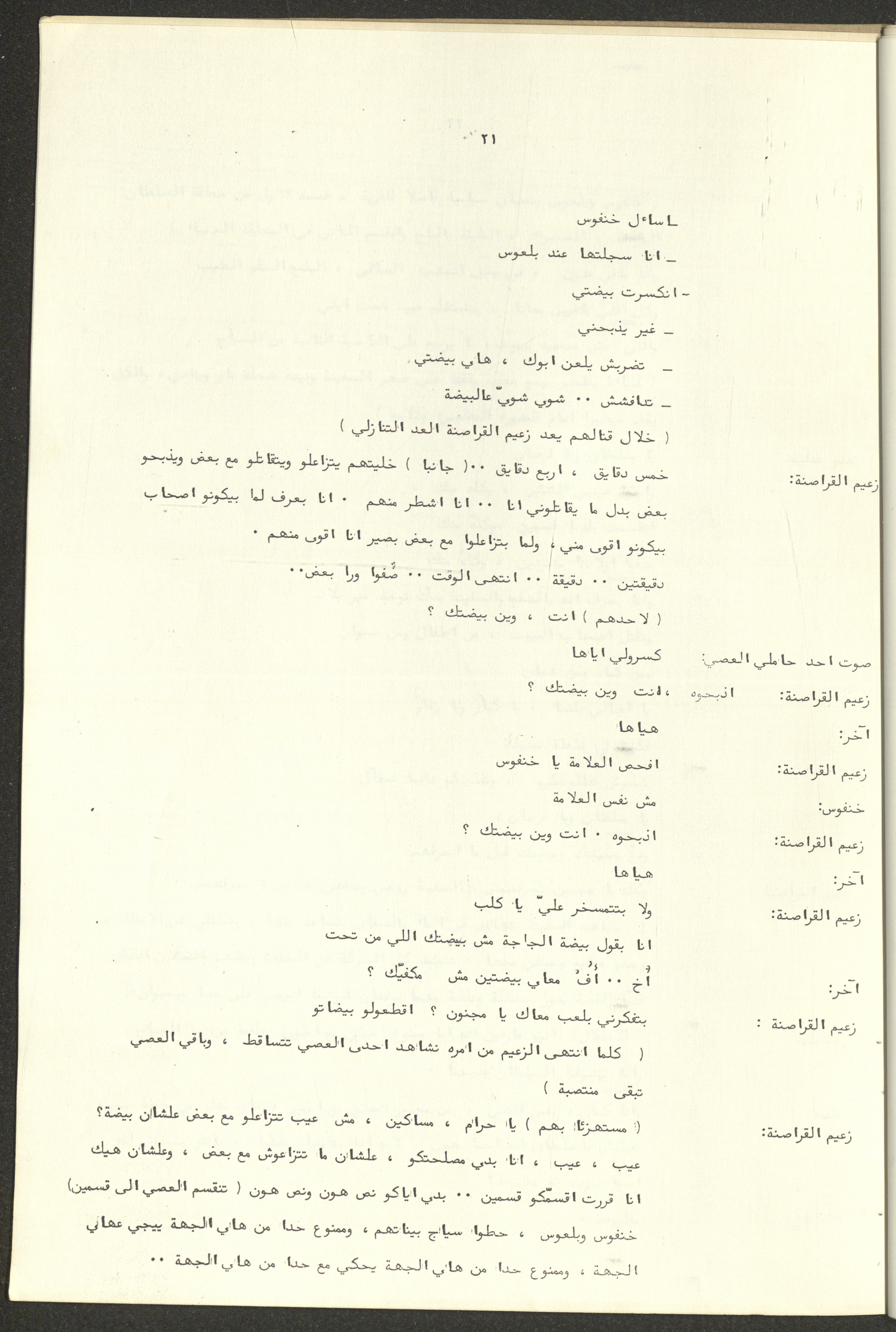 نص مسرحية العرائس "حنظل وعلقمة"، التي ألَّفها راضي شحادة في 23 كانون الأول 1986.