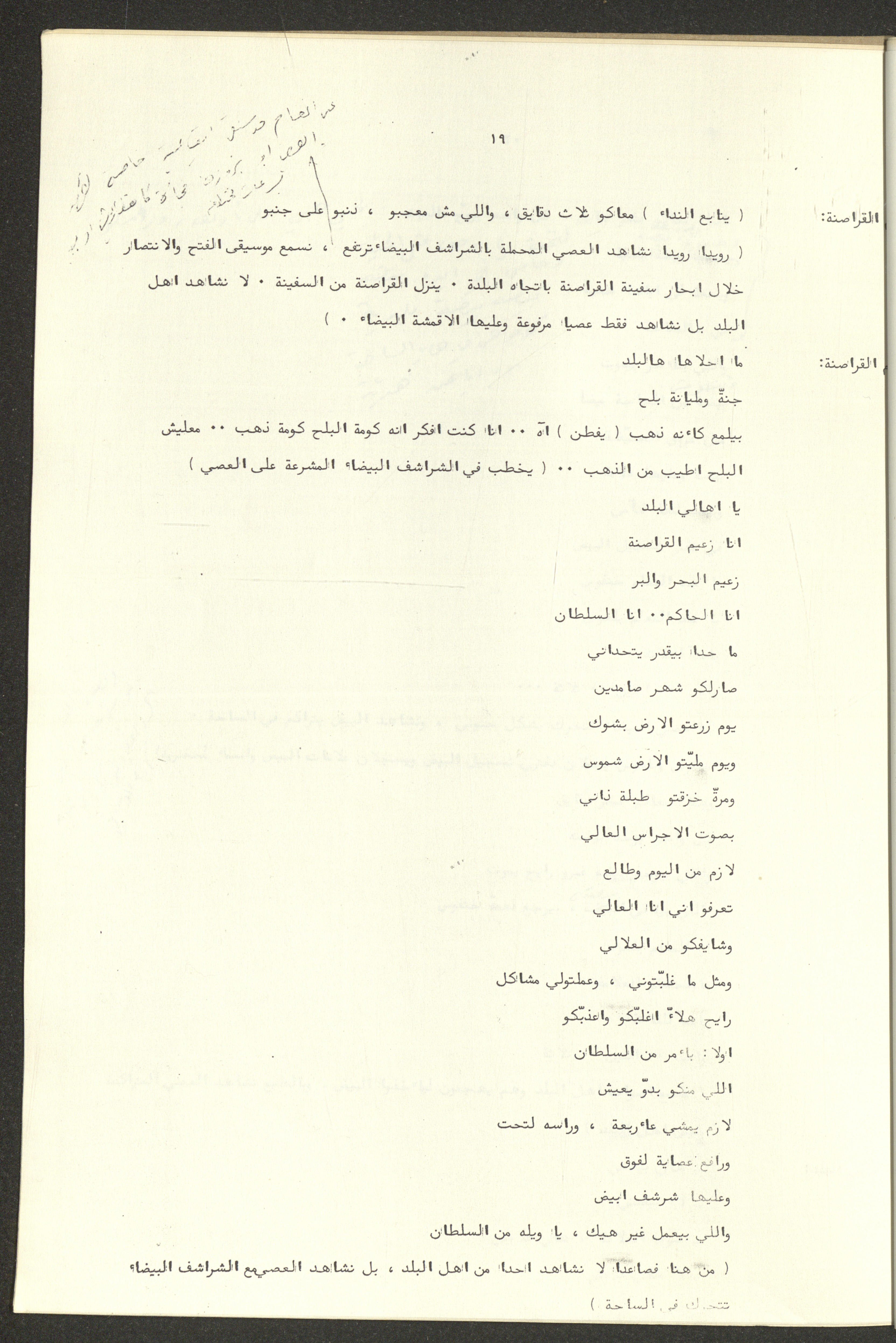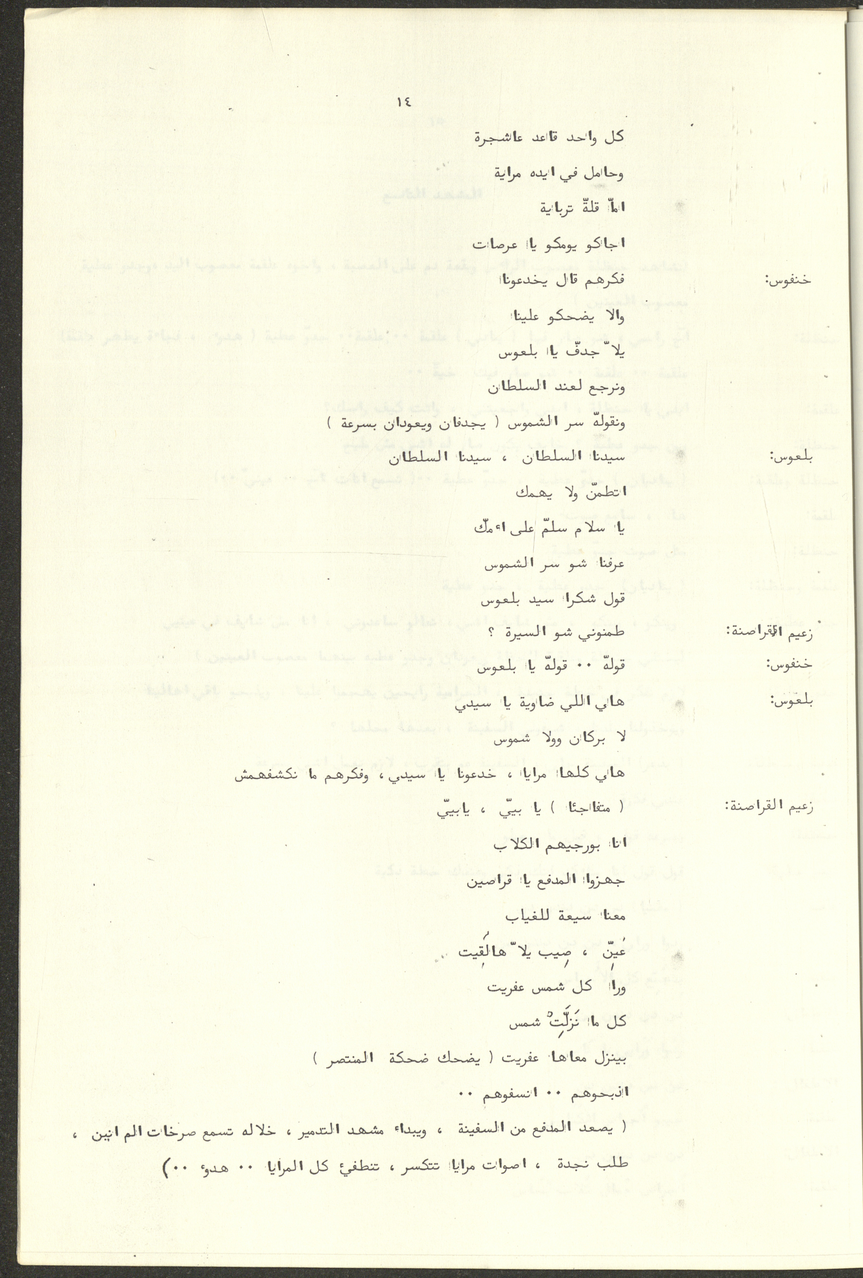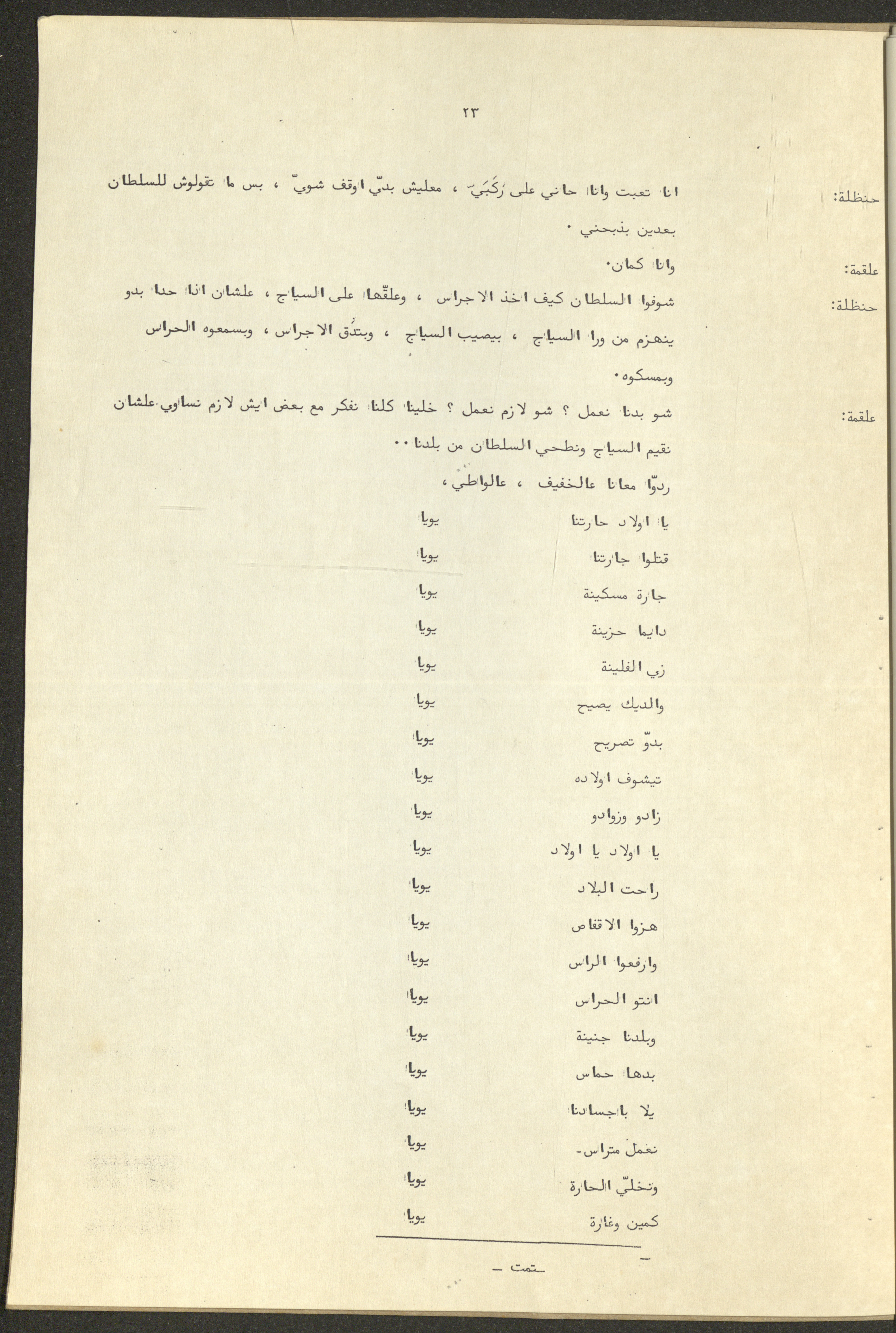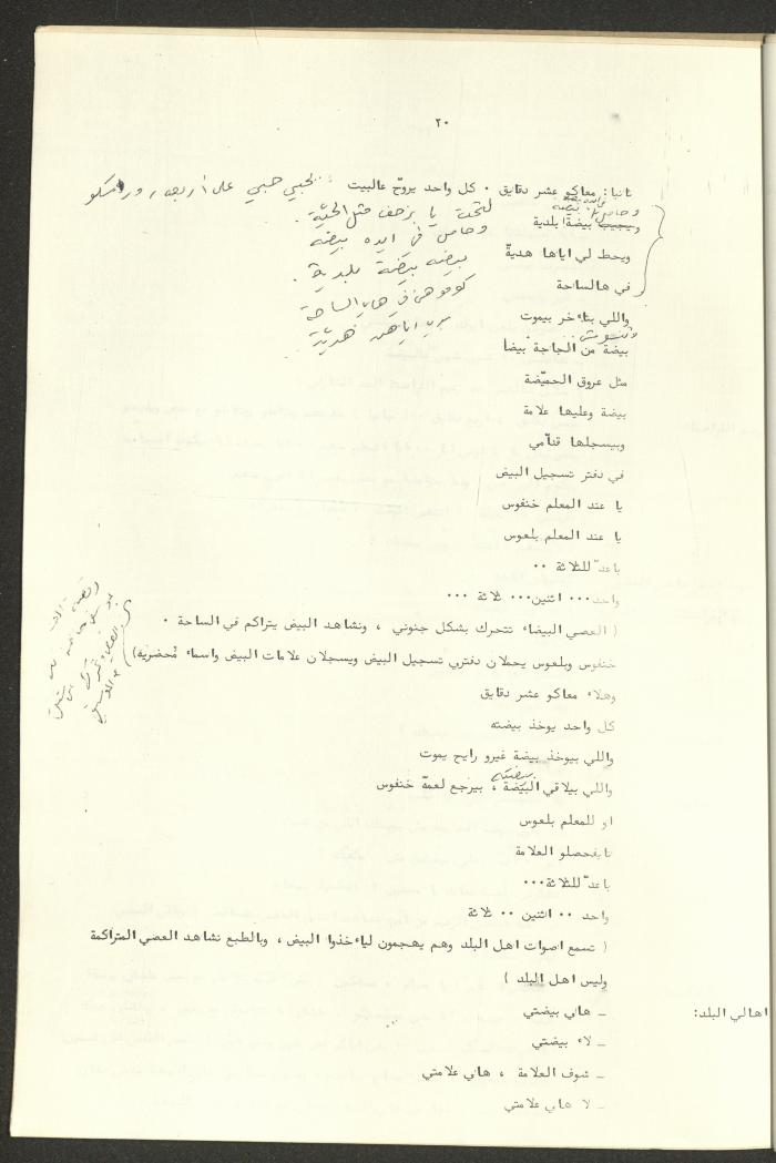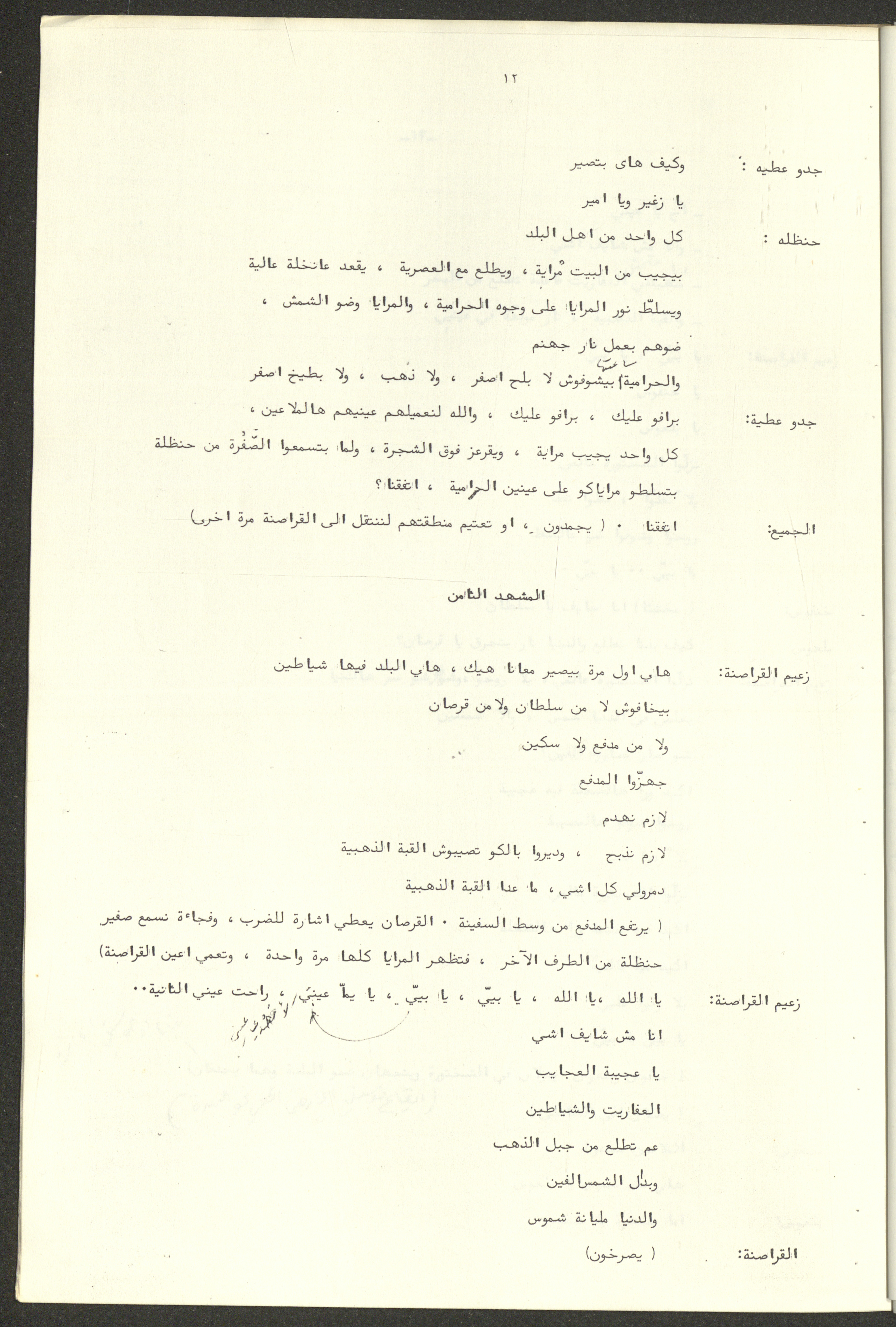 نص مسرحية العرائس "حنظل وعلقمة"، التي ألَّفها راضي شحادة في 23 كانون الأول 1986.