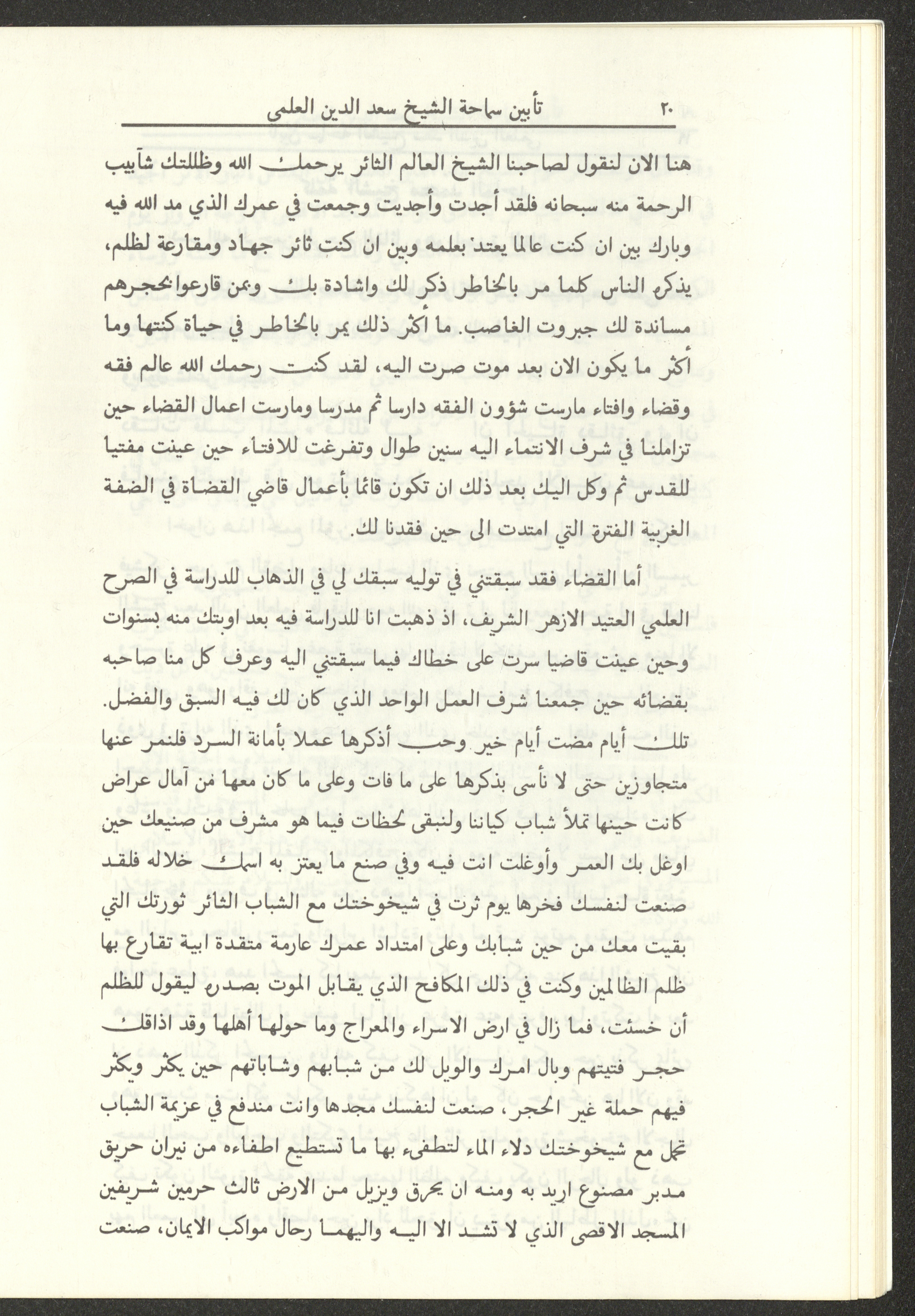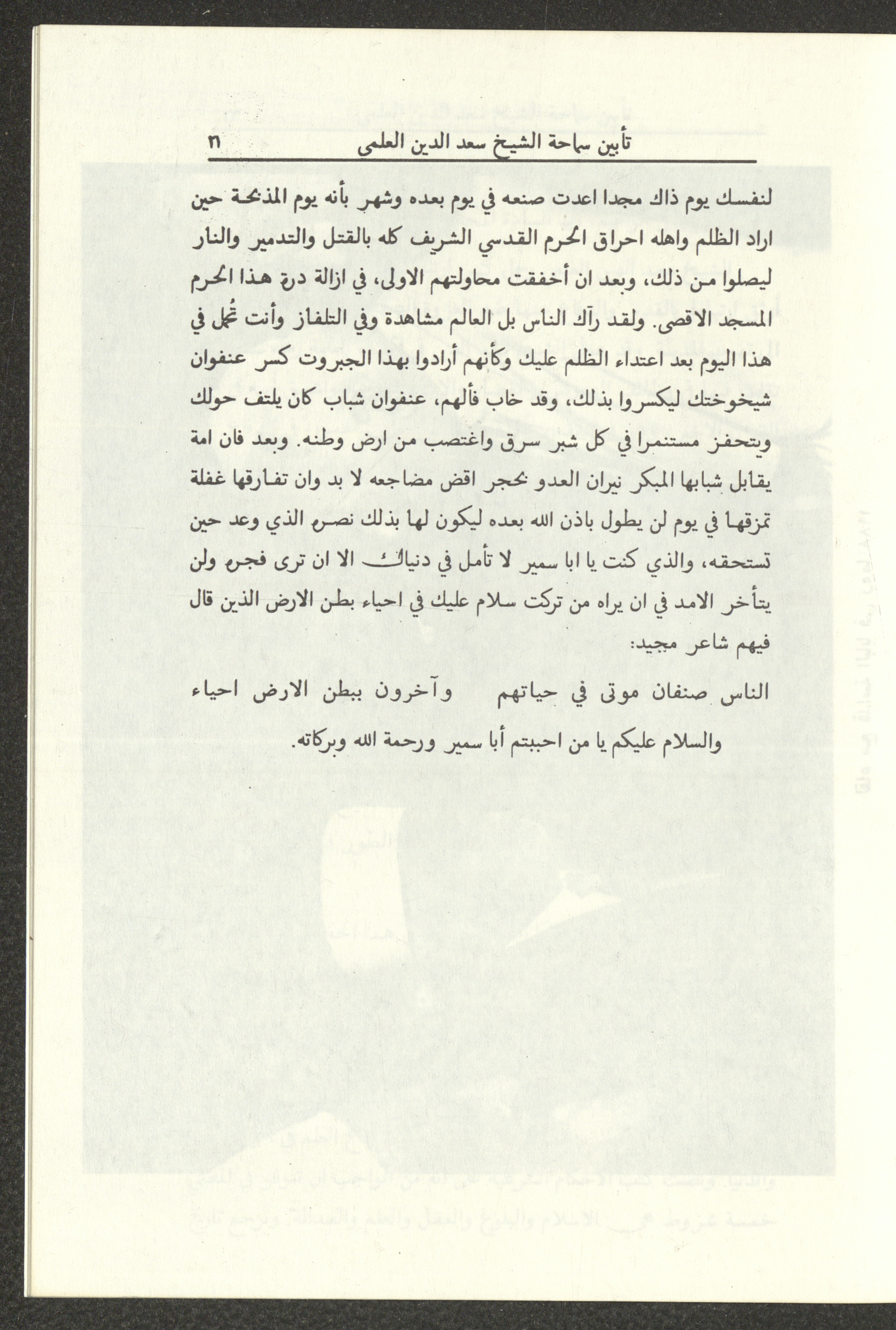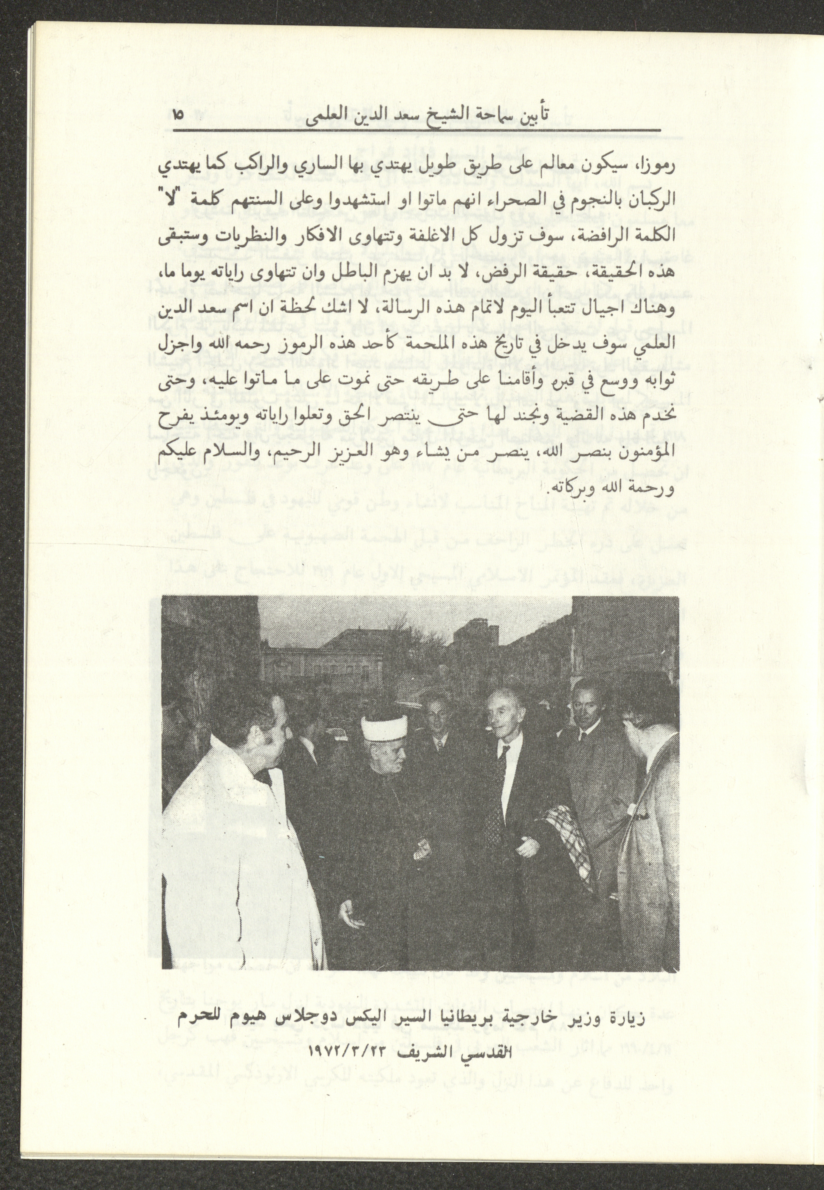 Held in Amman on 21 March 1993, this document shows the pamphlet of the memorial for Saad el-Din el-Alami, the mufti of Jerusalem and Head of the Islamic Authority.
