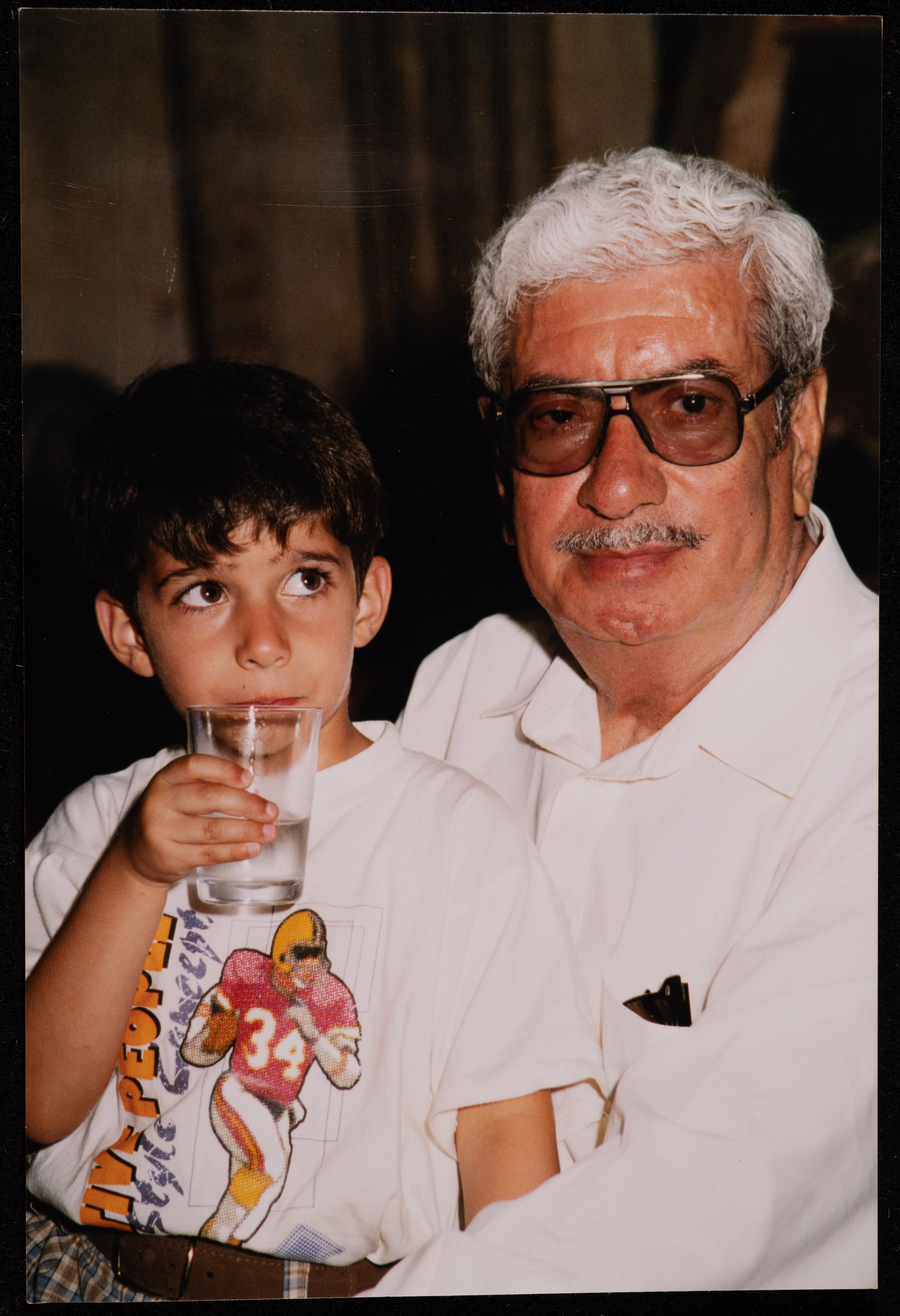 شكيب جهشان برفقة حفيده، الناصرة، نهاية تسعينيات القرن العشرين