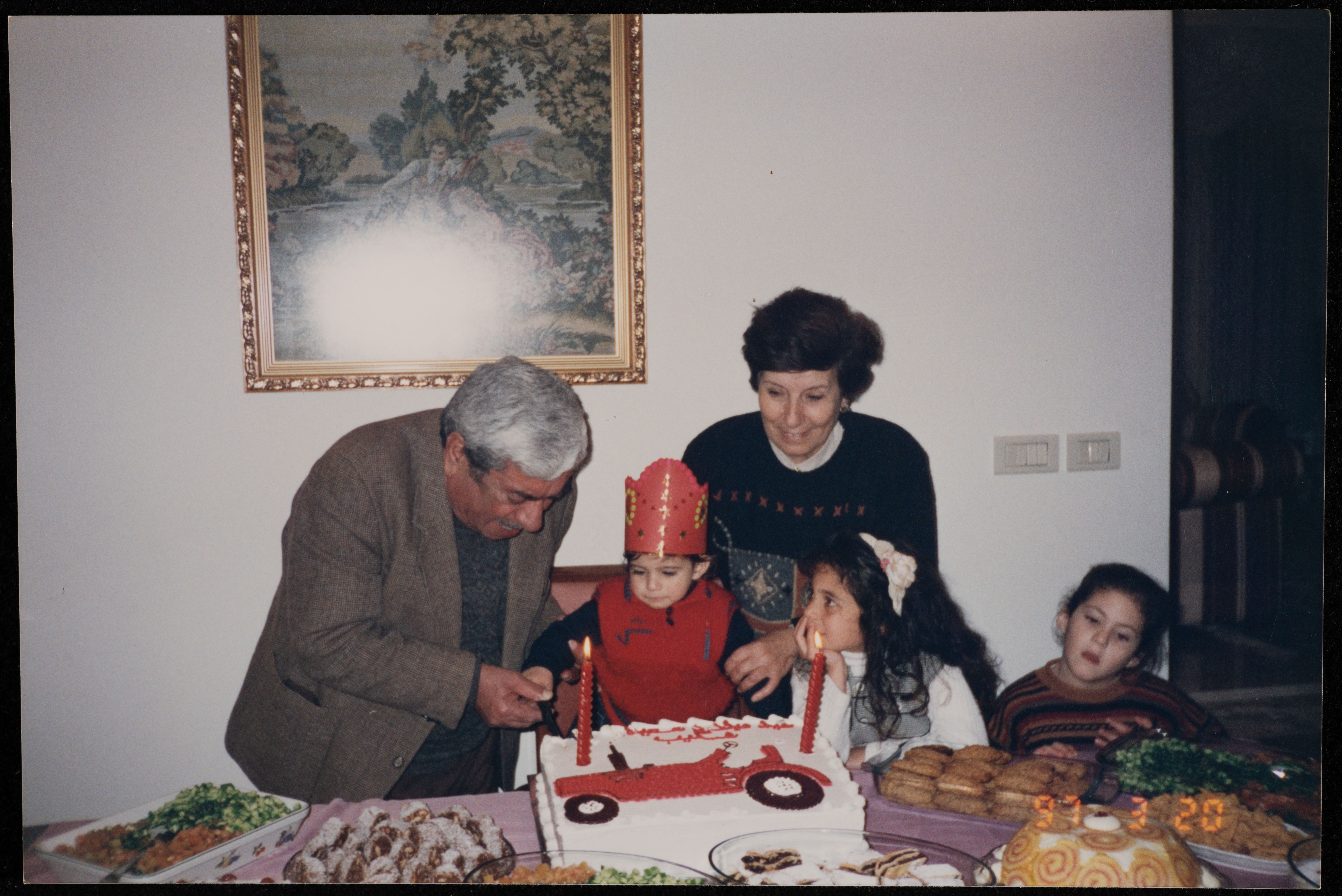 صورة التقطت عام 1997، يظهر فيها شكيب جهشان وزوجته جورجيت أثناء الاحتفال بعيد ميلاد حفيدهم شكيب في الناصرة.
