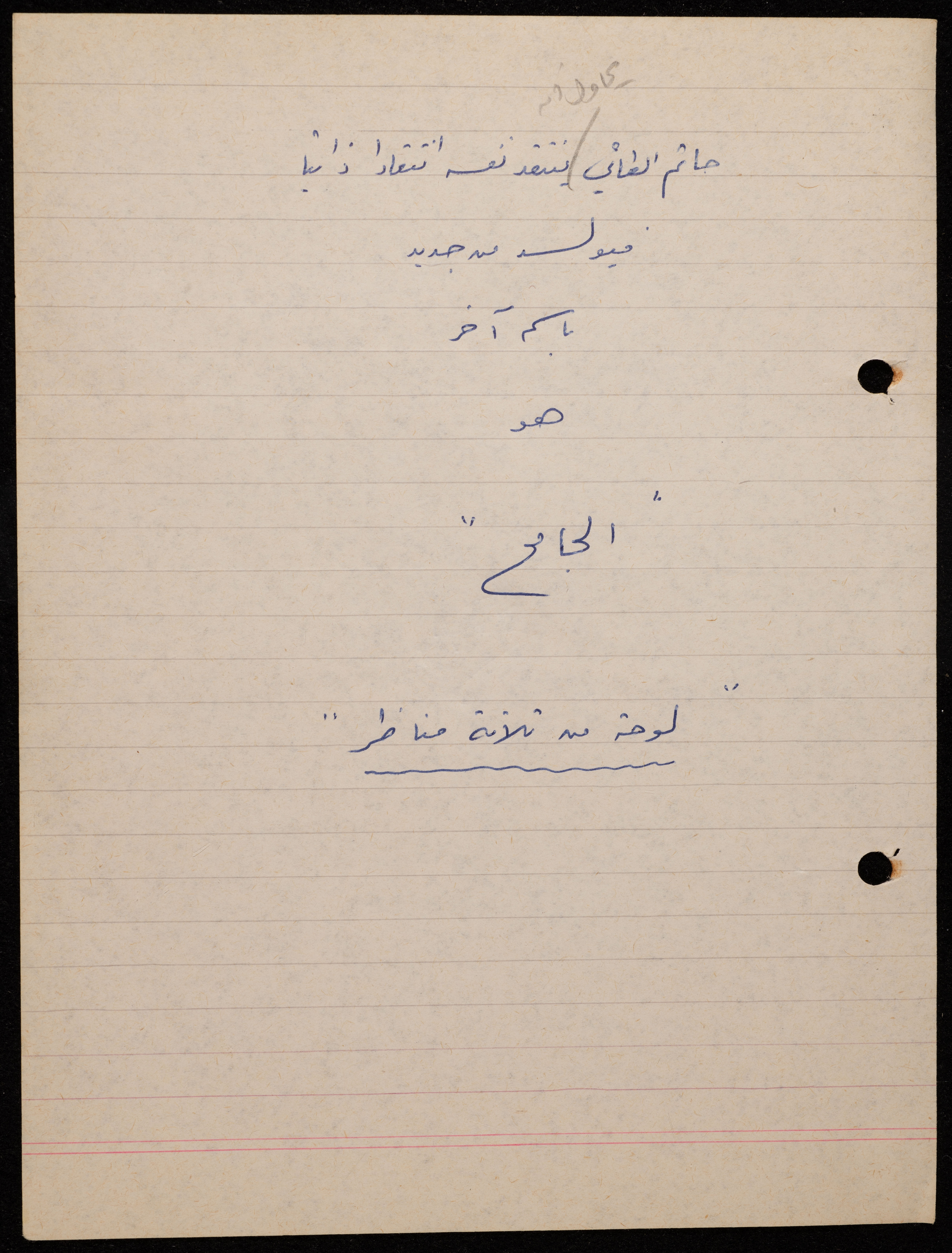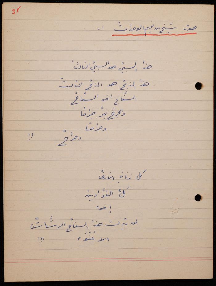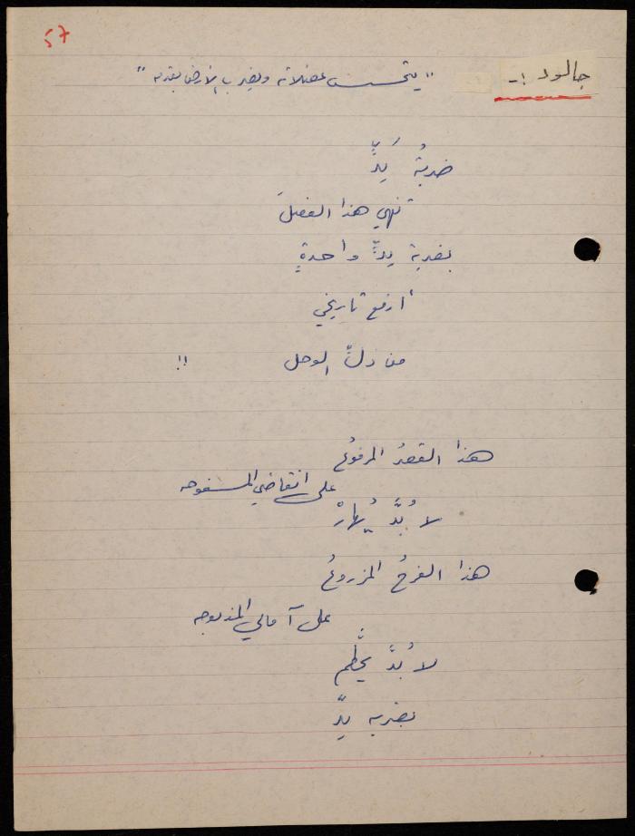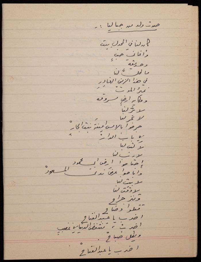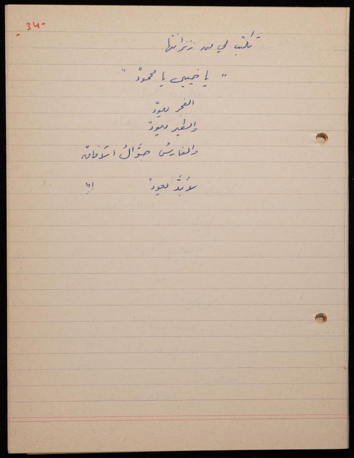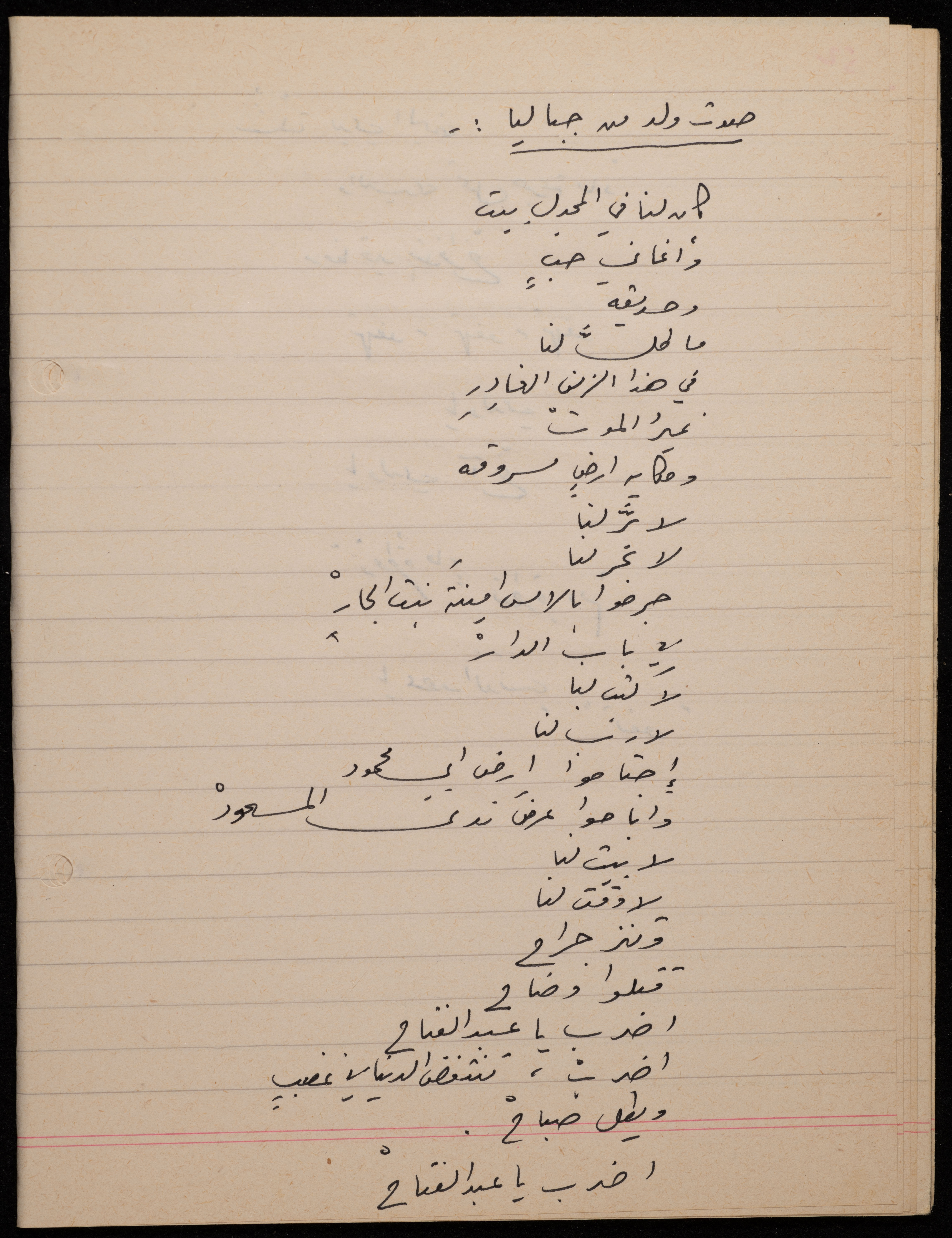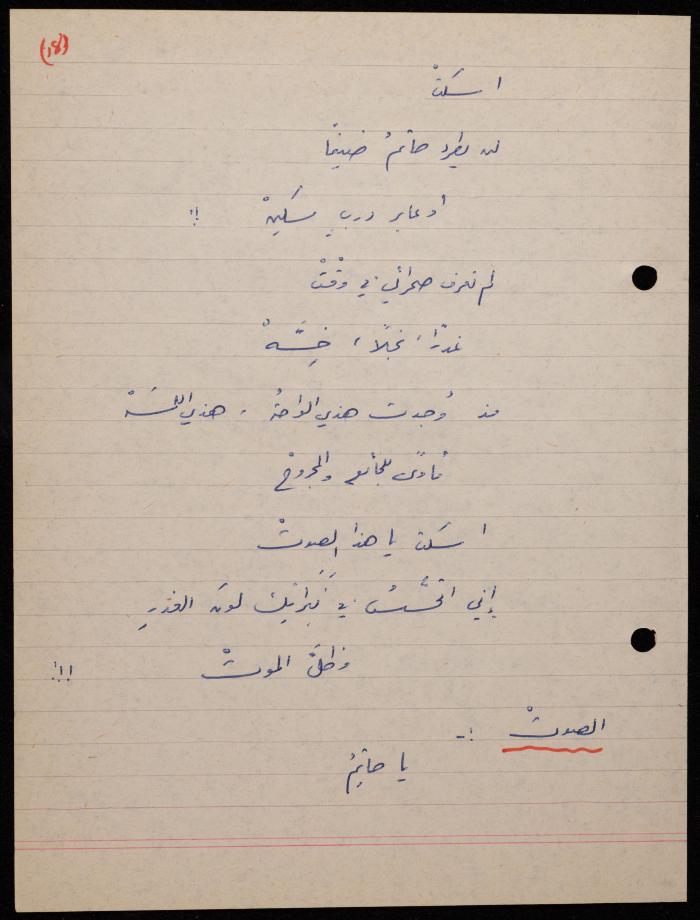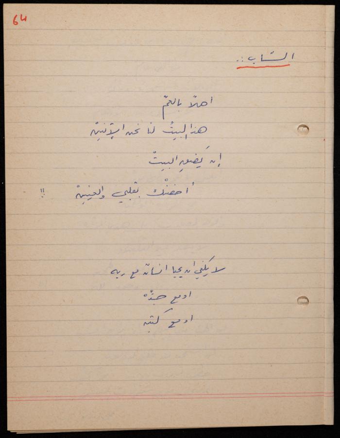 توثق هذه المادة الأرشيفية في 62 صفحة ديوان لشكيب جهشان كتب بخط اليد بعنوان "الجامح" في عام 1977.