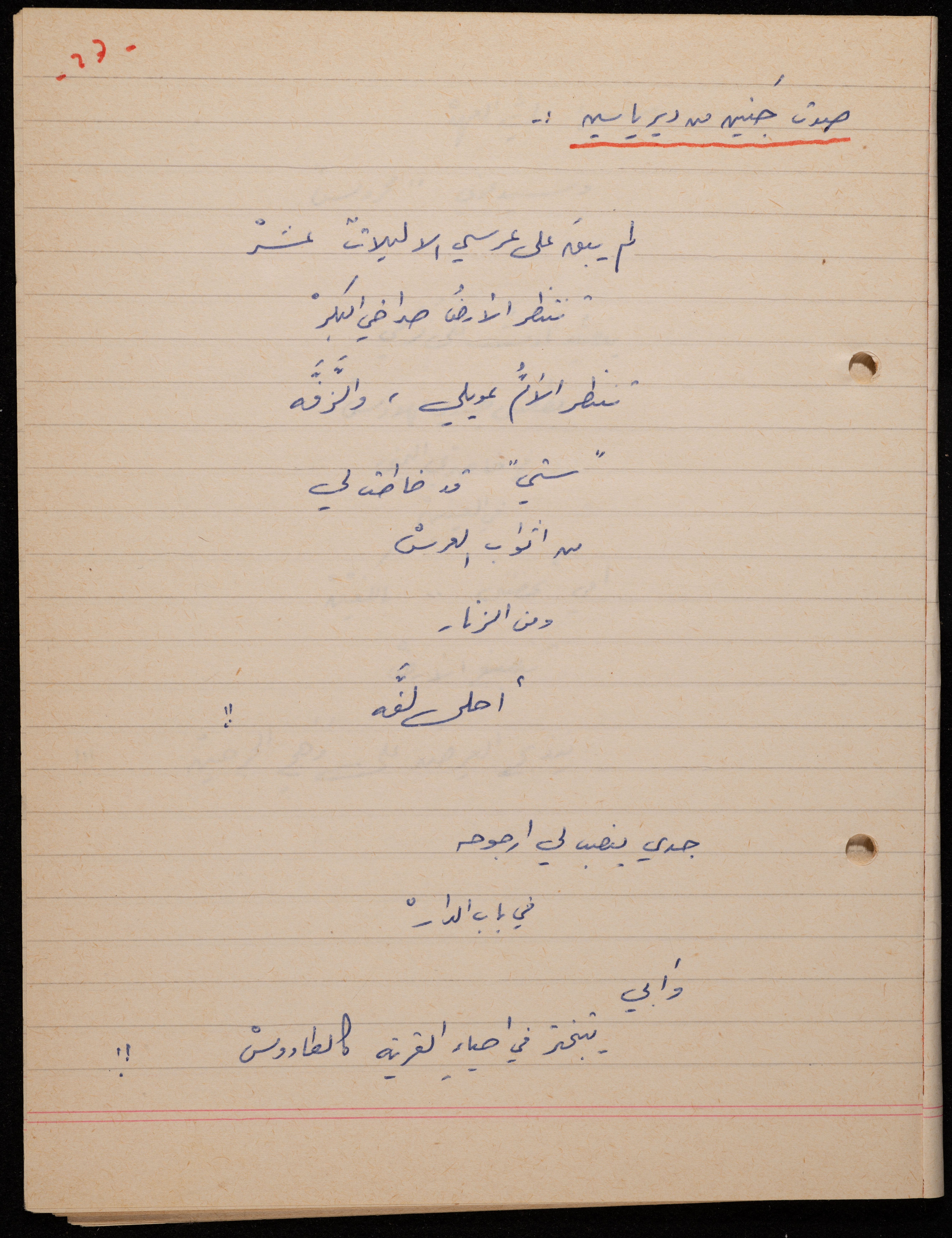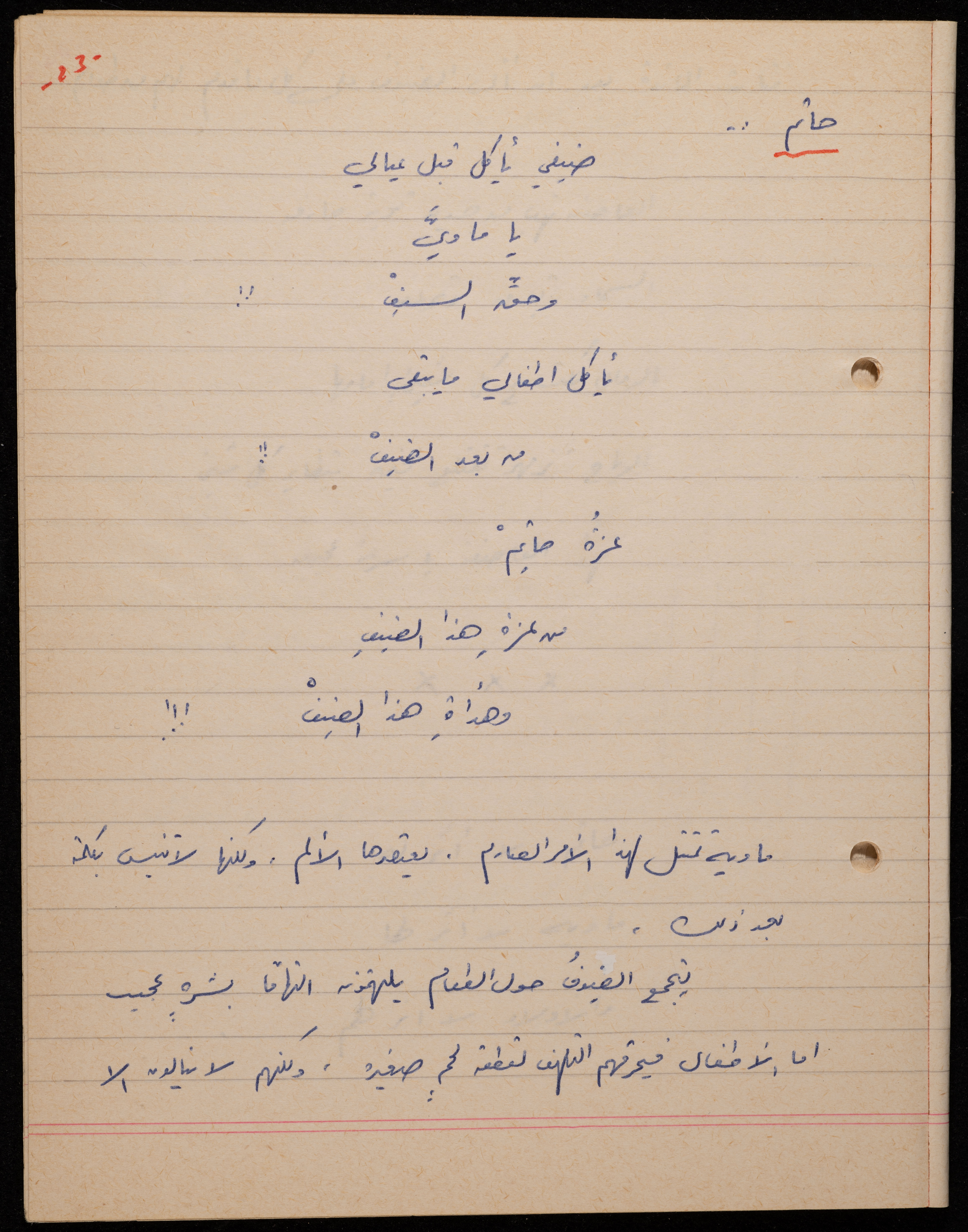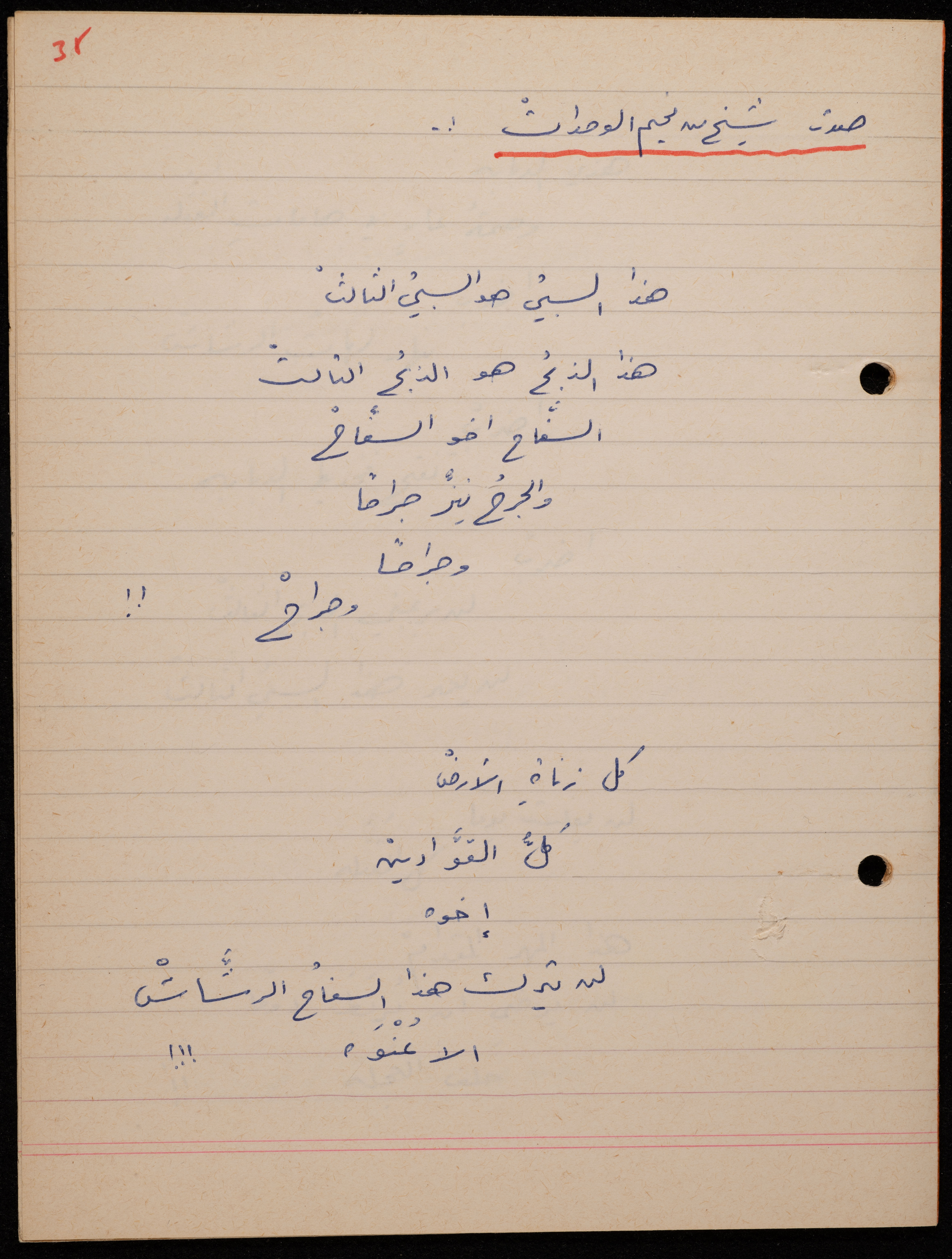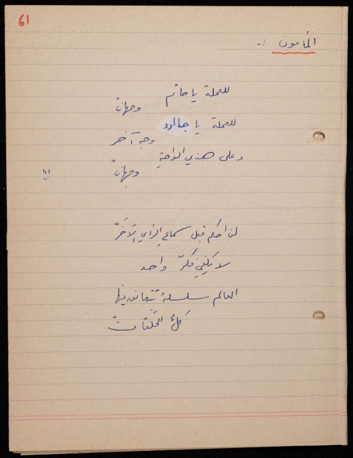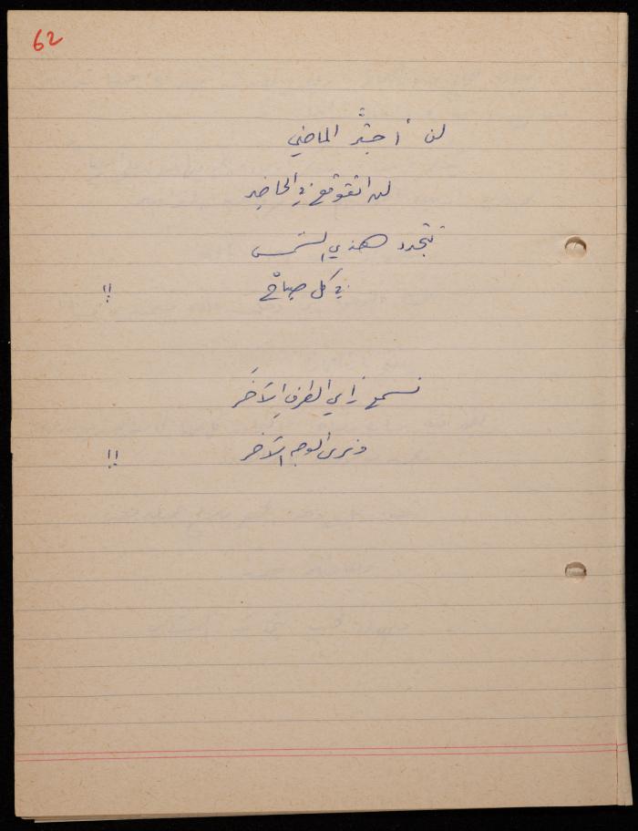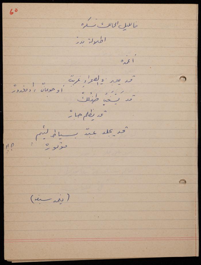توثق هذه المادة الأرشيفية في 62 صفحة ديوان لشكيب جهشان كتب بخط اليد بعنوان "الجامح" في عام 1977.