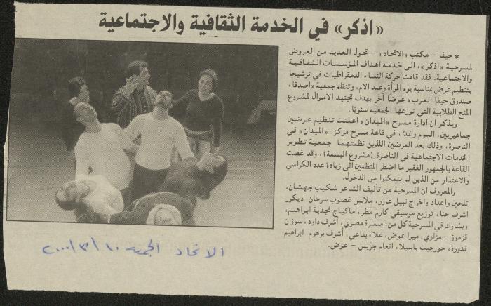 "(أذكر) في الخدمة الثقافية والاجتماعية"، قصاصة من جريدة الاتحاد، 2000