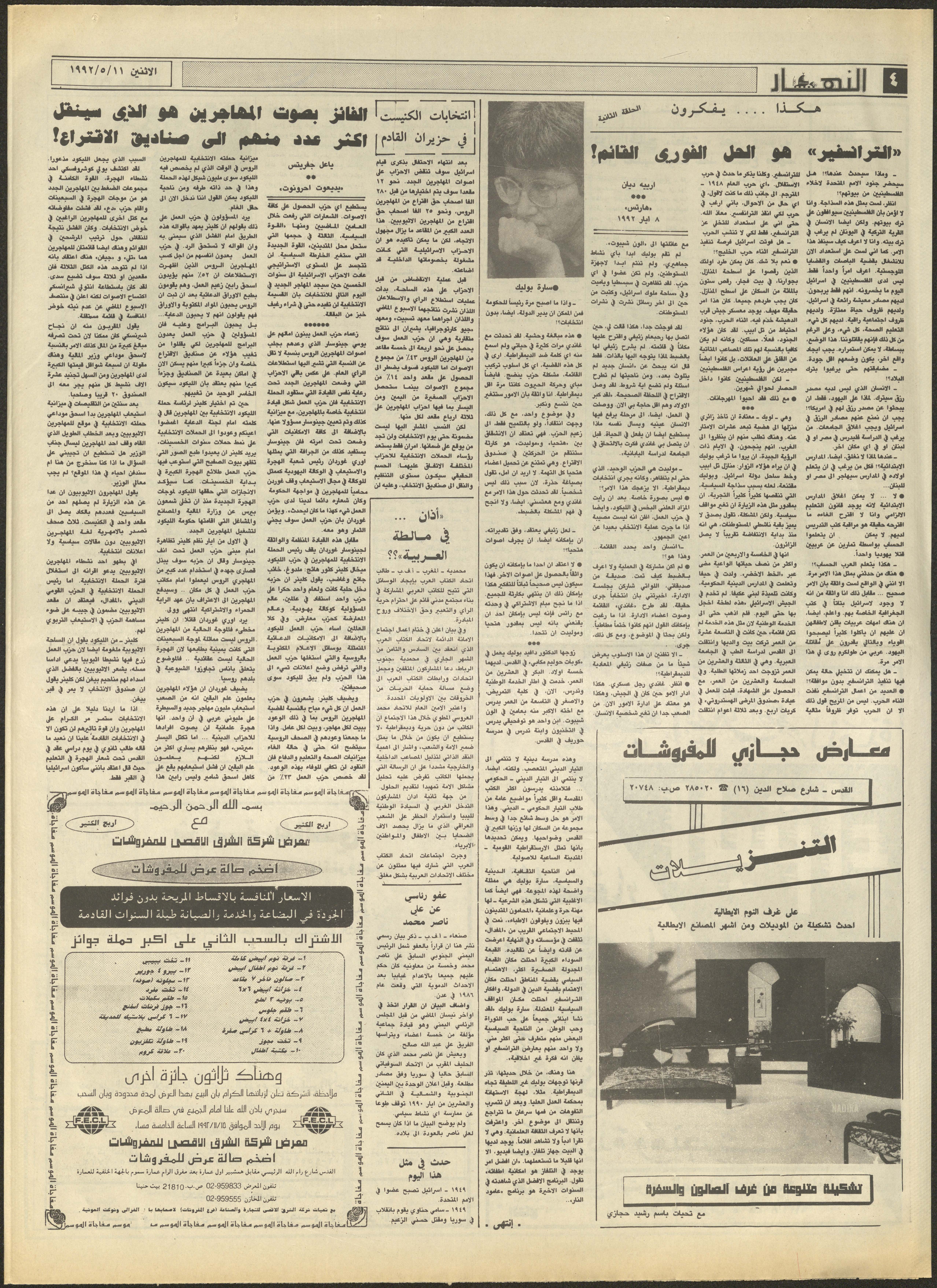 Issue 1866 of al-Nahar Newspaper, 11 May 1992