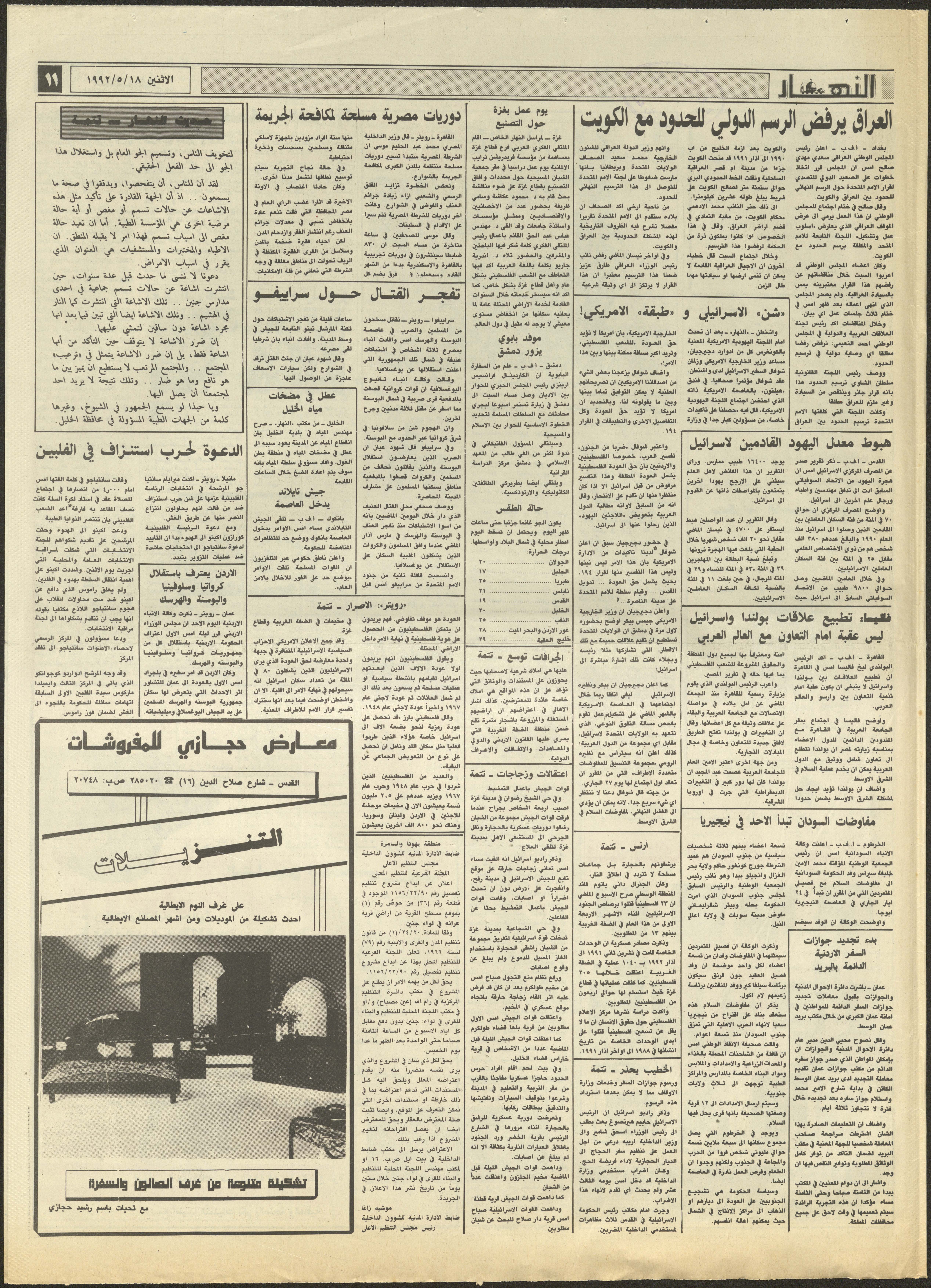 العدد 1873 من جريدة النهار، 18 أيار 1992