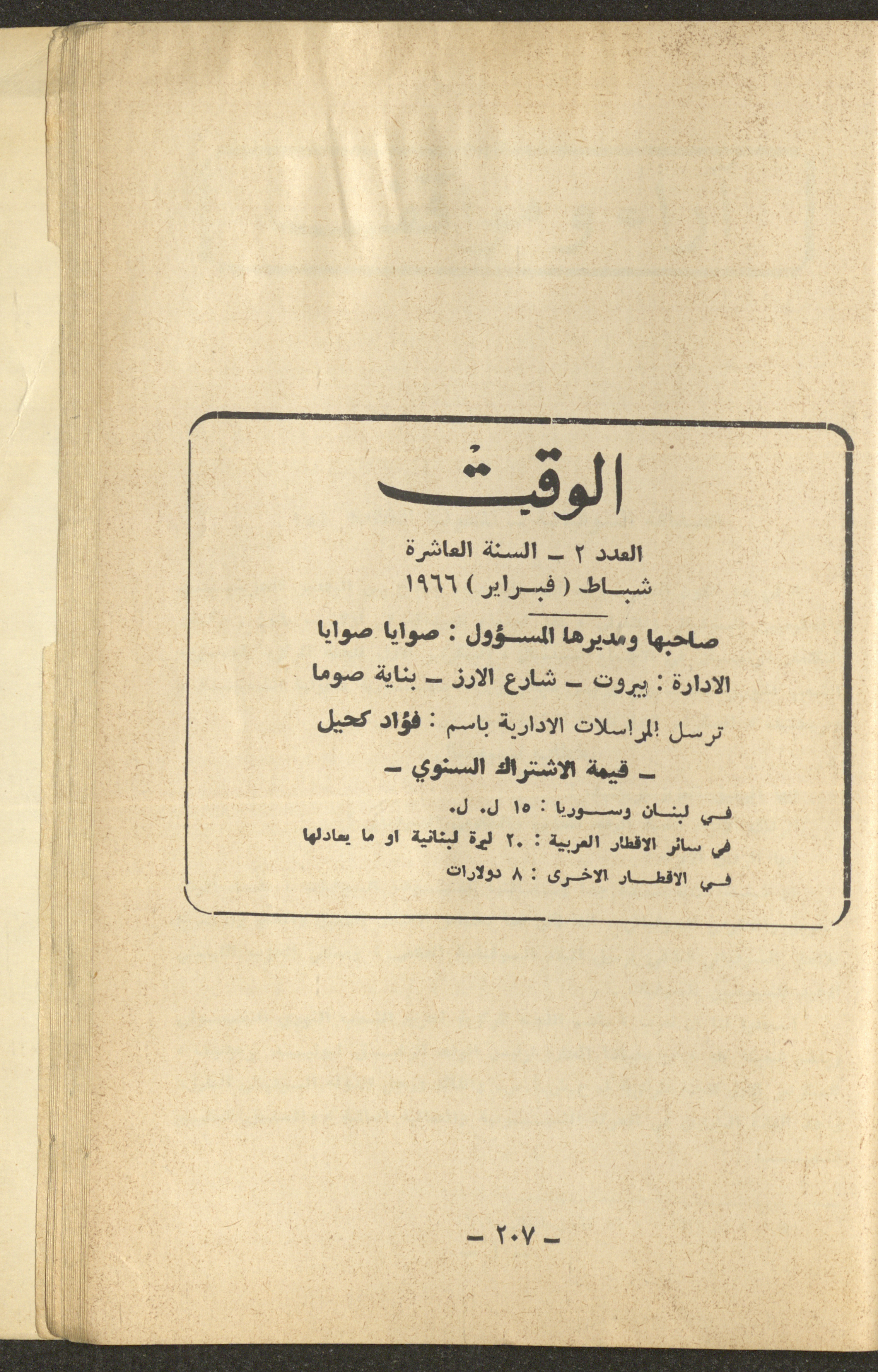 2nd Issue of al-Waqt Magazine, Beirut, February 1966