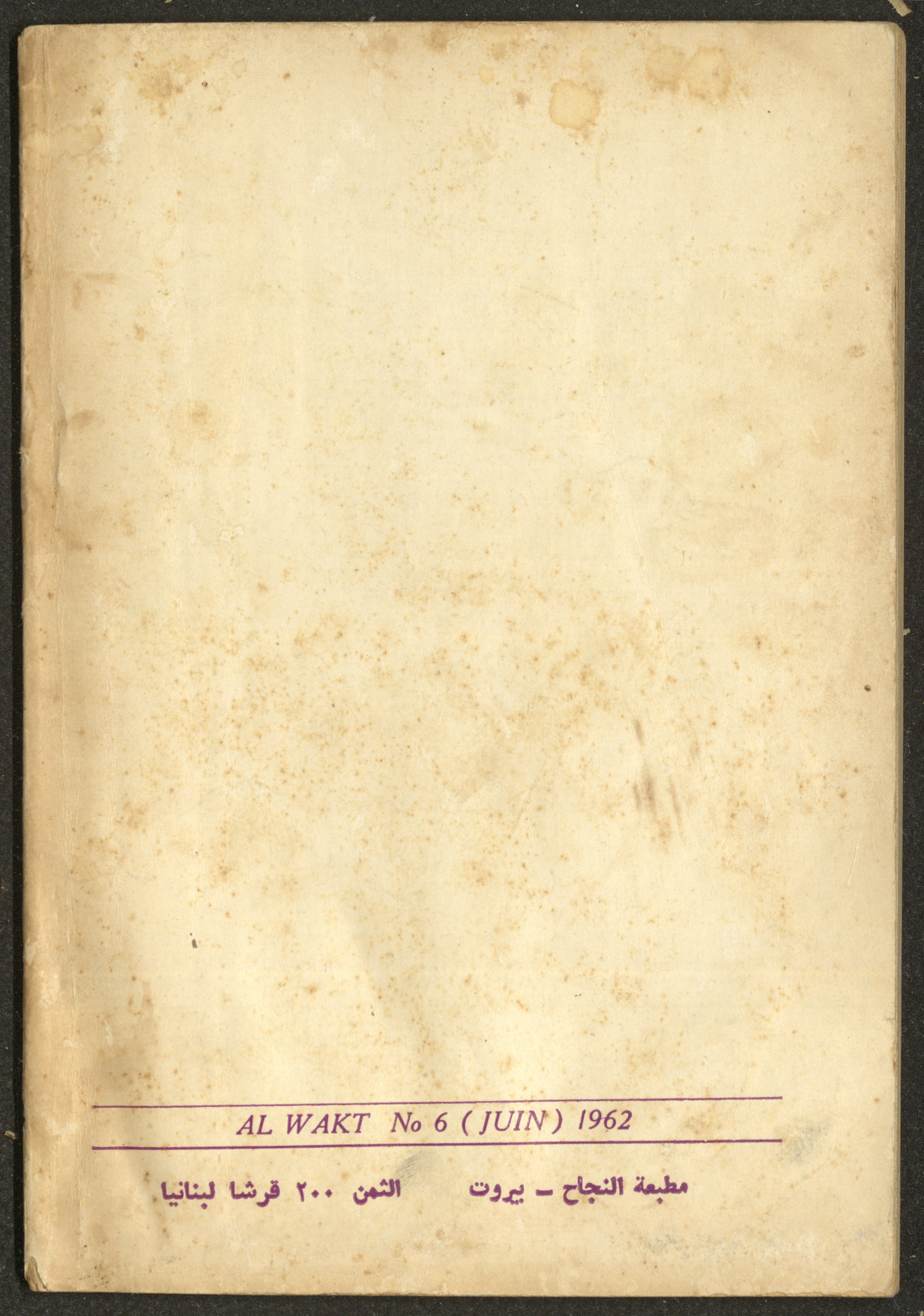 6th Issue of al-Waqt Magazine, Beirut, June 1962