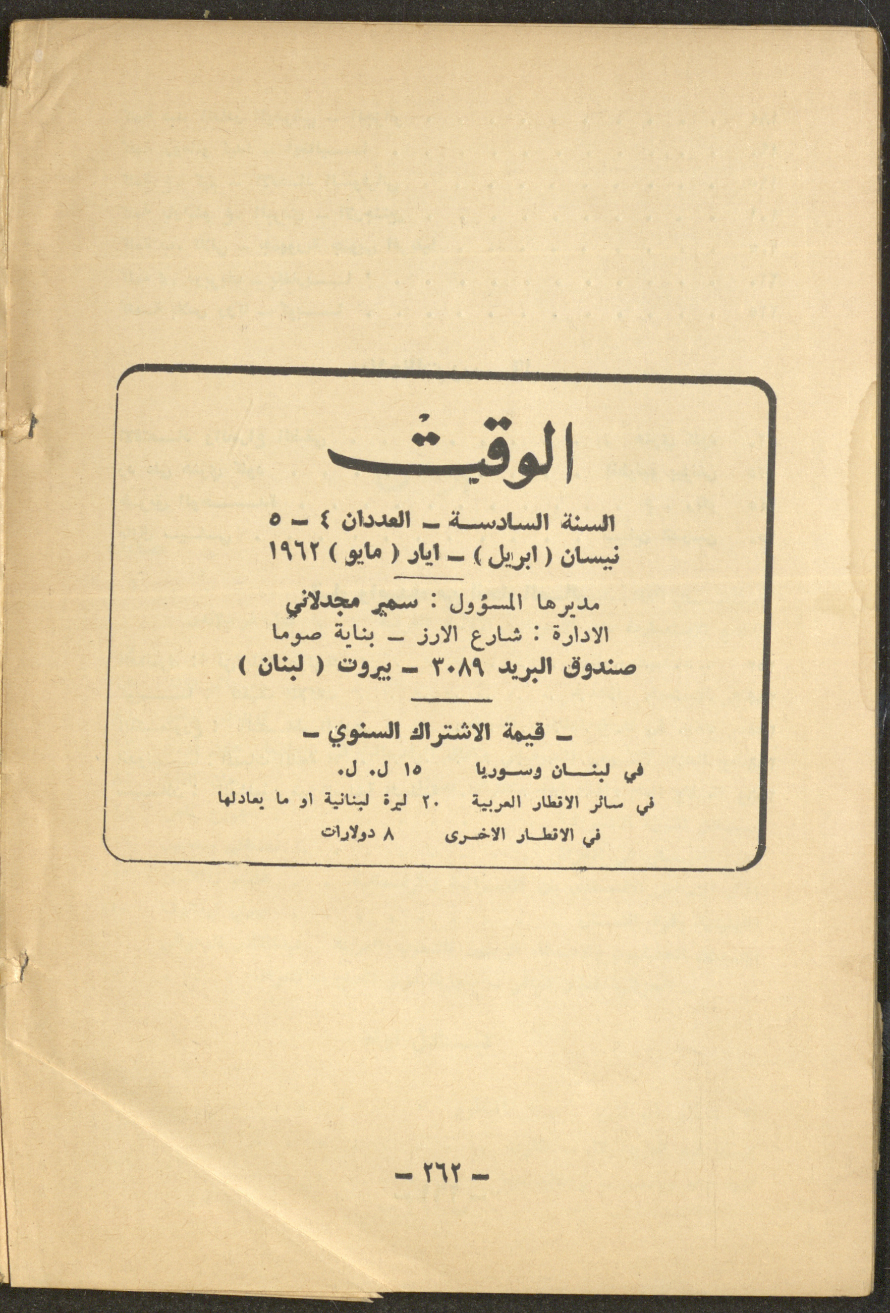 4th and 5th Issues of al-Waqt Magazine, Beirut, April and May 1962