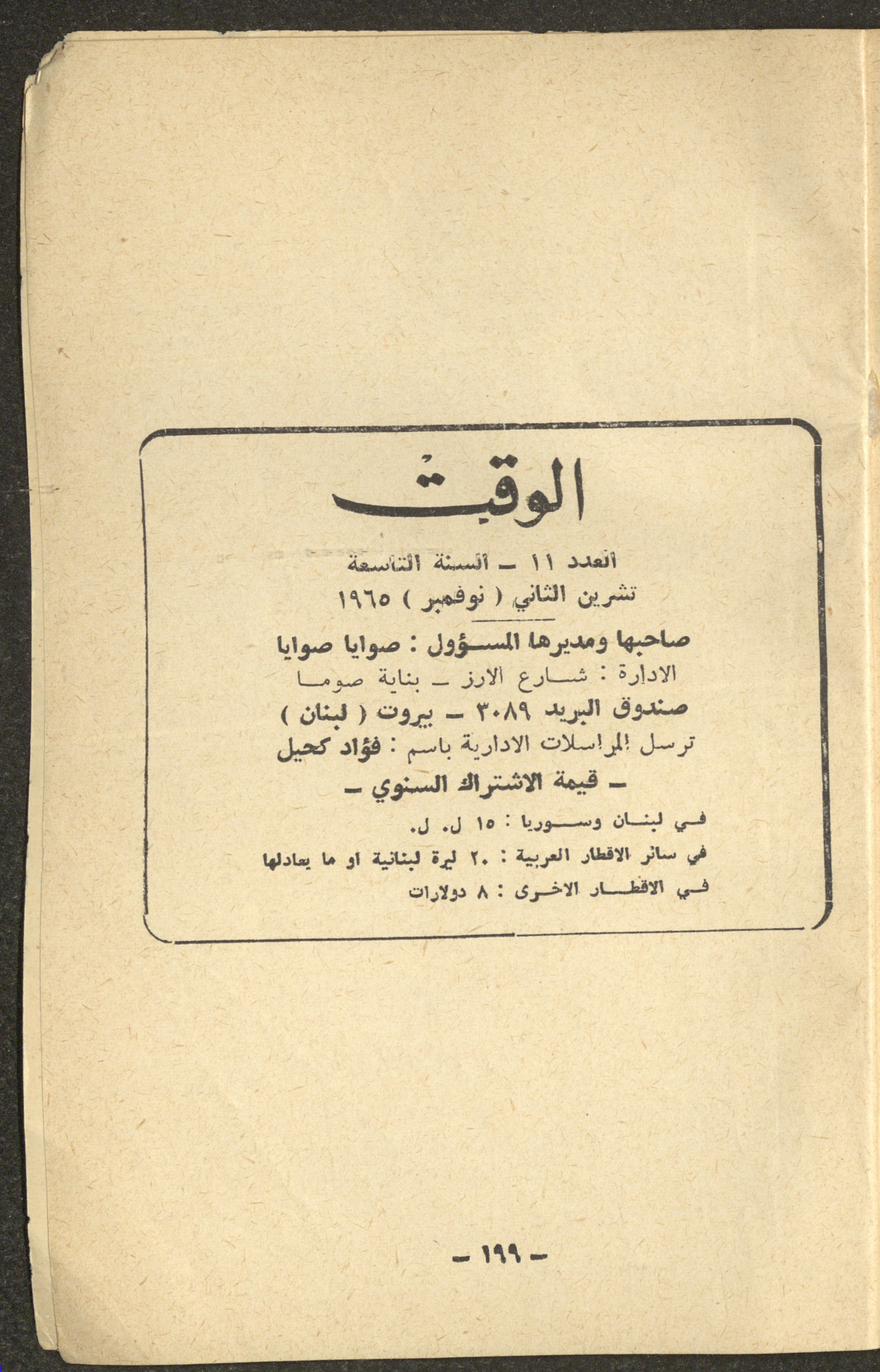 11th Issue of al-Waqt Magazine, Beirut, November 1965