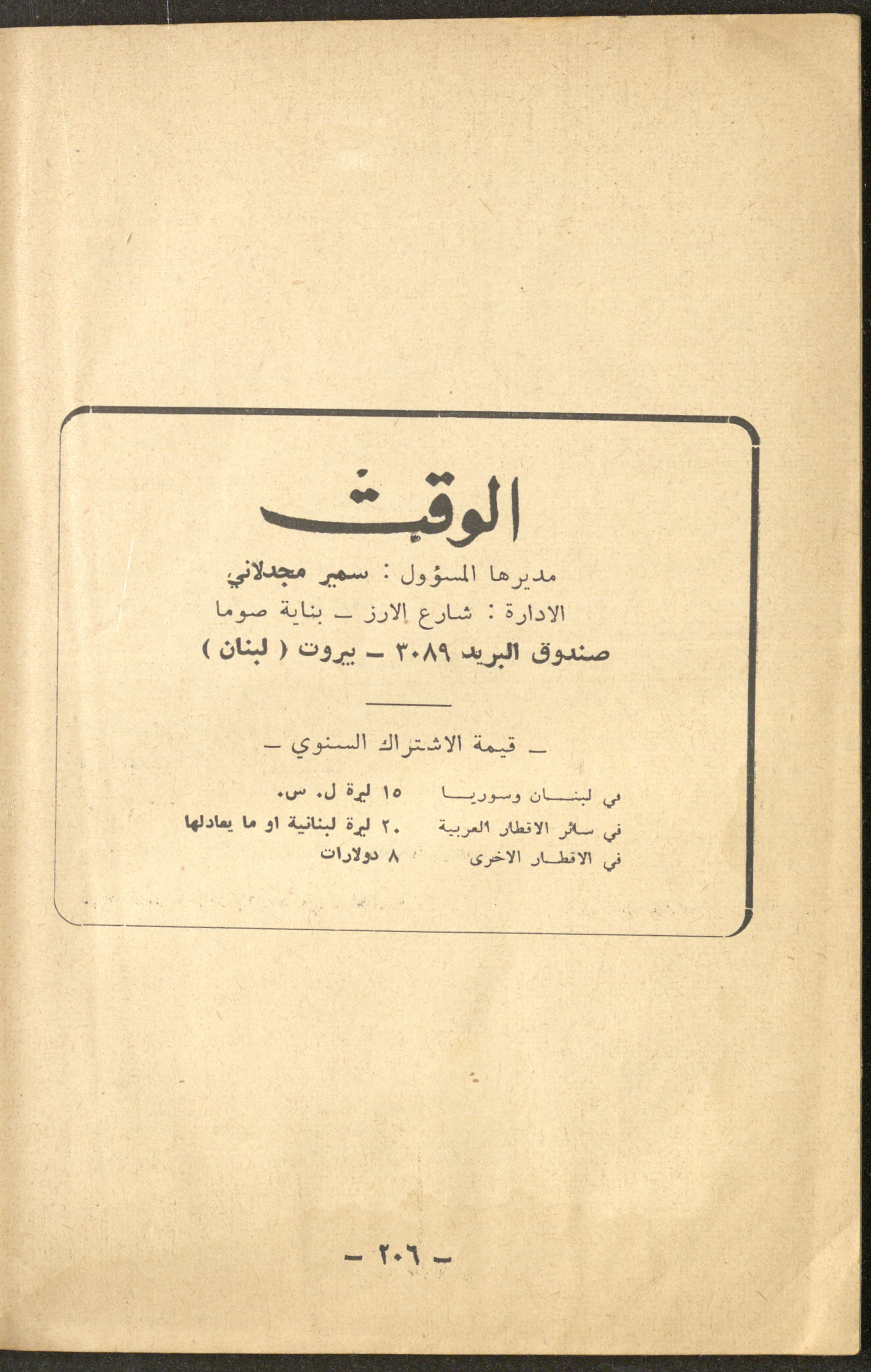 4th Issue of al-Waqt Magazine, Beirut, April 1960