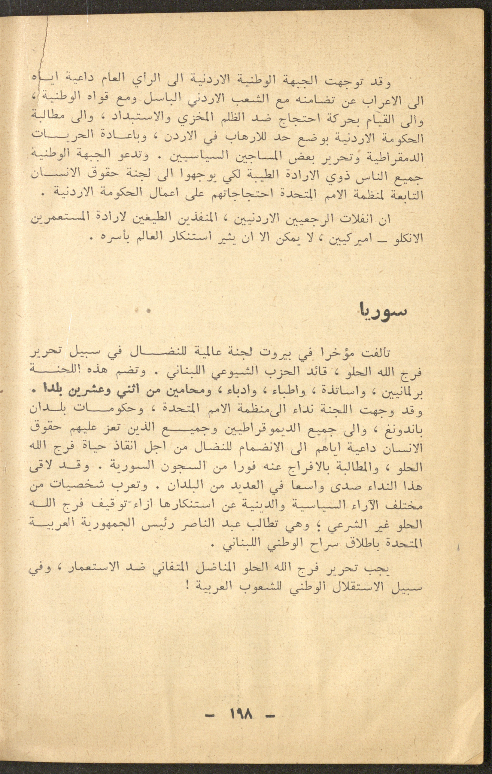 Issued in April 1960, this document shows a section of the 4th issue of al-Waqt Magazine, which is a monthly literary and political magazine published in Beirut. It included news and articles about the communist movement in the world.