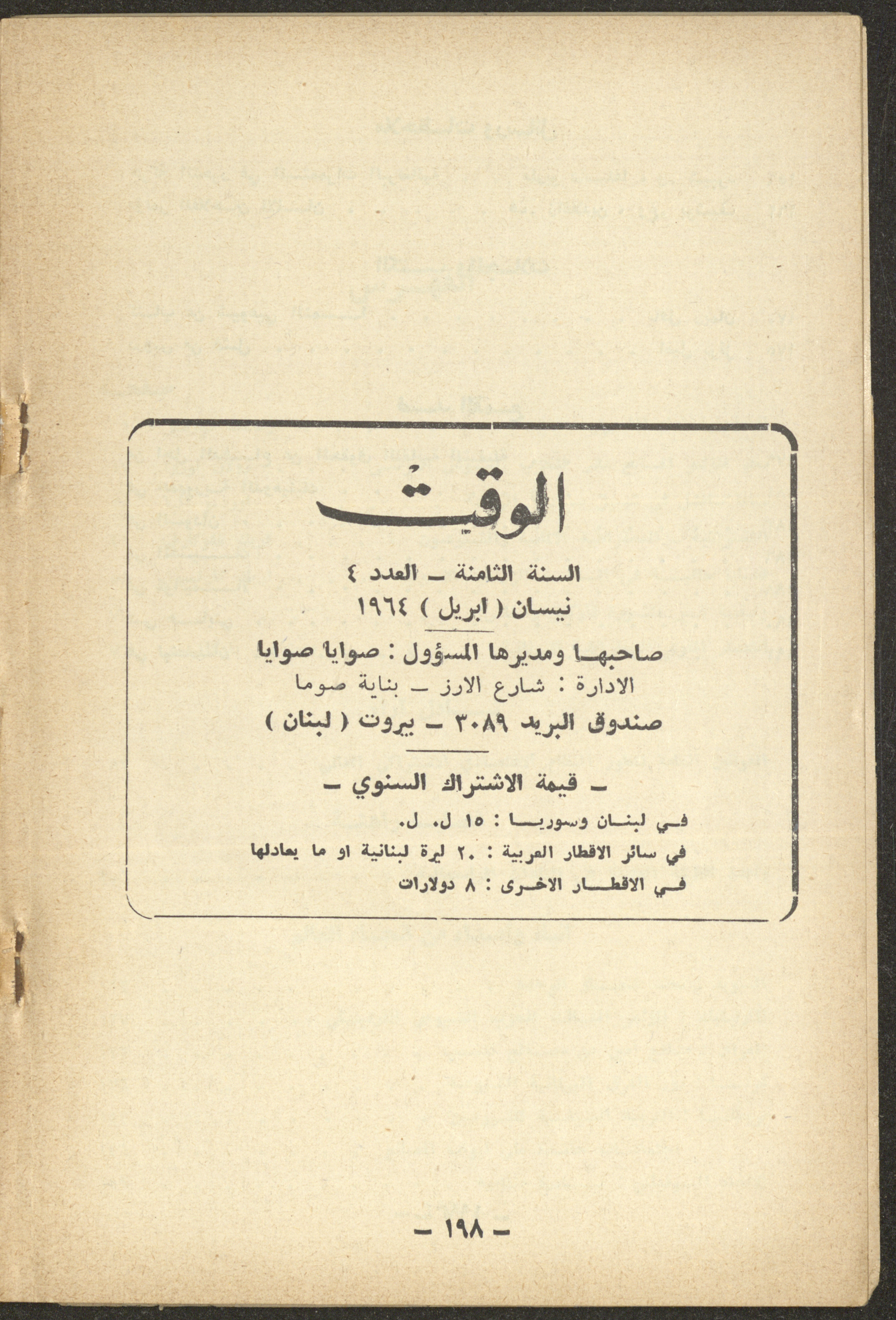 4th Issue of al-Waqt Magazine, Beirut, April 1964