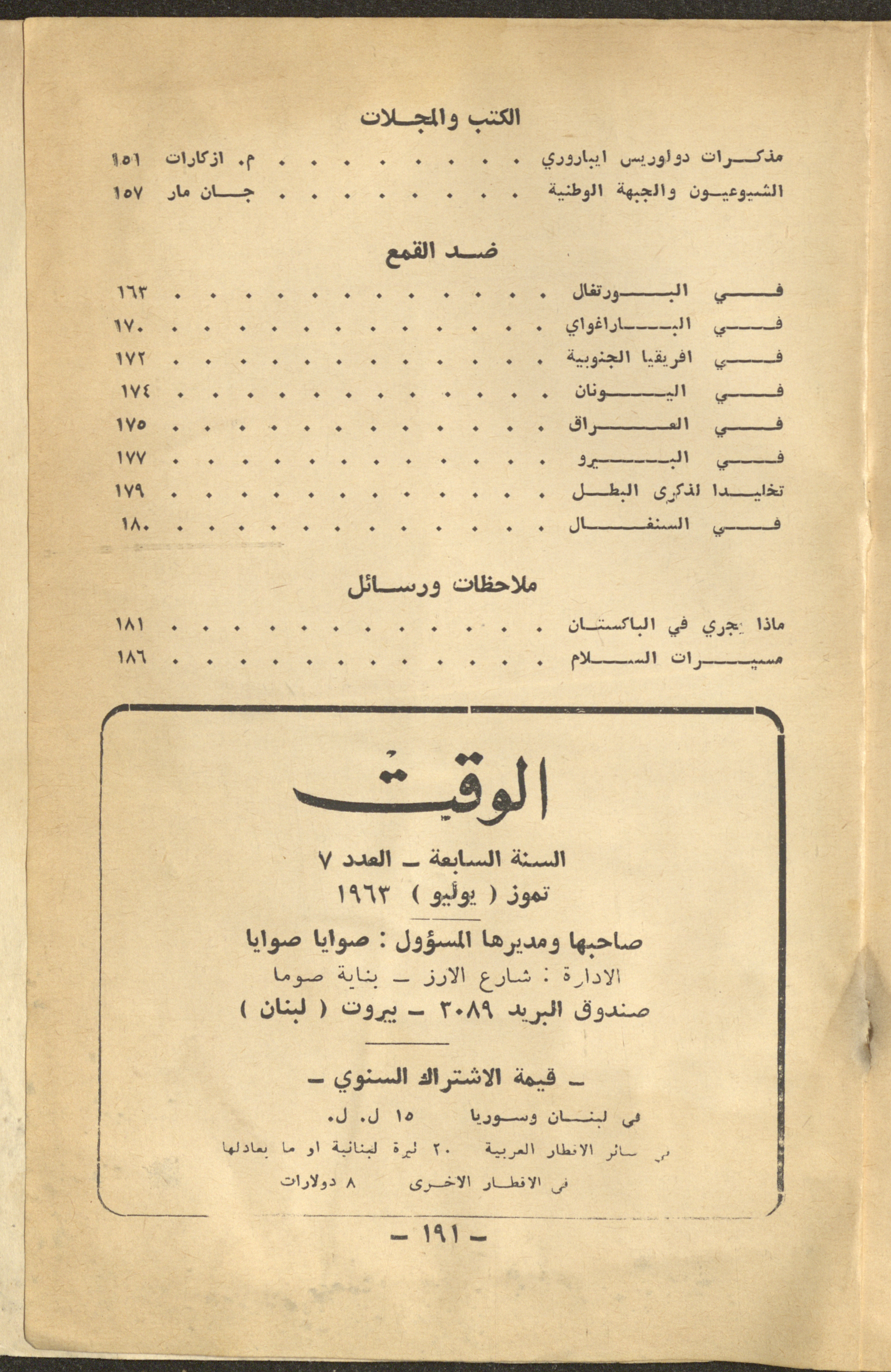 7th Issue of al-Waqt Magazine, Beirut, July 1963