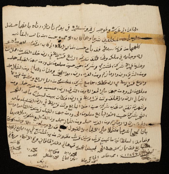 "Land" Sale Deed from Hasan al-Baqqaneyyeh to Kayed al-Kayed, Sebastia, January 1880