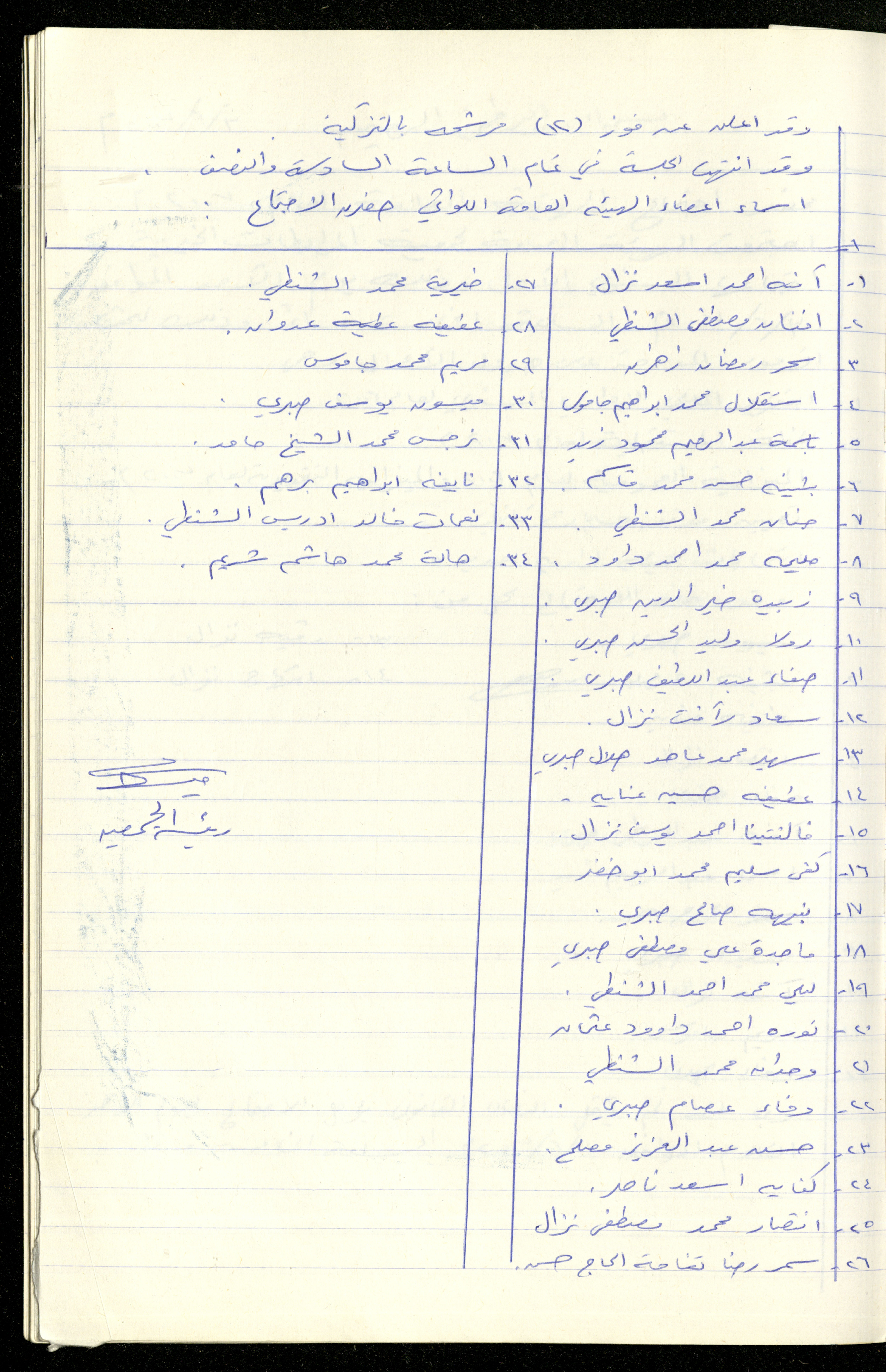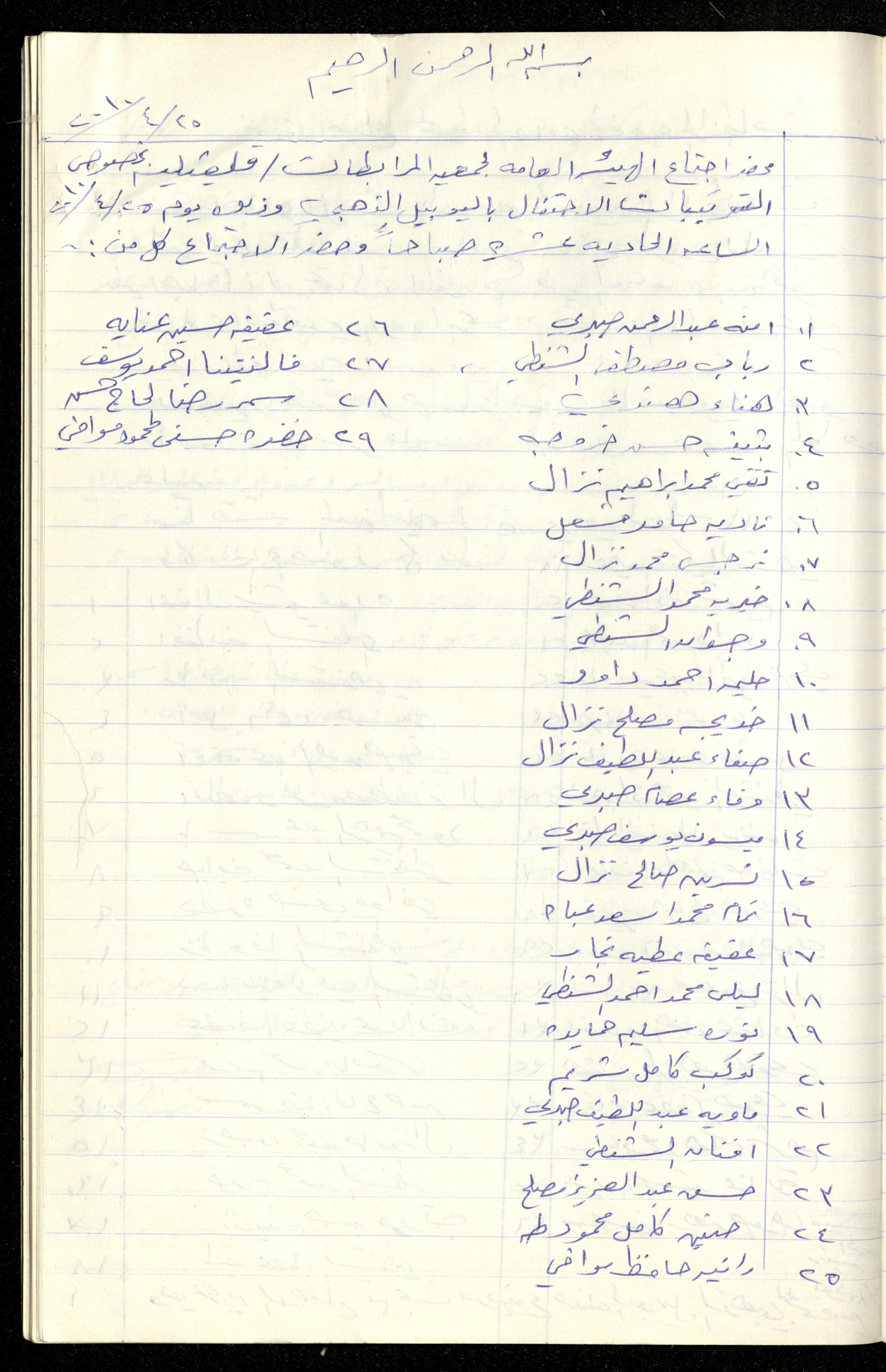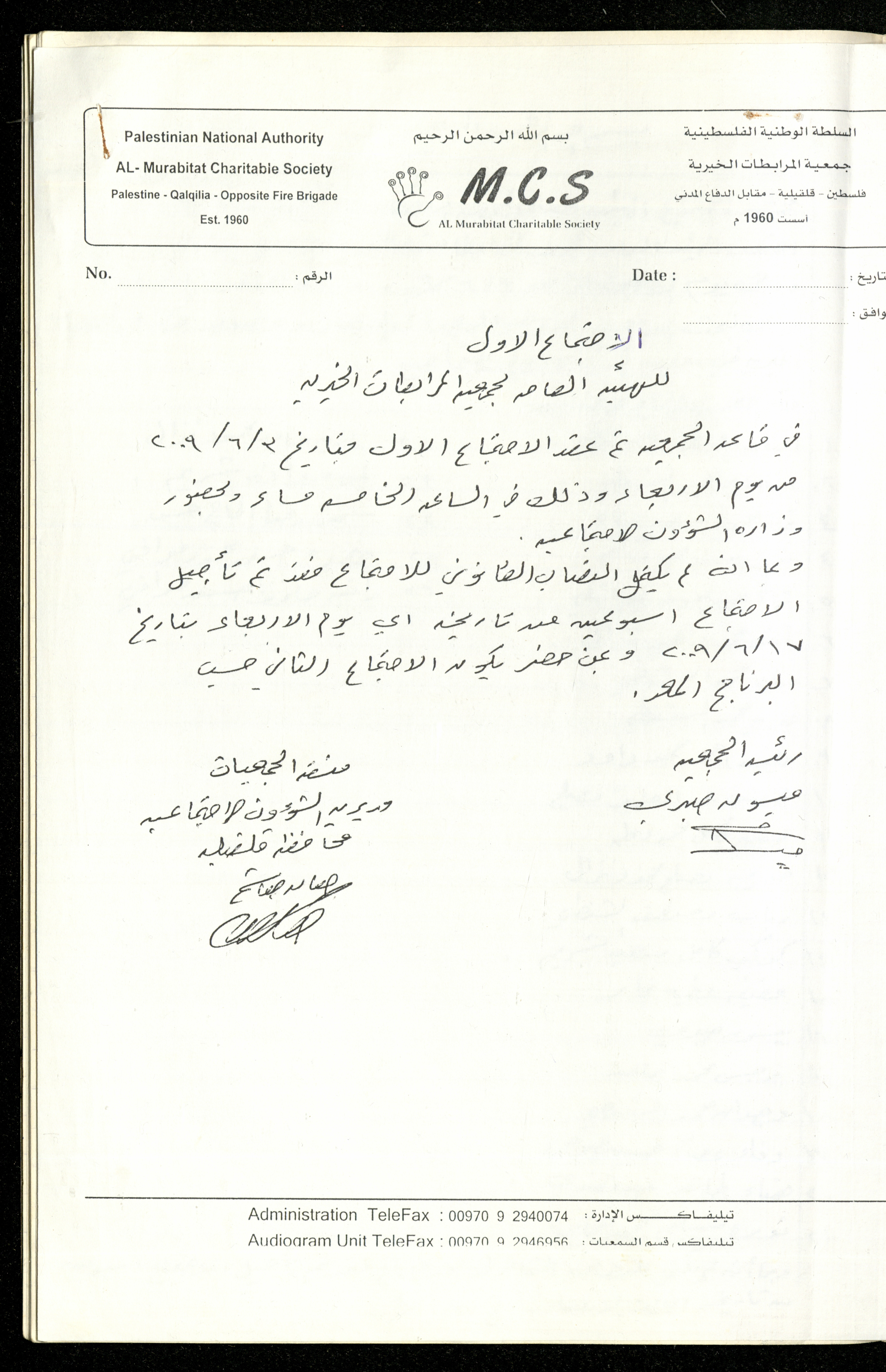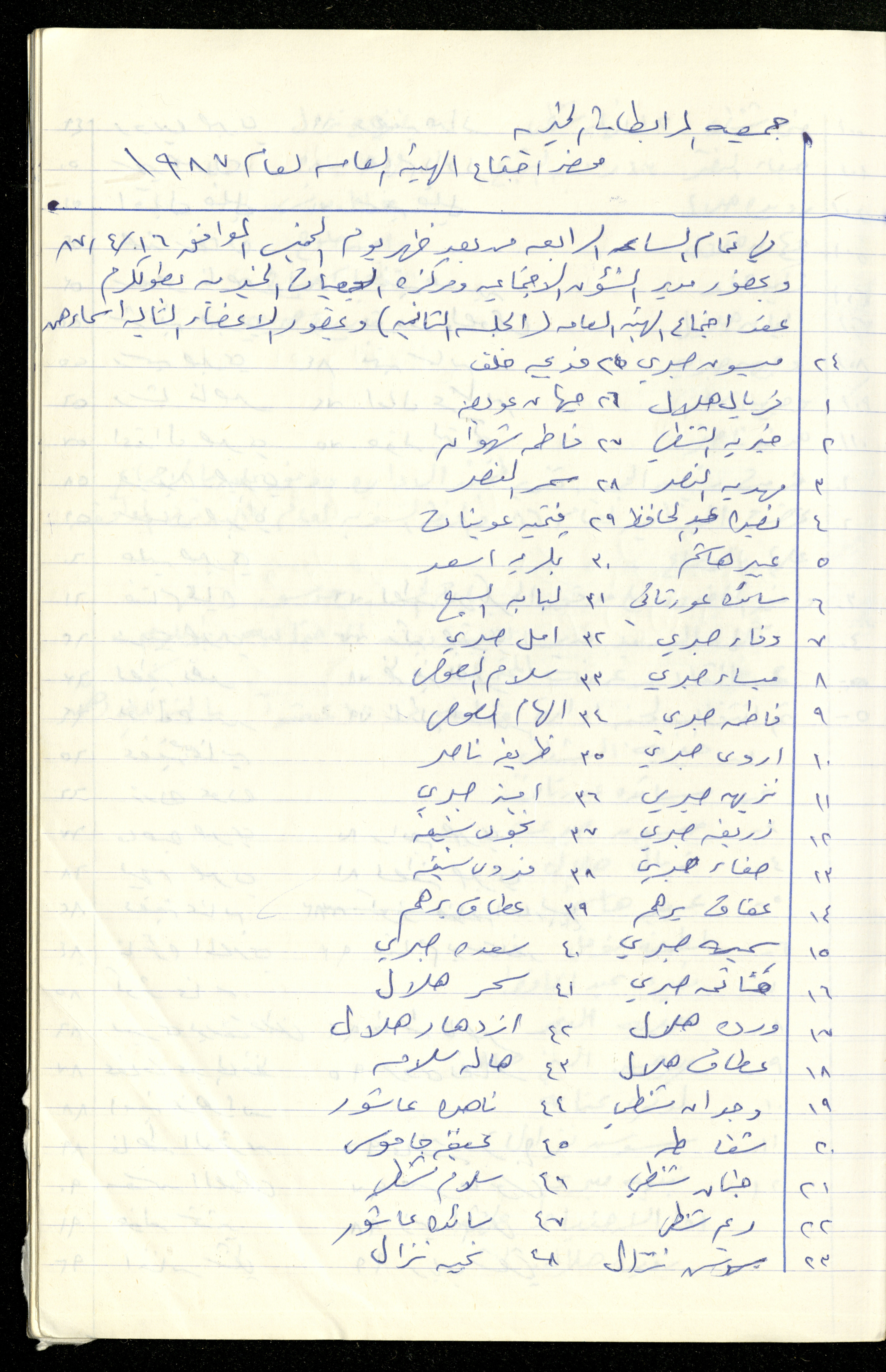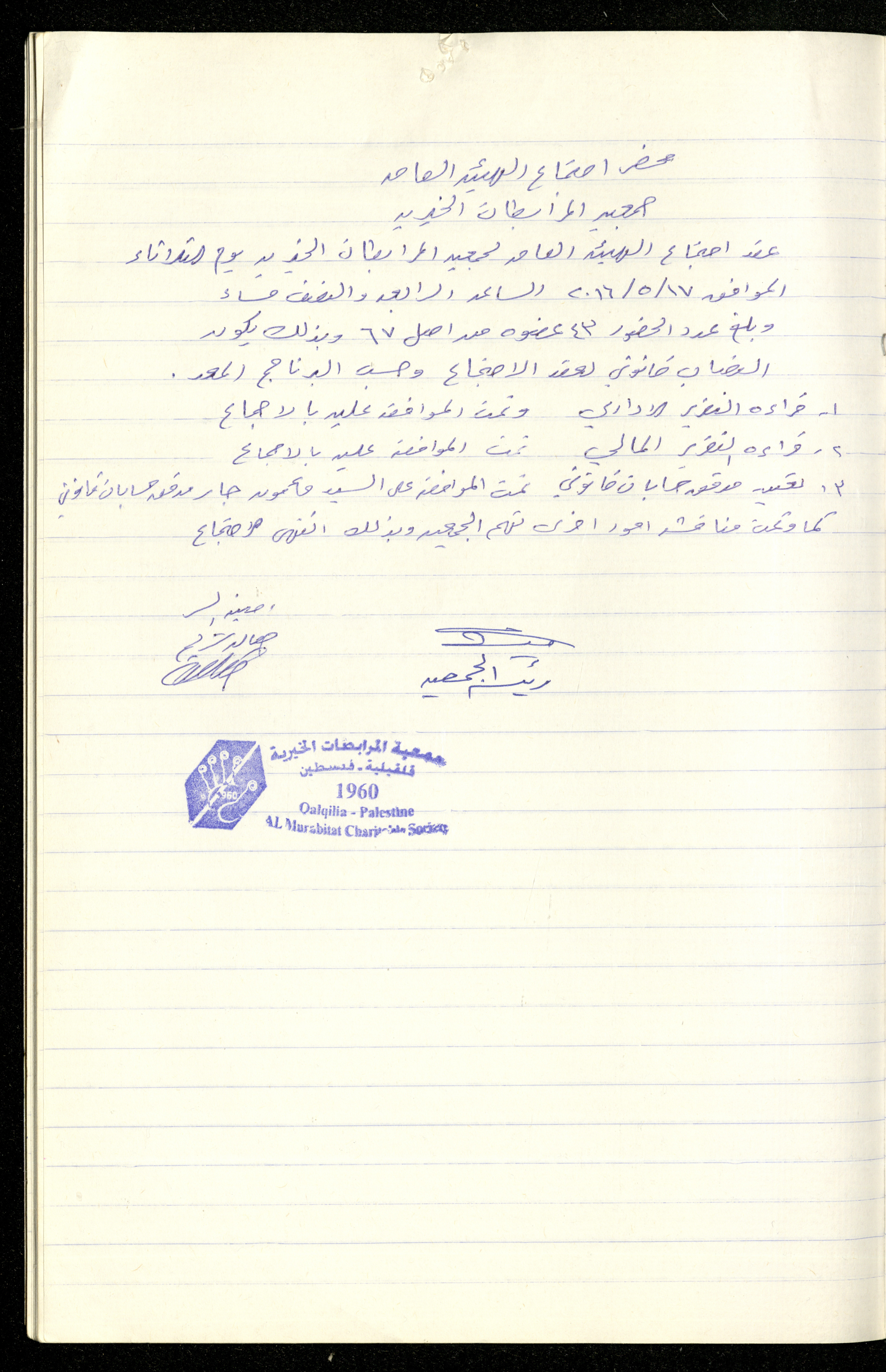 A Record of the Meetings of al-Murabitat Charitable Society General Assembly, Qalqilya, 1981-2016