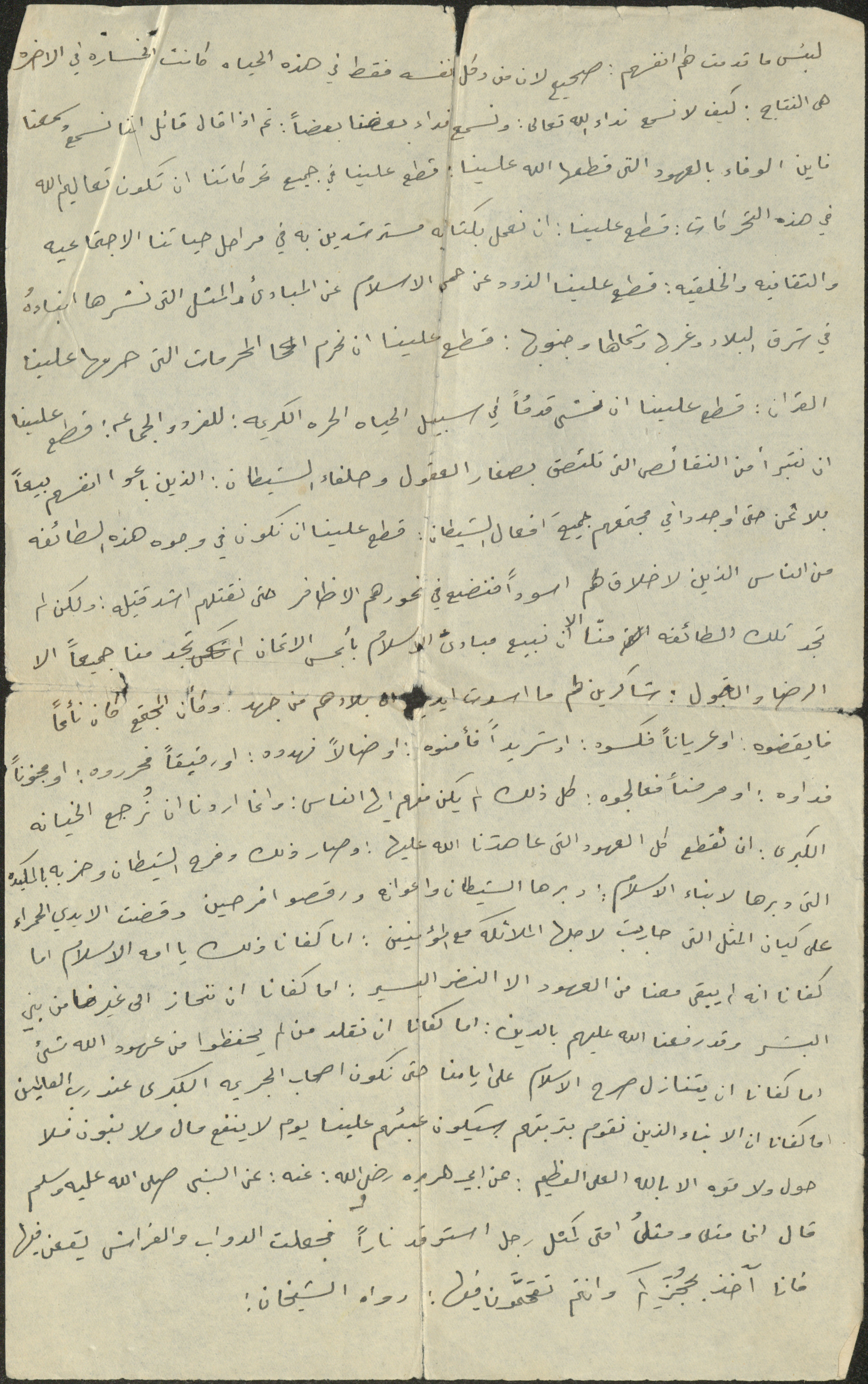 نص خطبة صلاة جمعة للشيخ سعادة حسن ذيب المراشدة، إمام وخطيب مسجد في قرية عقربا ما بين عامي 1962 و2002، تحدث فيها عن وجوب الوفاء بكافة العهود والعقود.
