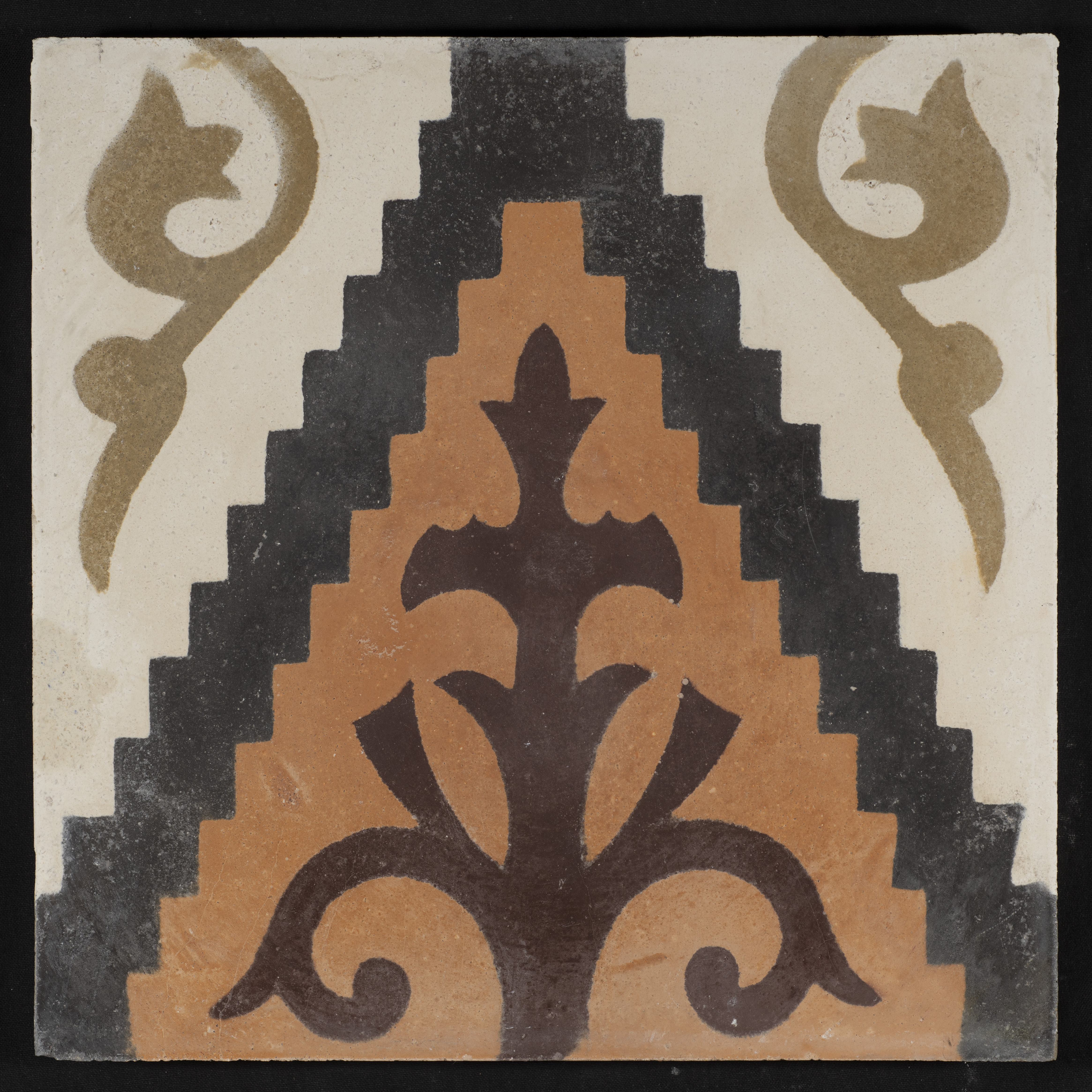 A Coloured Cement Tile and the Mold Used to Manufacture It, "Sham Carpet", 1890s