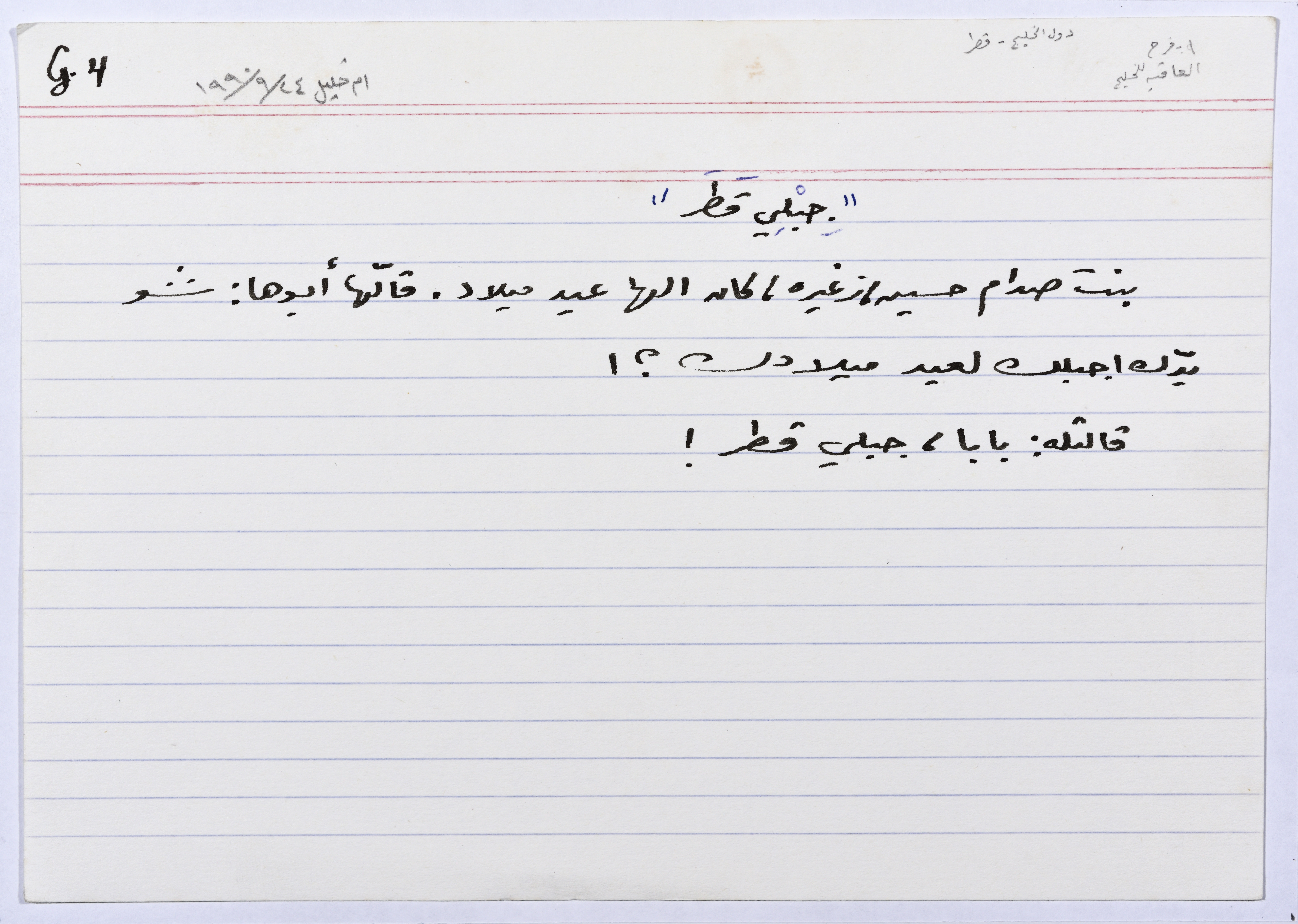 بطاقة وُثِّق عليها نكتة بعنوان "جِبْلي قَطَر"