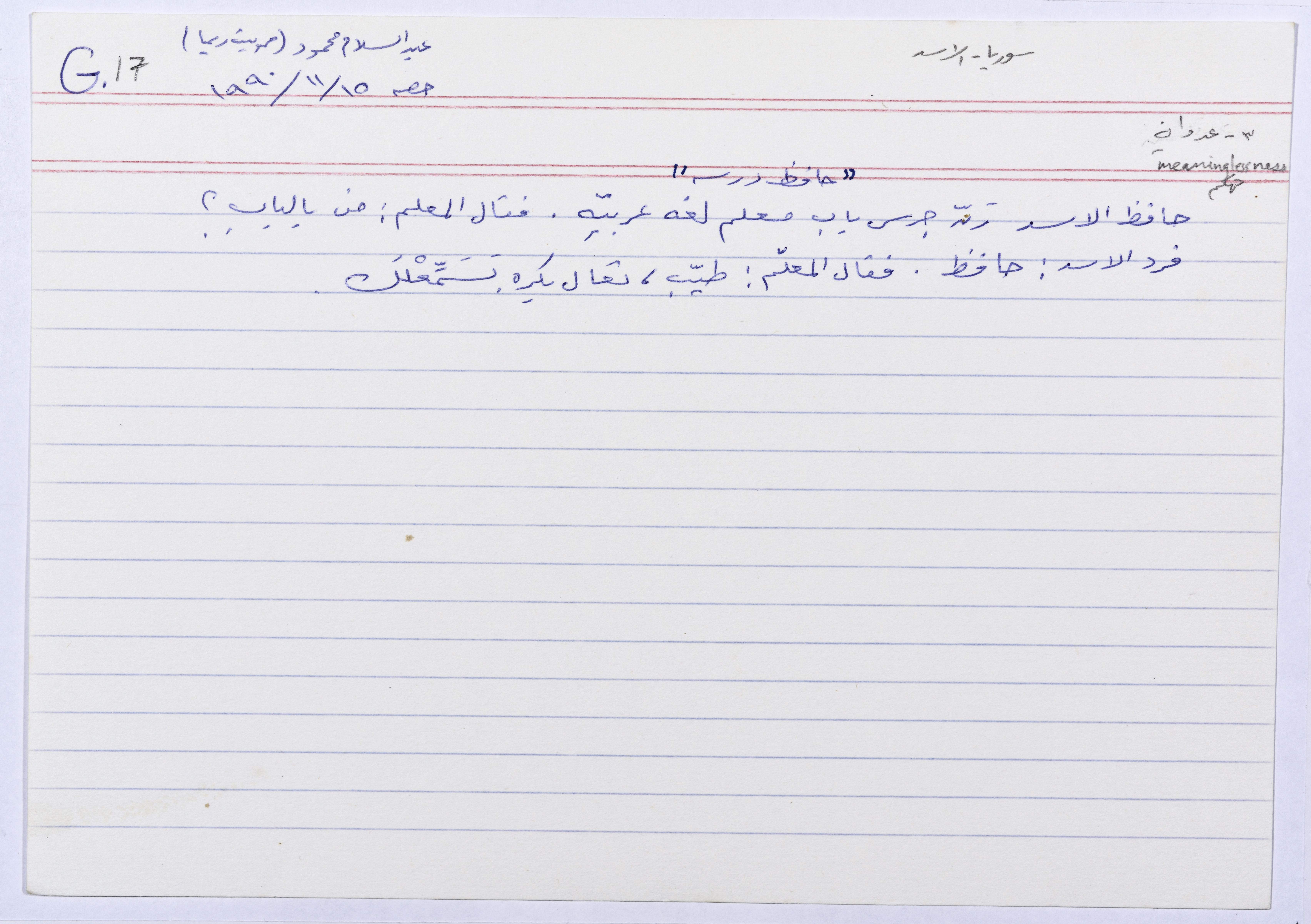 These jokes and stories were collected and recorded by Sharif Kanaana, from the late 1980s until 2005. Each card includes the name of the narrator, the place of residence and the date.