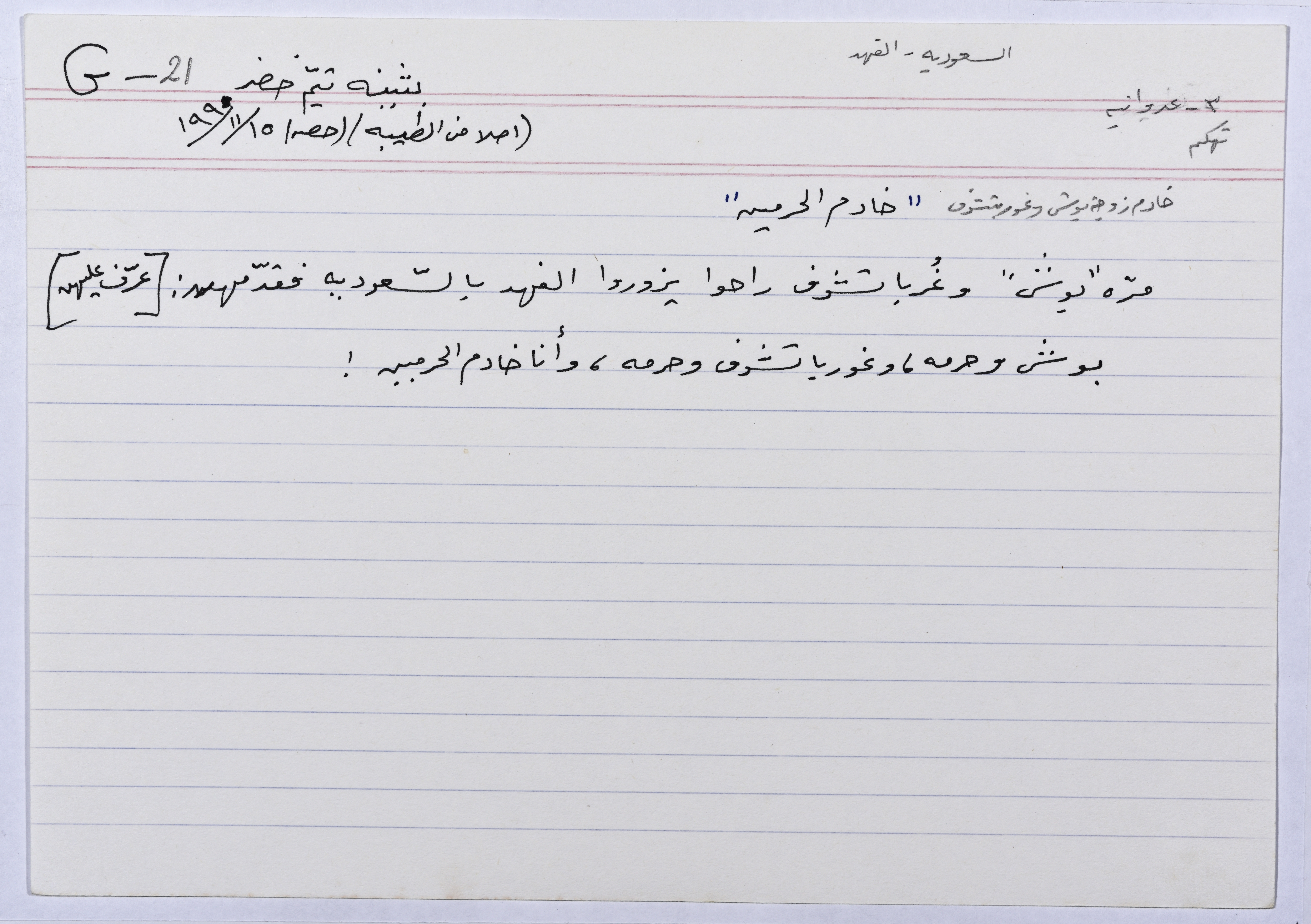 بطاقة وُثِّق عليها نكتة بعنوان "خادم الحرمين"