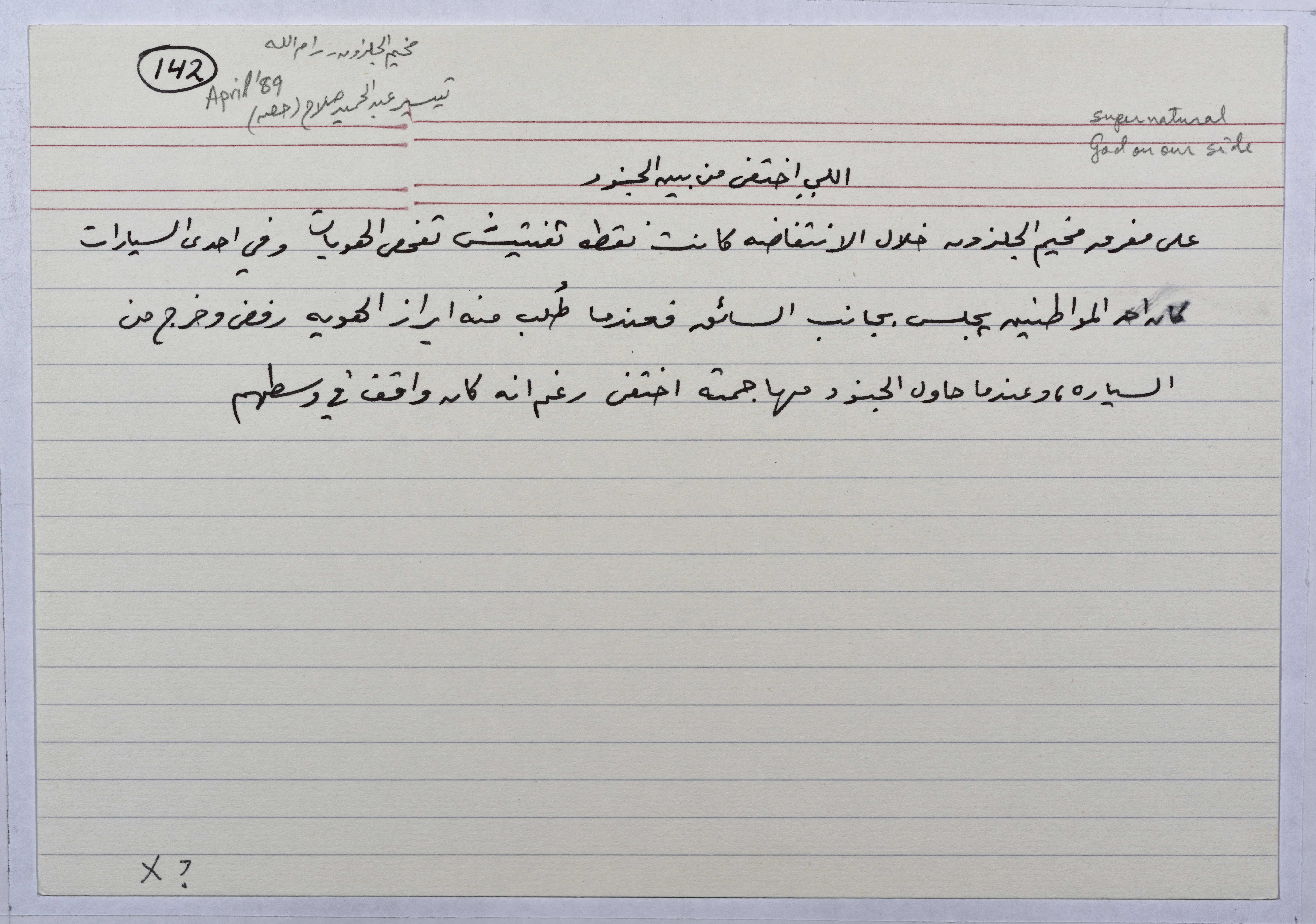 بطاقة وُثِّق عليها حكاية بعنوان "الذي اختفى من بين الجنود"
