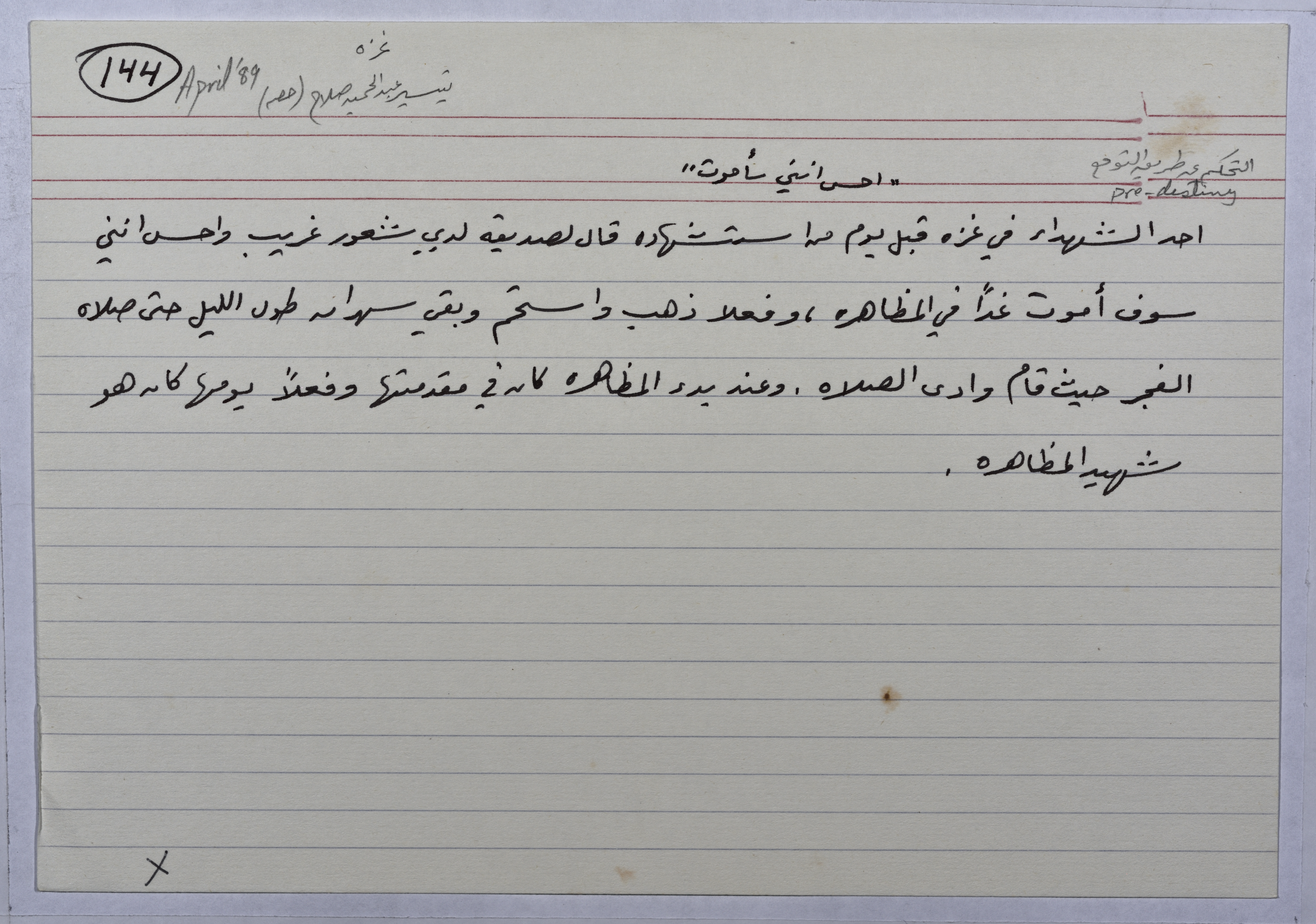 بطاقة وُثِّق عليها حكاية بعنوان "أحس بأنني سأموت"