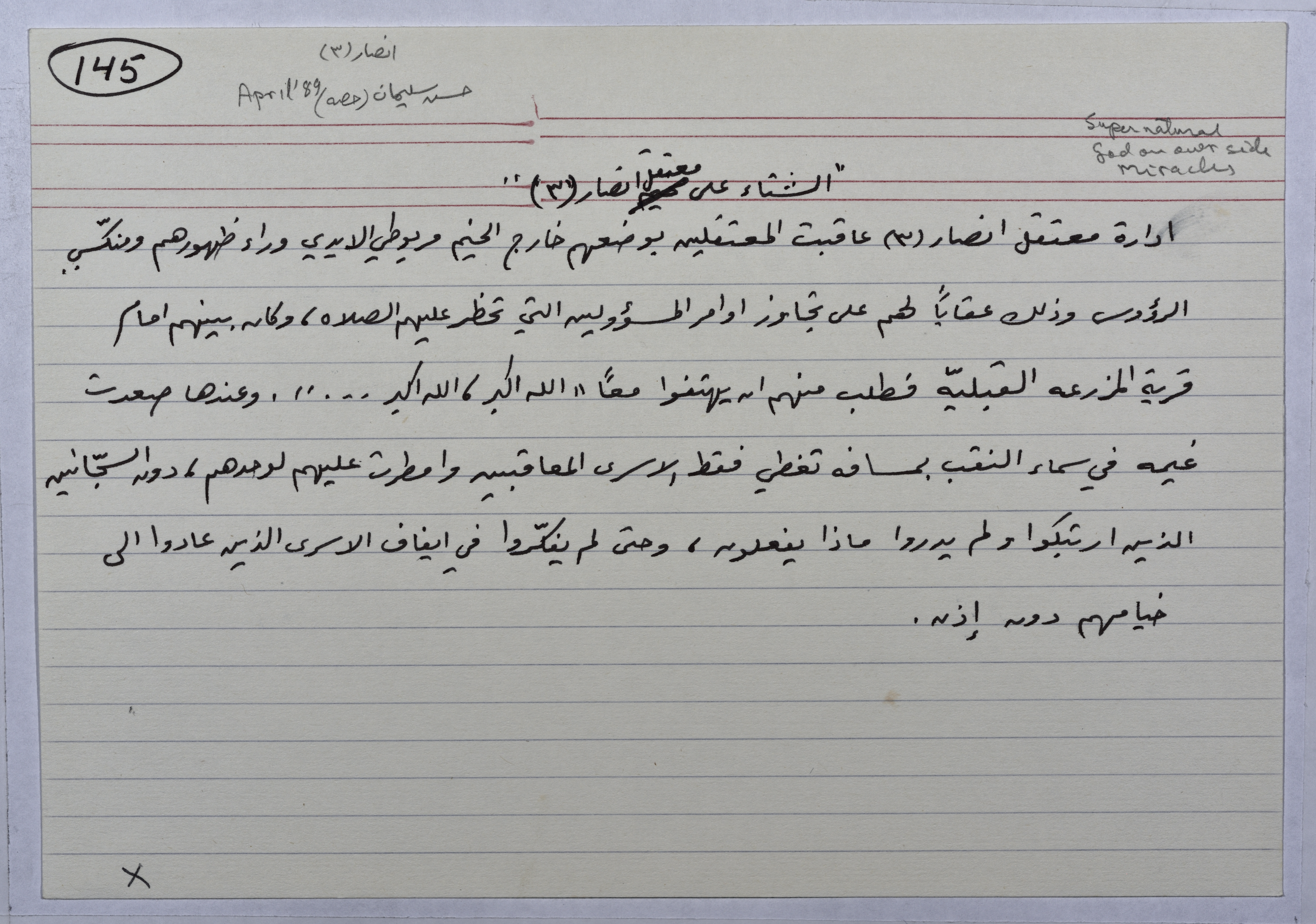 بطاقة وُثِّق عليها حكاية بعنوان "الشتاء على معتقل أنصار"
