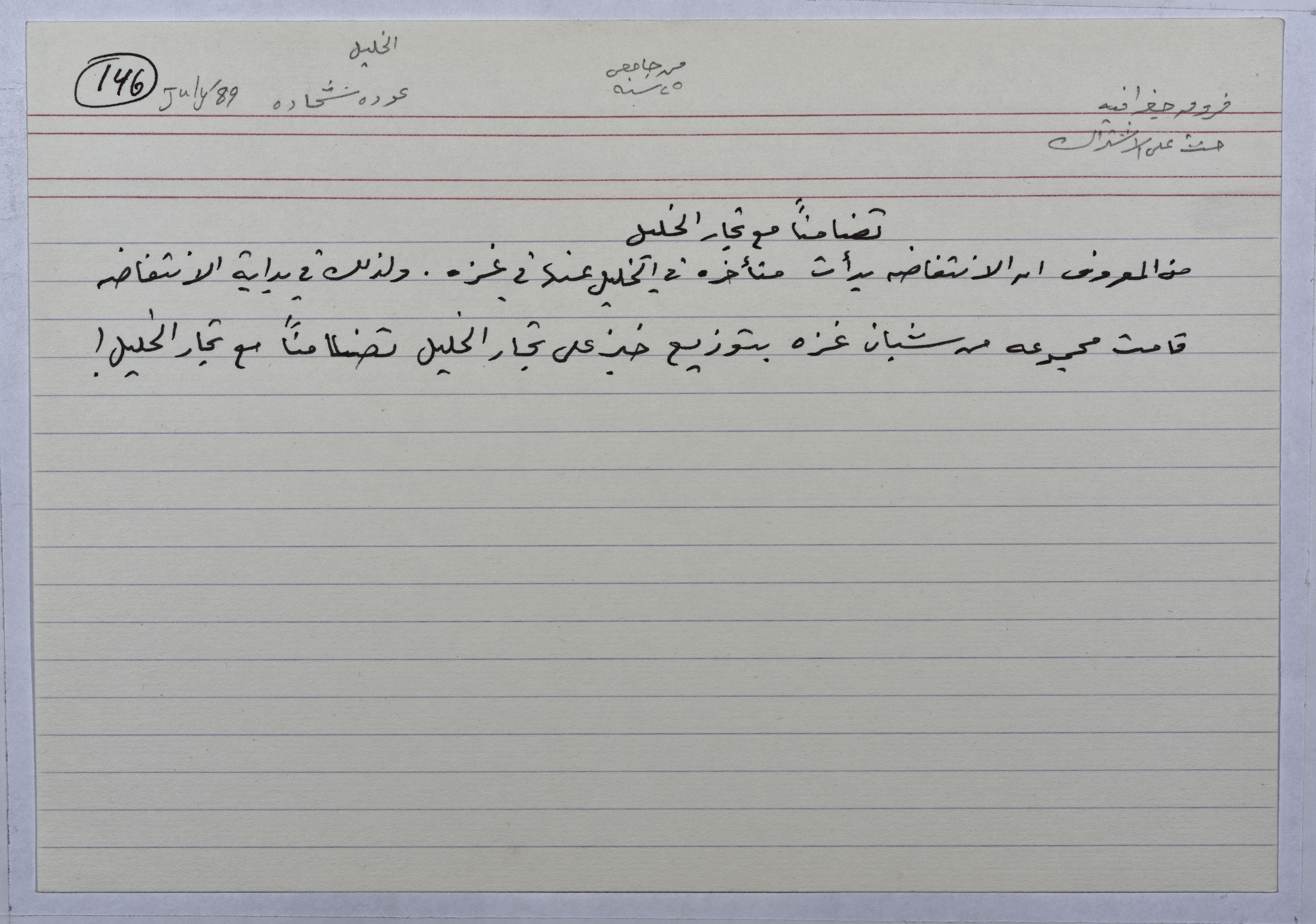 بطاقة وُثِّق عليها حكاية بعنوان "تضامناً مع تجار الخليل"
