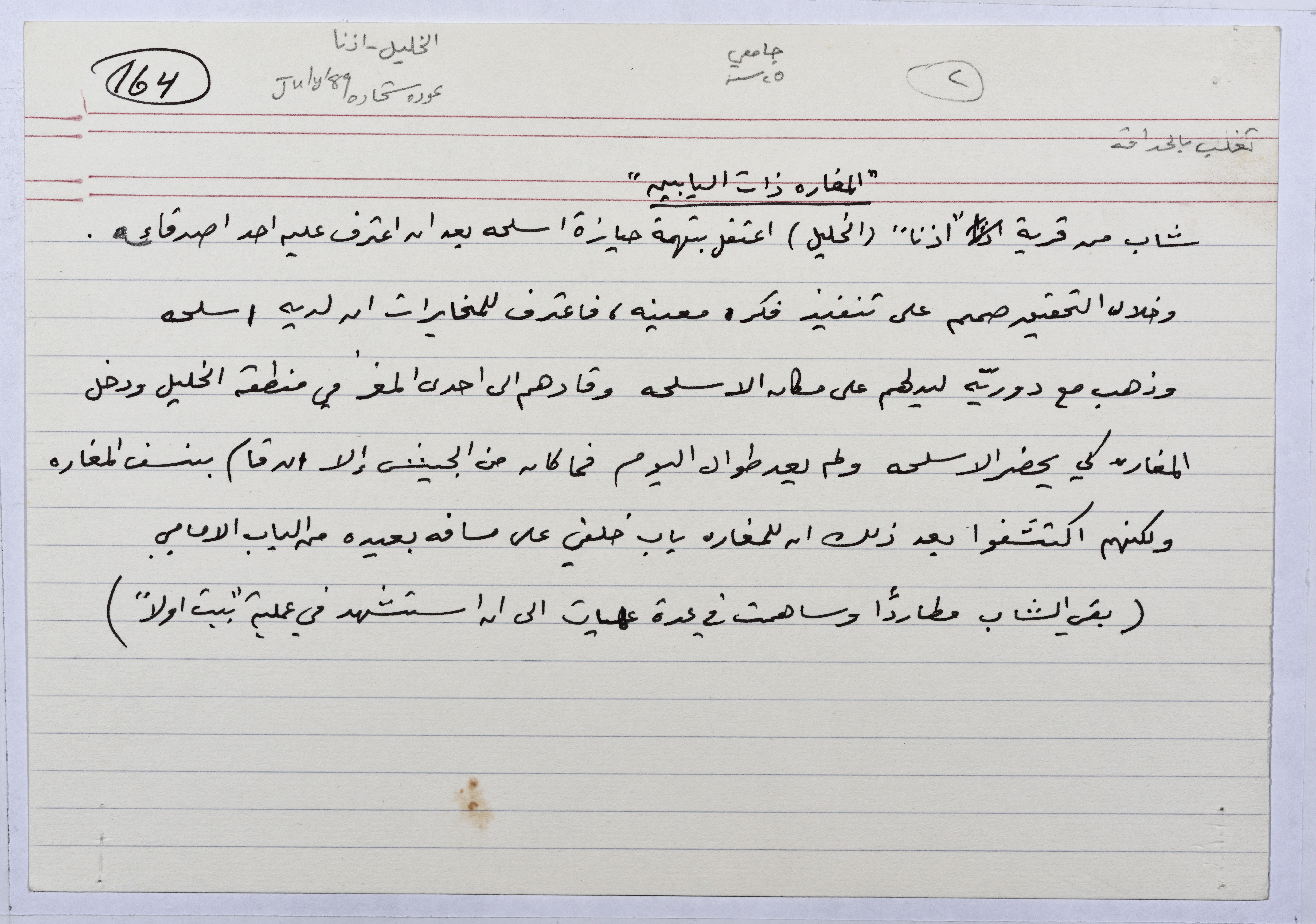 بطاقة وُثِّق عليها حكاية بعنوان "المفارة ذات البابين"