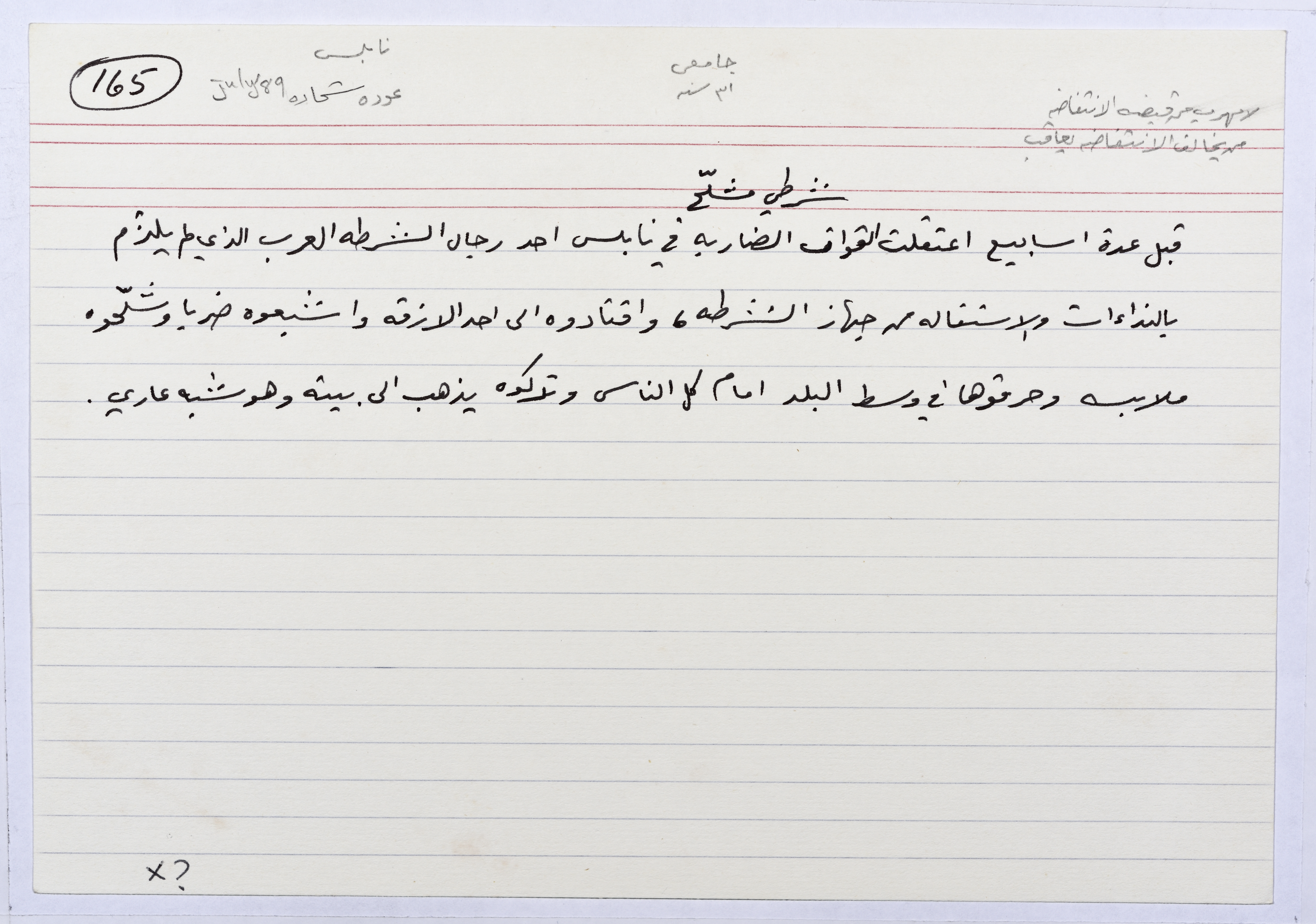بطاقة وُثِّق عليها حكاية بعنوان "شرطي مشلَّح"