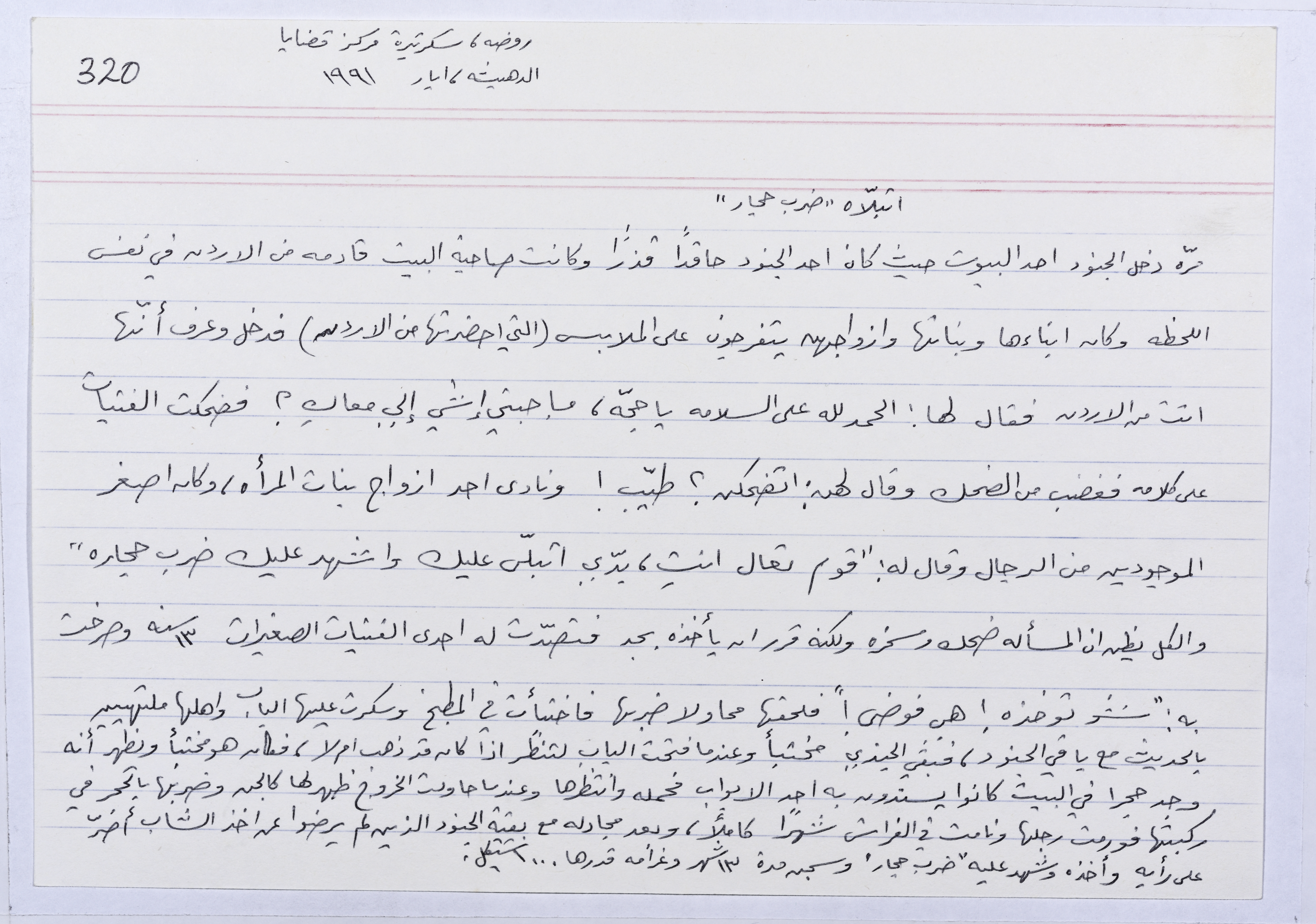 بطاقة وُثِّق عليها حكاية من الانتفاضة بعنوان اتبلاه ضرب حجار