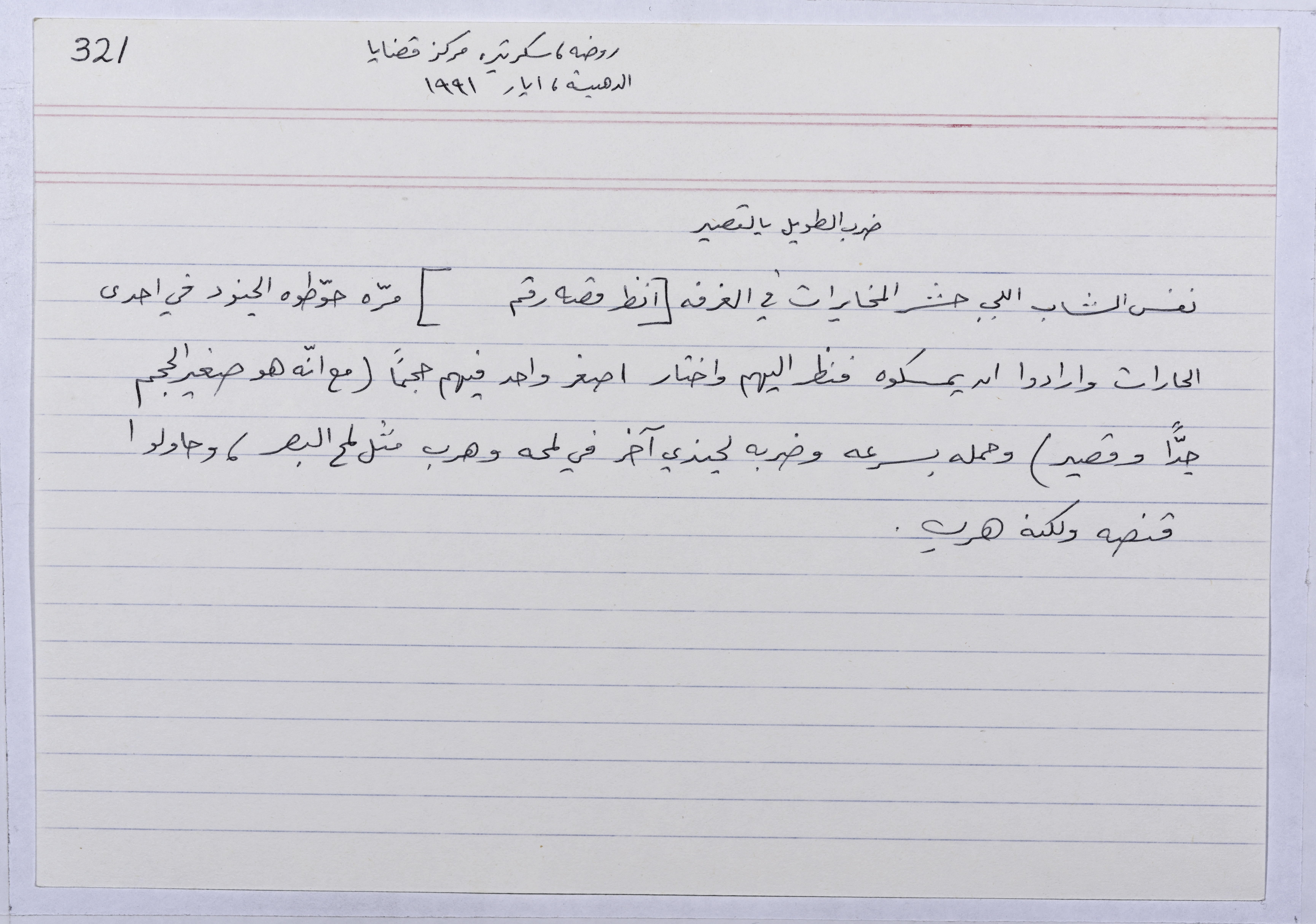 بطاقة وُثِّق عليها حكاية من الانتفاضة بعنوان ضرب الطويل بالقصير