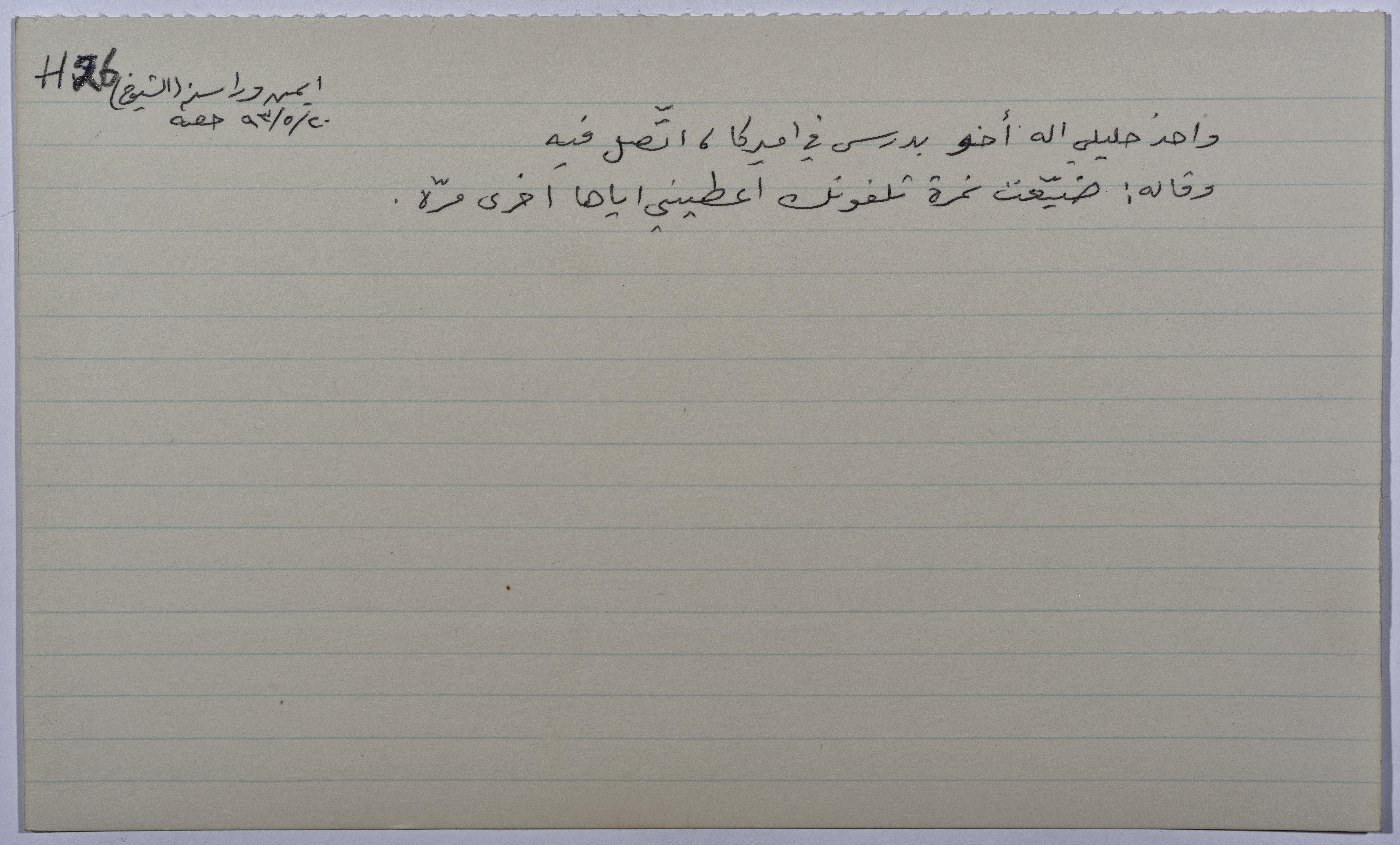 بطاقة وُثِّق عليها نكتة بعنوان خليلي اتصل على اخوه بأمريكا