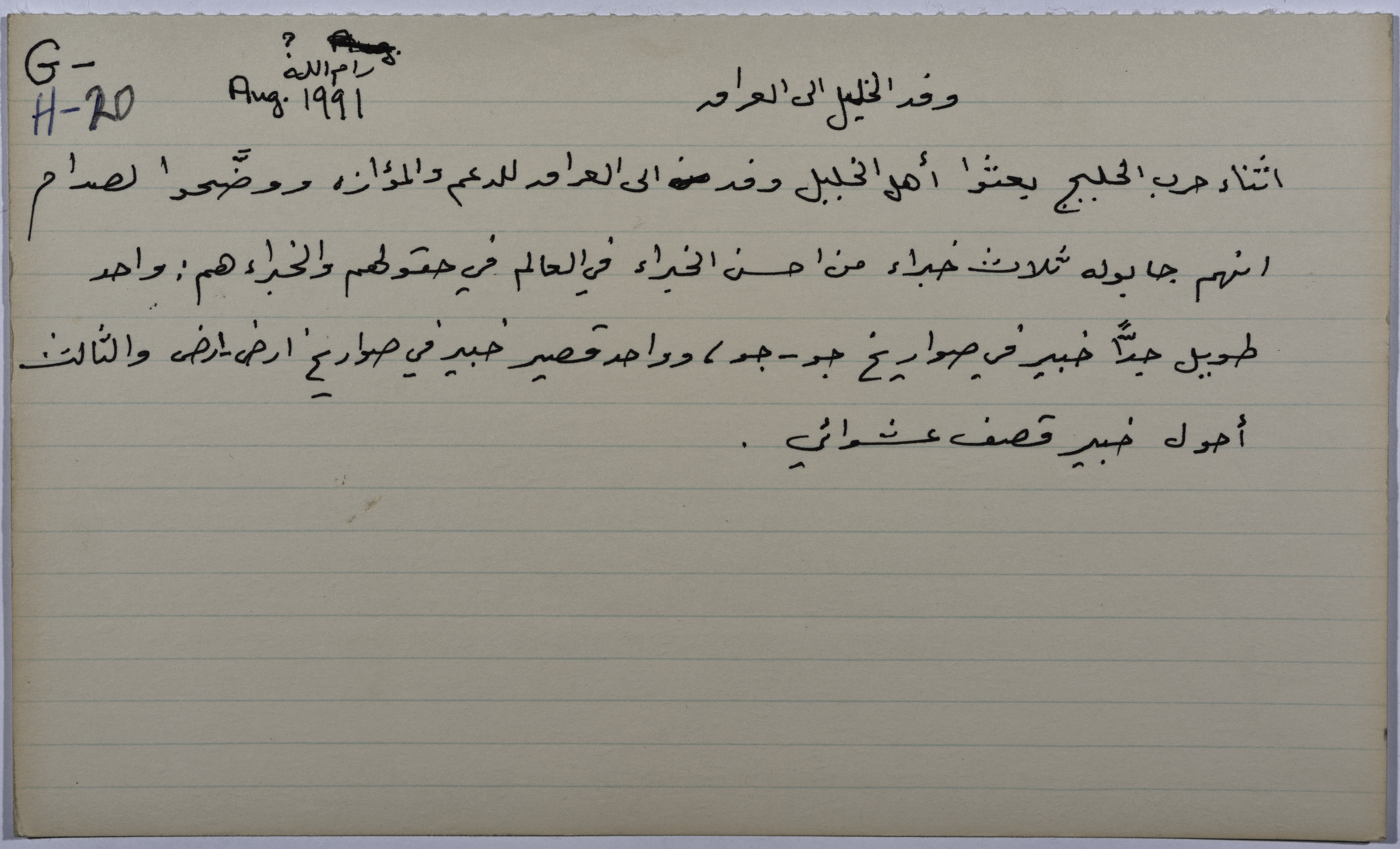 بطاقة وُثِّق عليها نكتة بعنوان وفد الخليل إلى العراق