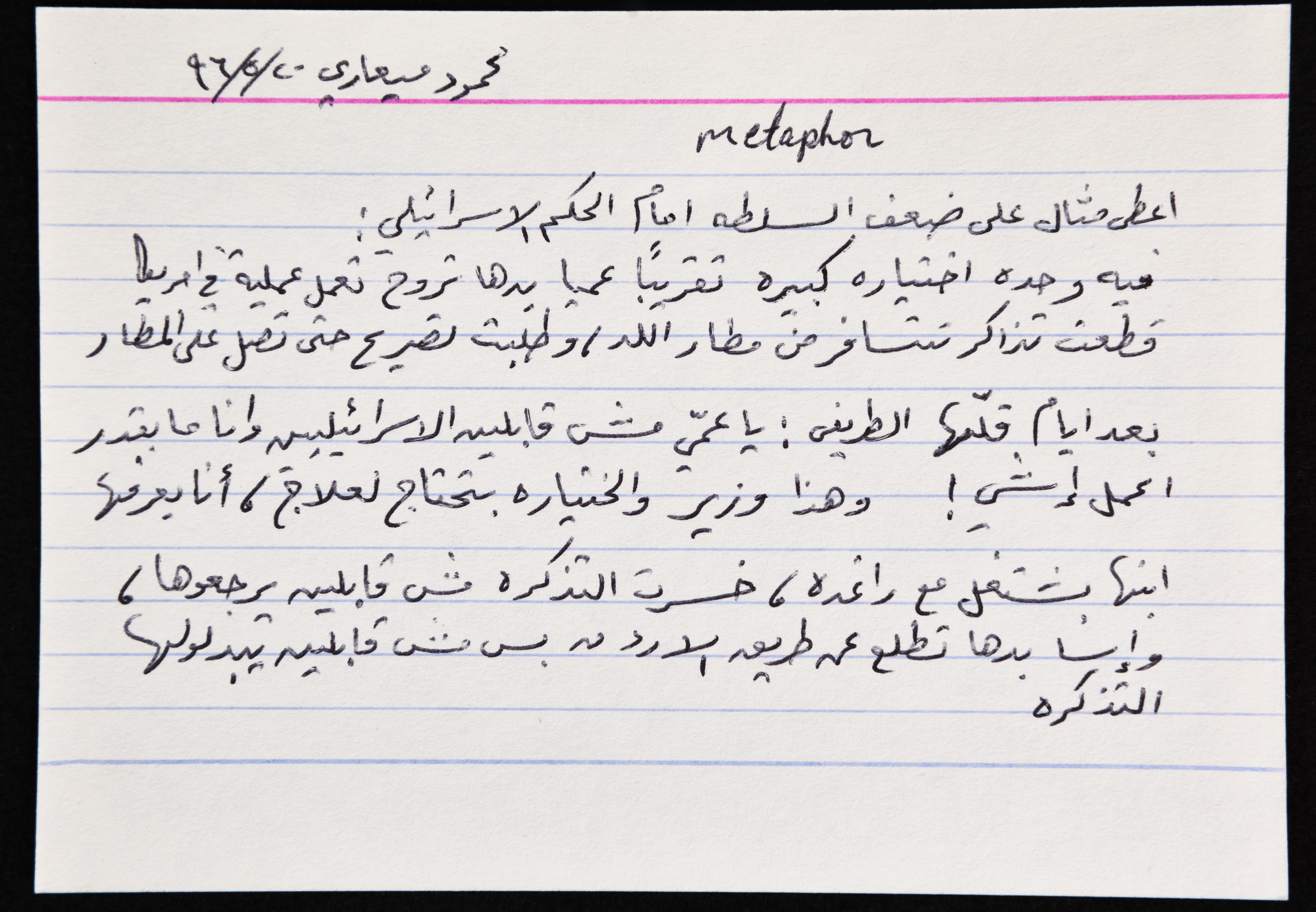 بطاقة وُثِّق عليها نكتة بعنوان الختيارة والتصريح