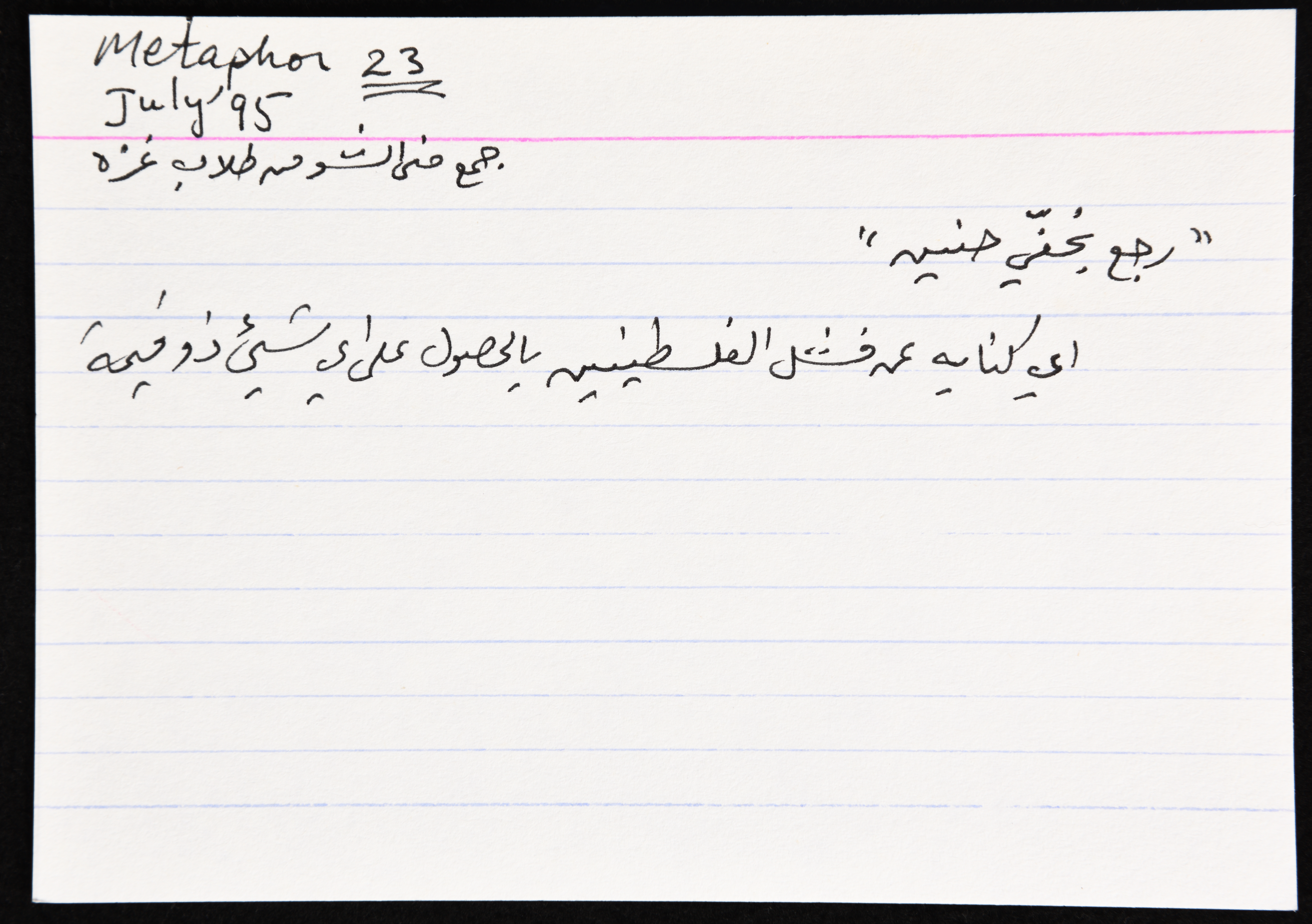 بطاقة وُثِّق عليها مثل شعبي بعنوان "يخفي حنين"