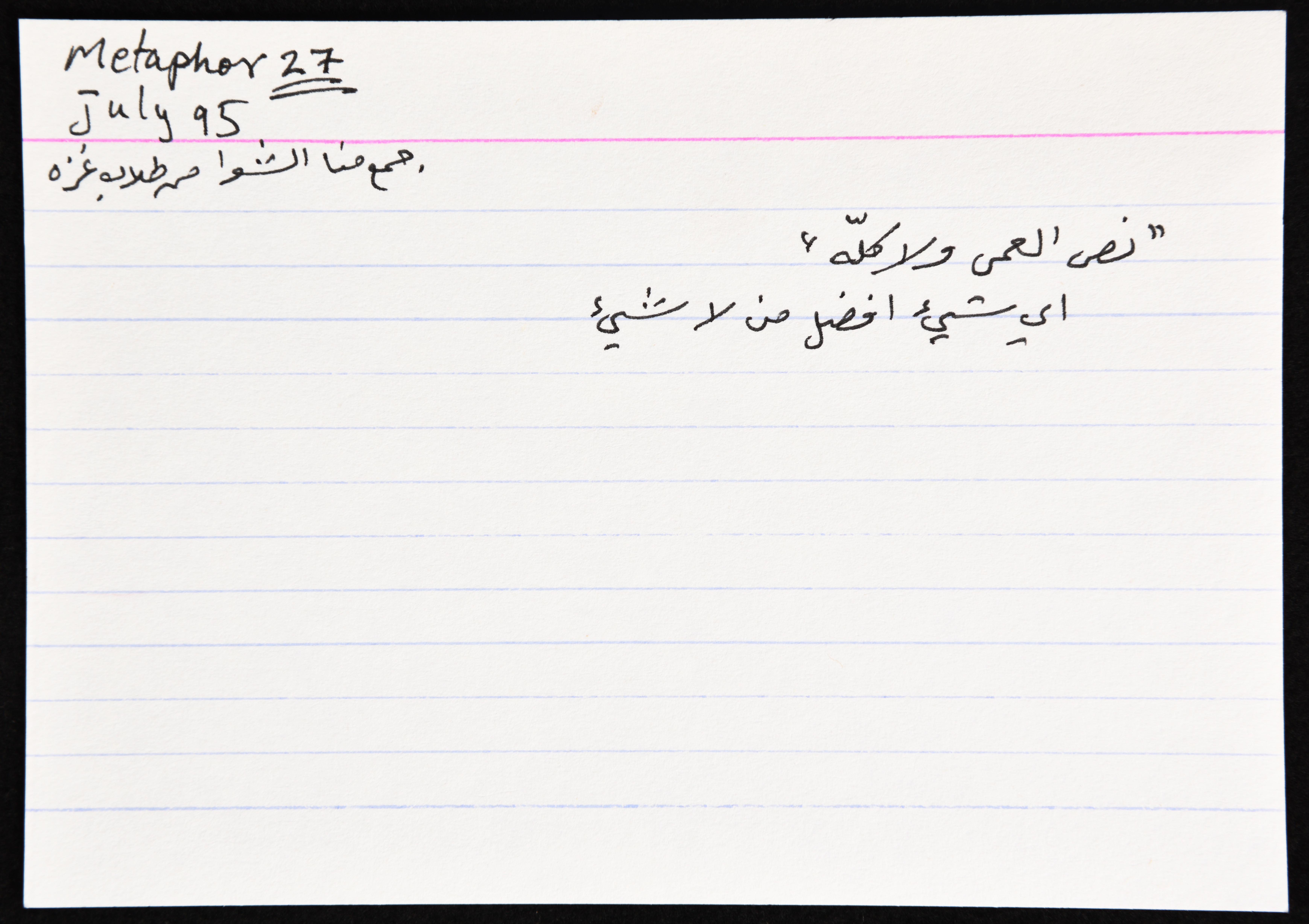 بطاقة وُثِّق عليها مثل بعنوان "نص العمى ولا كله"