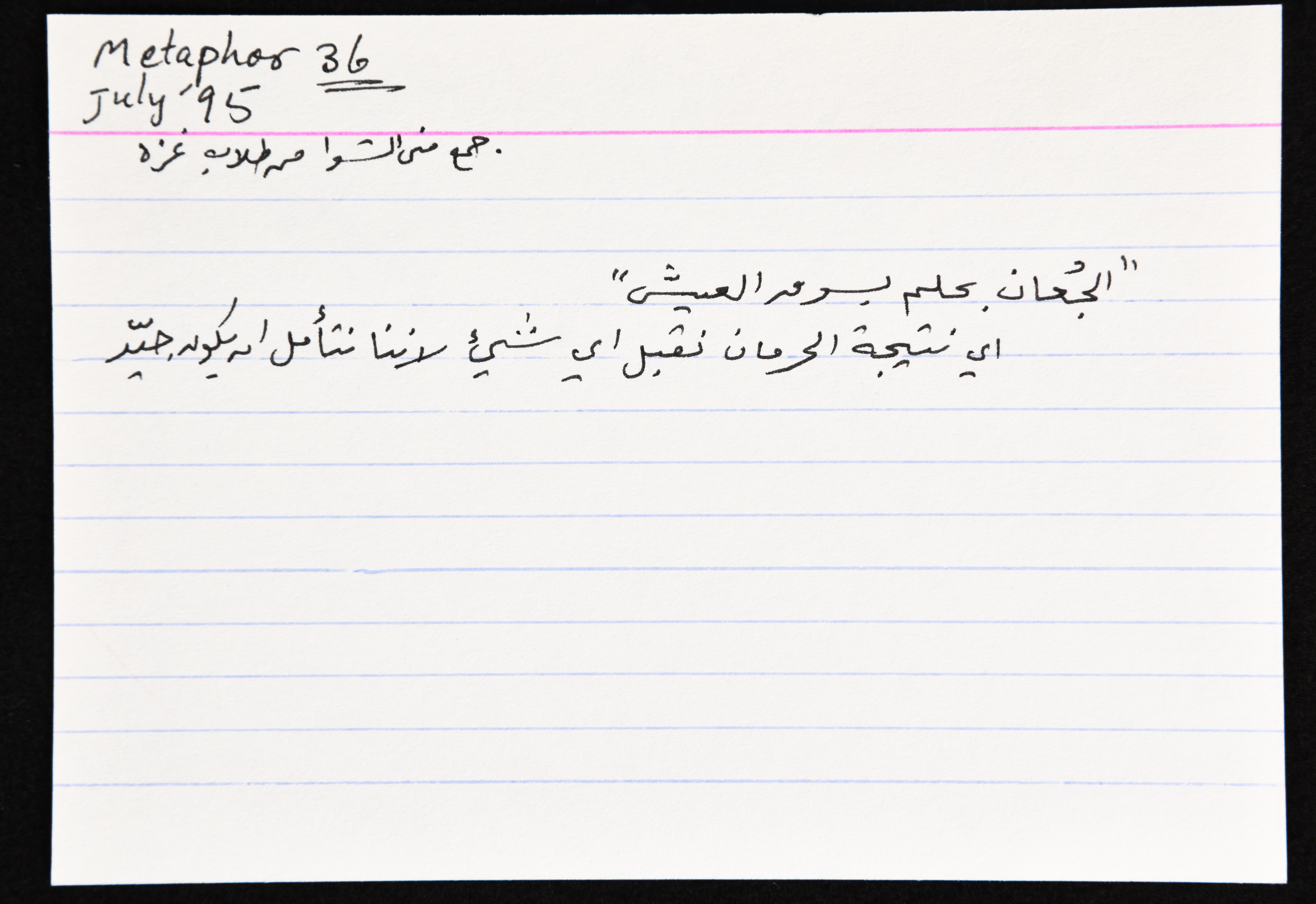بطاقة وُثِّق عليها مثل شعبي بعنوان "الجوعان بحلم"