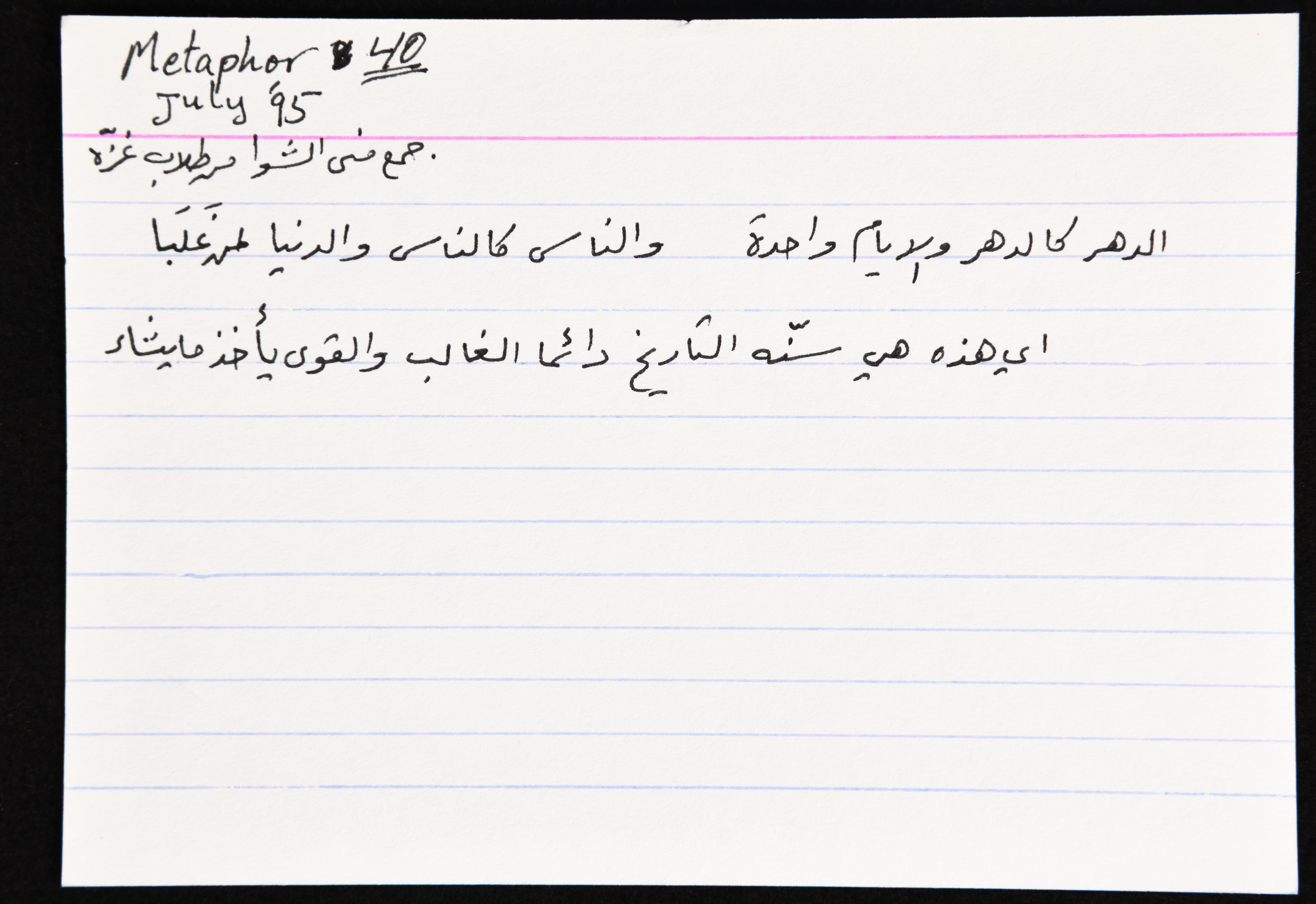 بطاقة وُثِّق عليها مثل شعبي بعنوان "الدهر كالدهر"